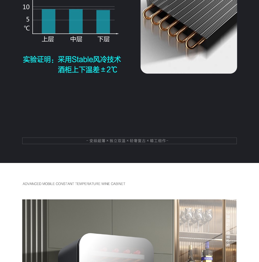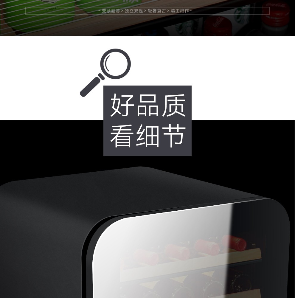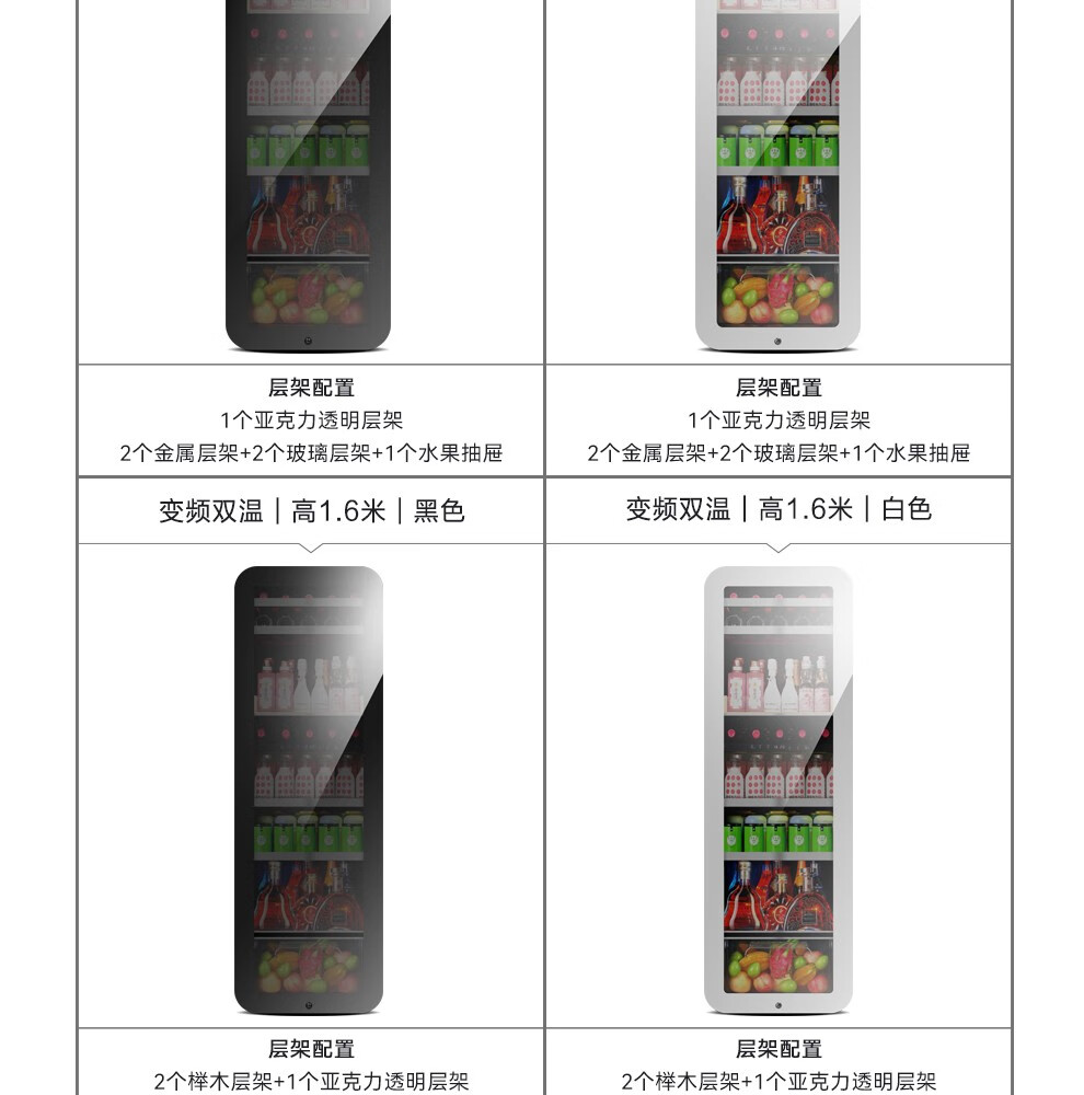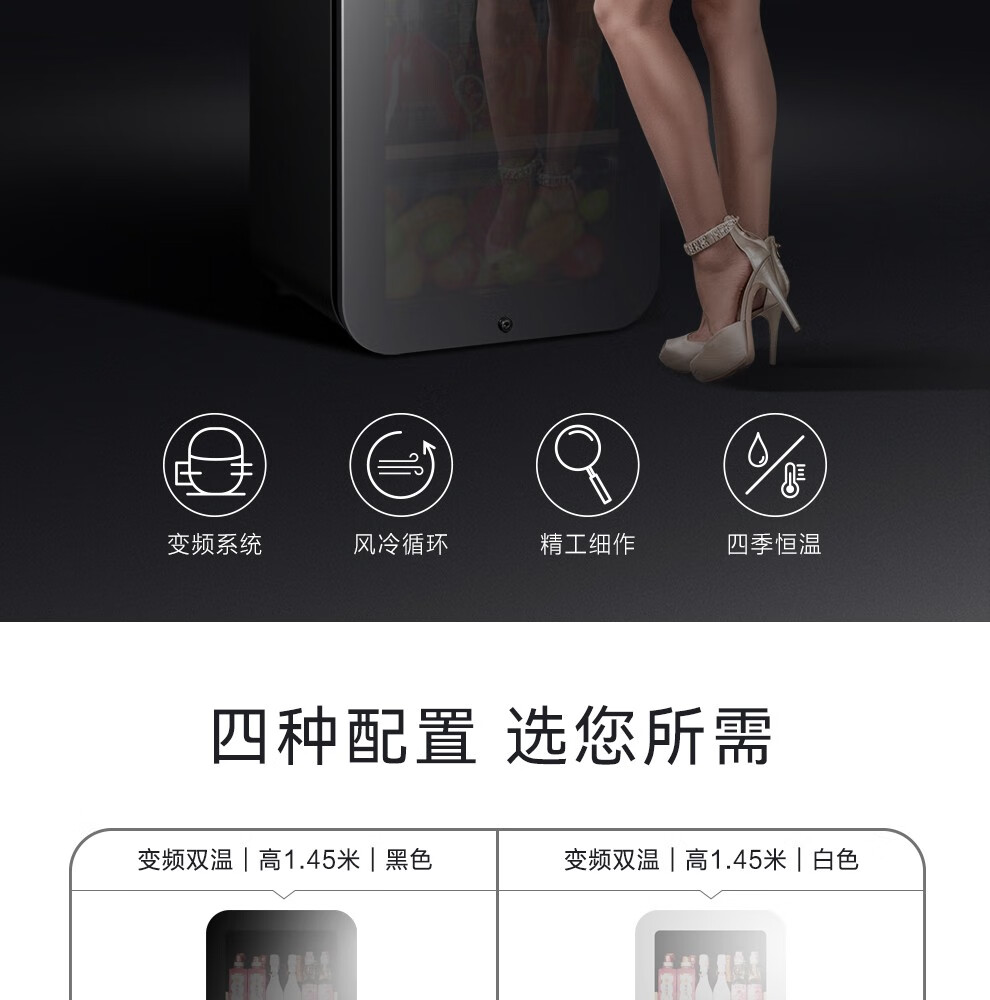 PULADI frequency conversion first-class ice bar home living room refrigerator frost-free air-cooled office glass door refrigerator freezer tea beverage wine cabinet ultra-thin arc retro light luxury energy-saving 1.6 meters black mirror frequency conversion dual temperature first-class energy efficiency