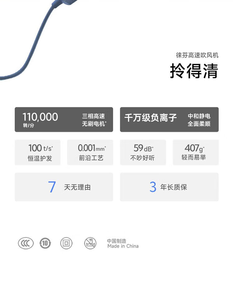 Laifen high-speed hair dryer, quick-drying household hair dryer, negative ion hair care, low-noise hair dryer, birthday gift, national subsidy, LF03 gold powder