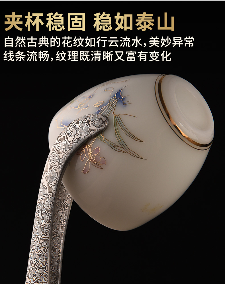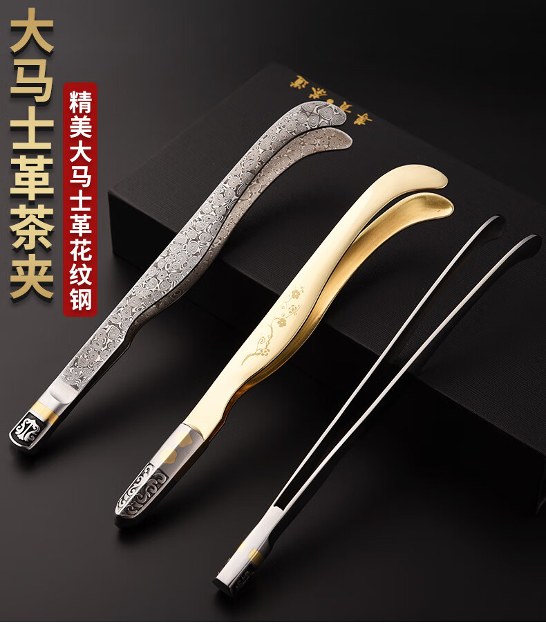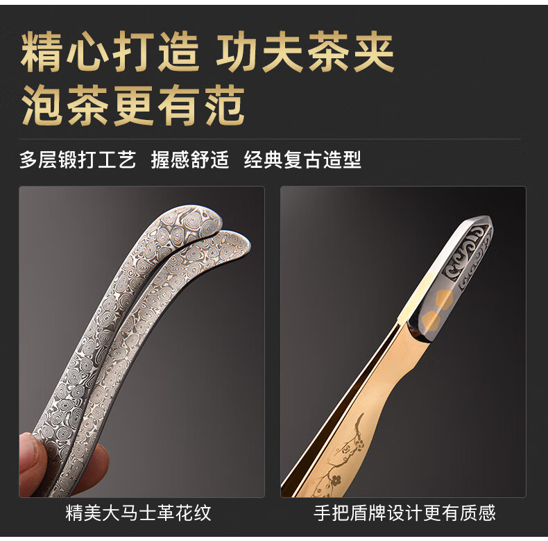Damascus stainless steel tea clip Kung Fu tea set accessories tea clip washing cup clip tea tweezers tea cup clip household 304 stainless steel shield tea clip