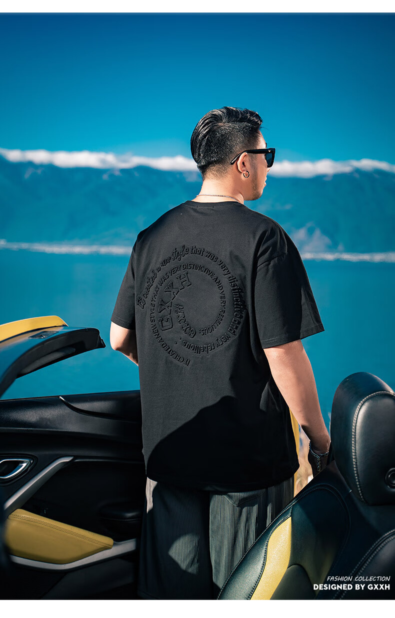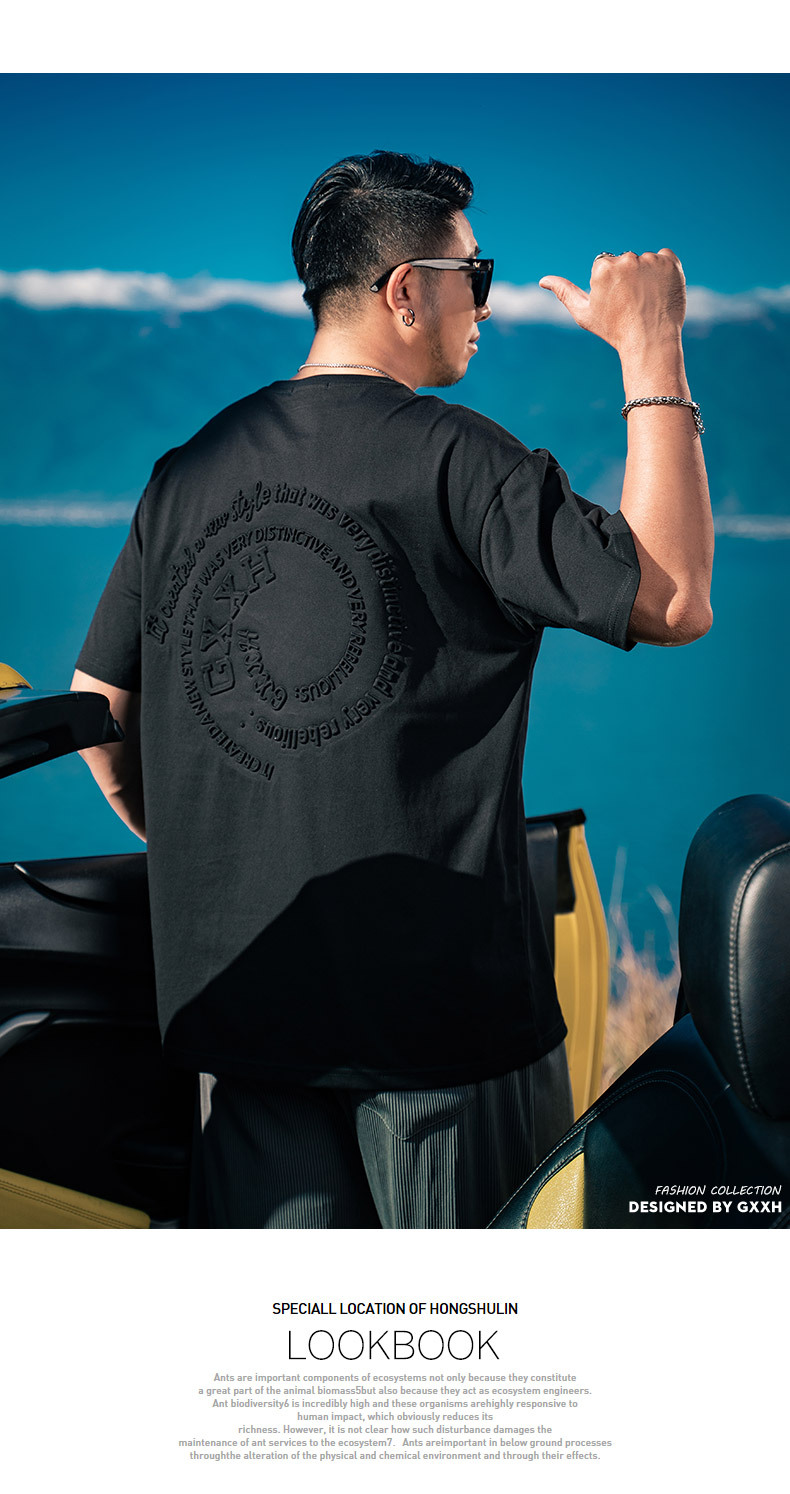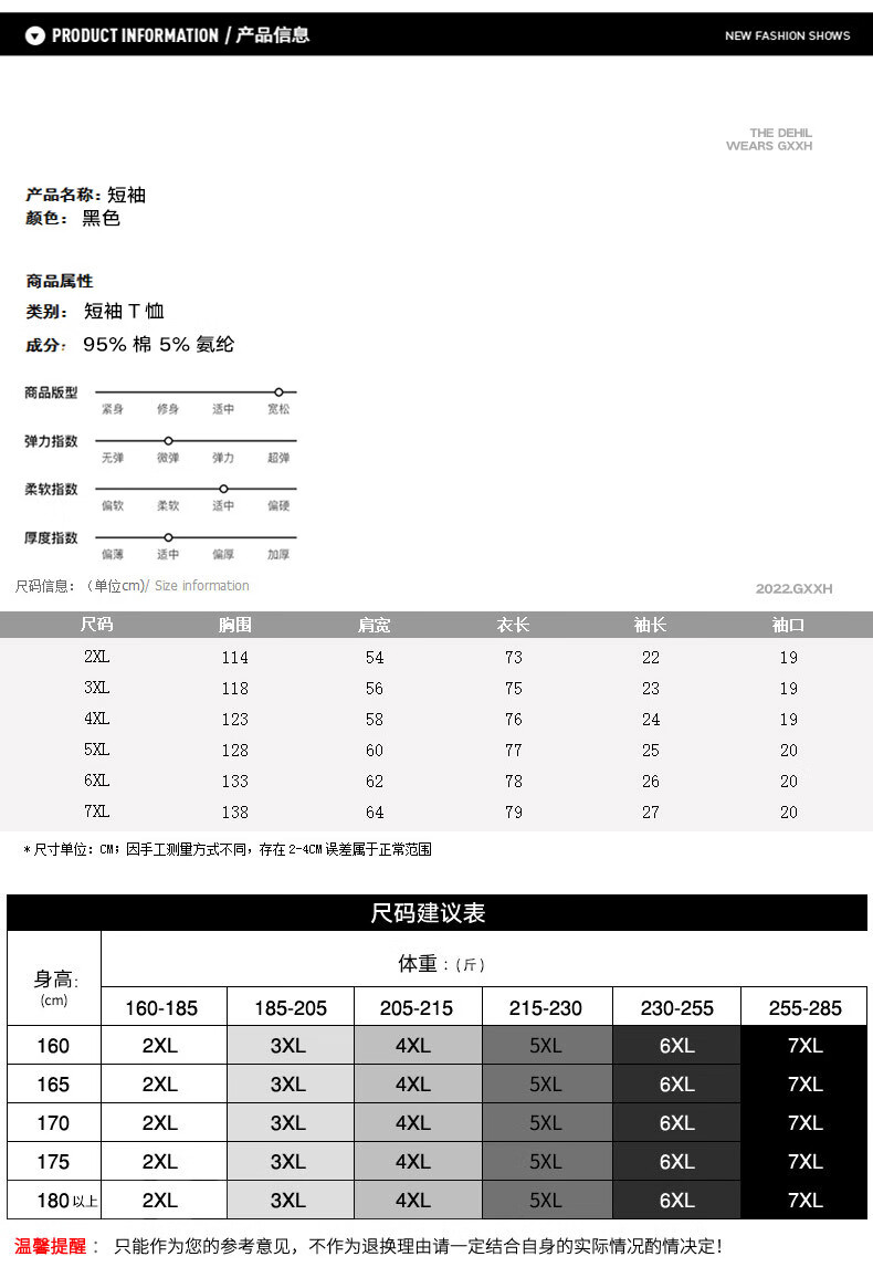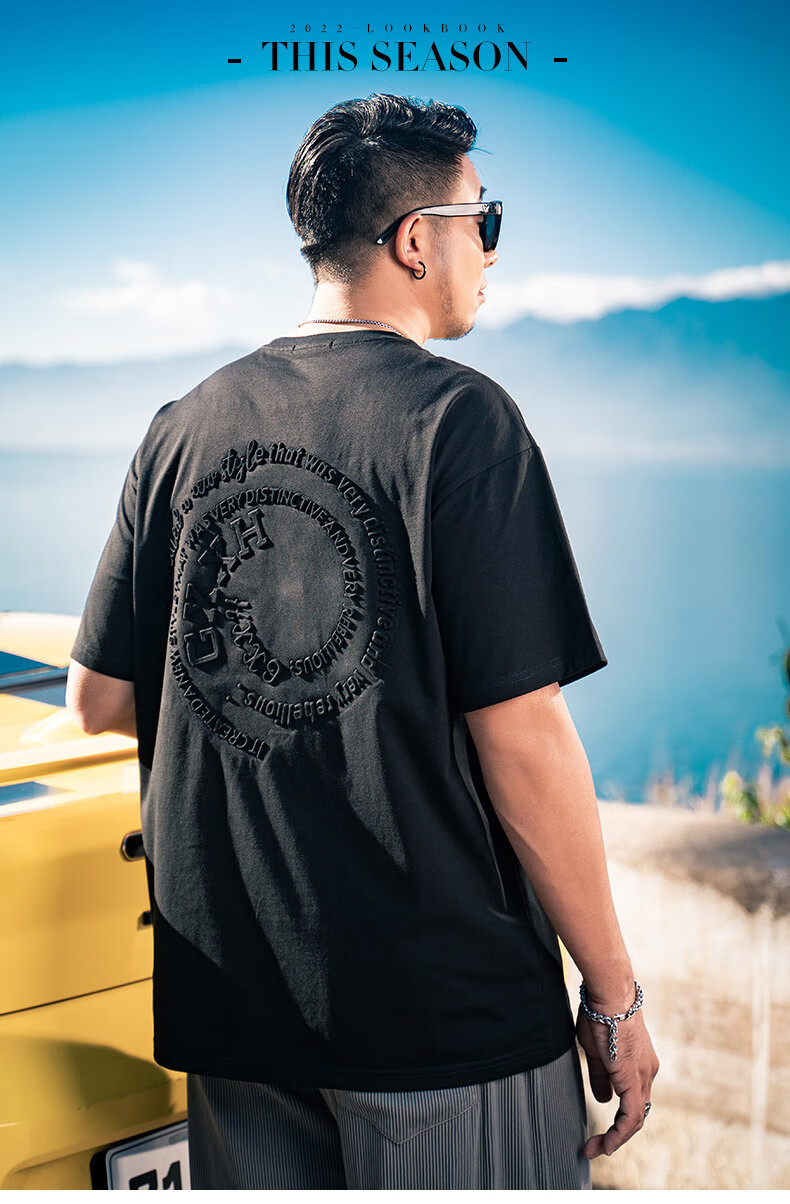 Tanye large size men's T-shirt men's fat men's T-shirt summer cotton tops fat brother loose plus fat personality embossed short-sleeved men t22127 black 4XL recommended 205-215Jin Jin is equal to 0.5 kg