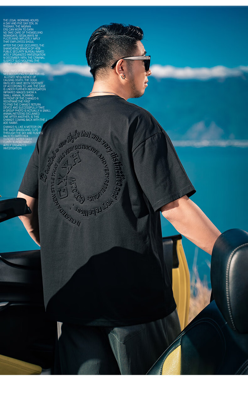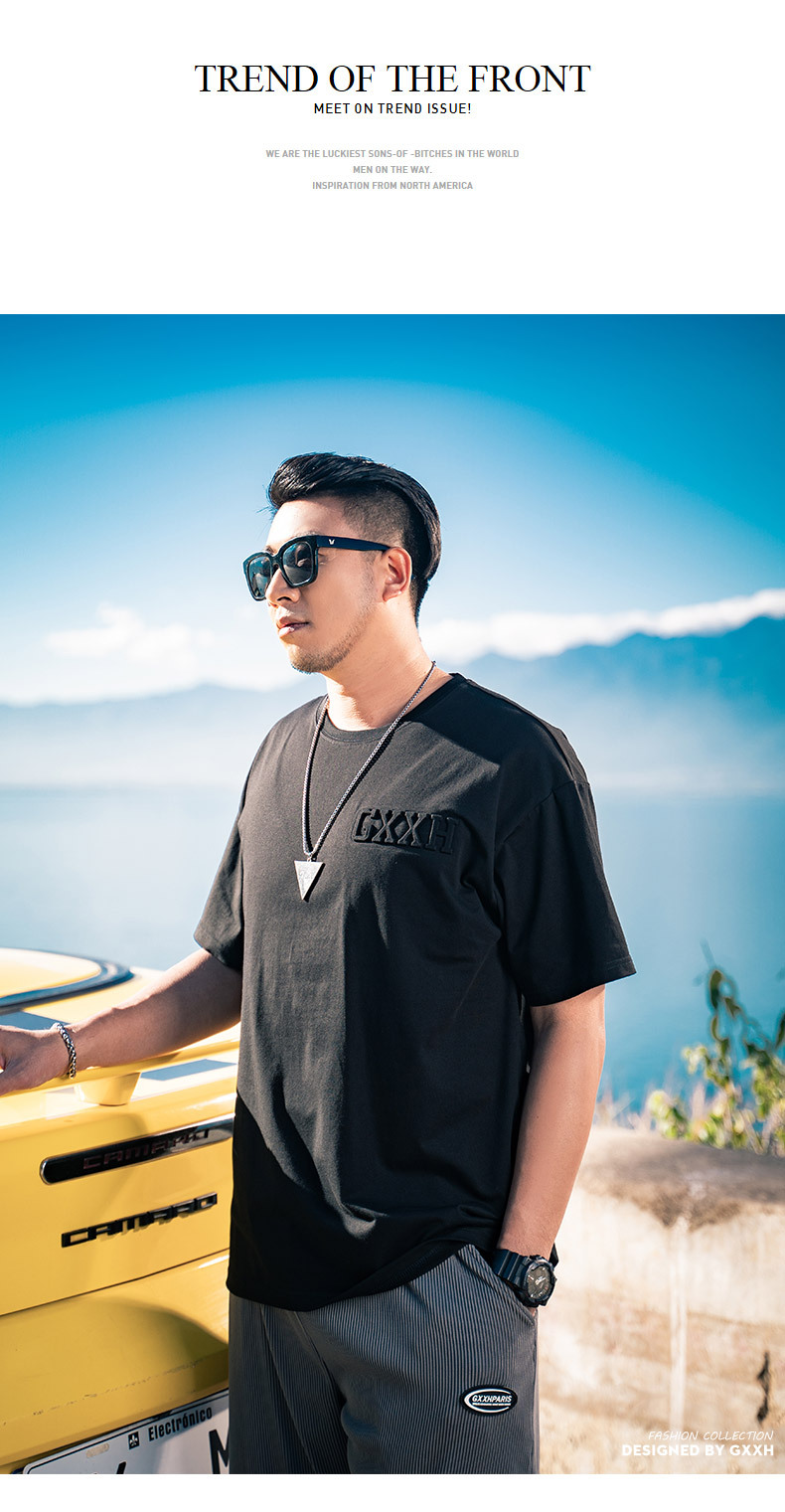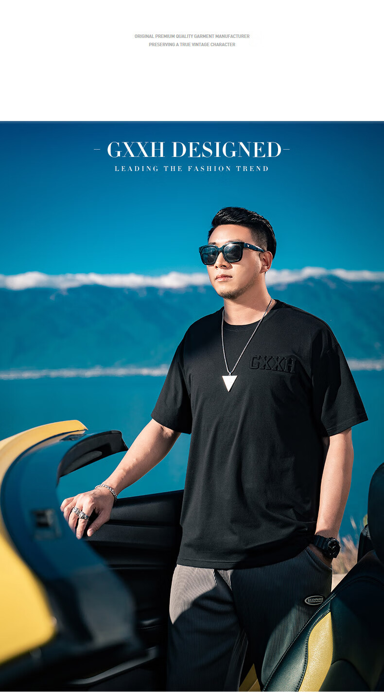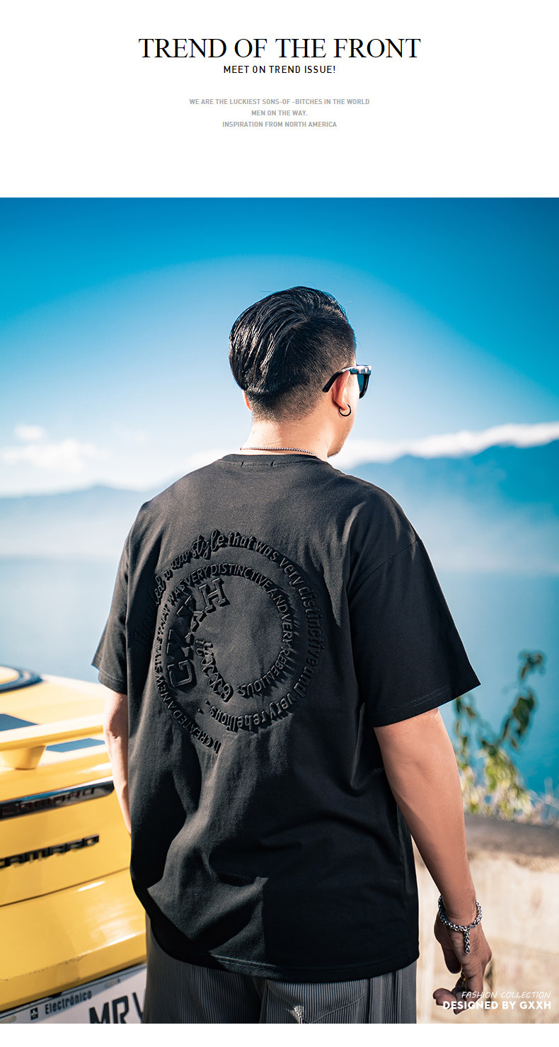 Tanye large size men's T-shirt men's fat men's T-shirt summer cotton tops fat brother loose plus fat personality embossed short-sleeved men t22127 black 4XL recommended 205-215Jin Jin is equal to 0.5 kg