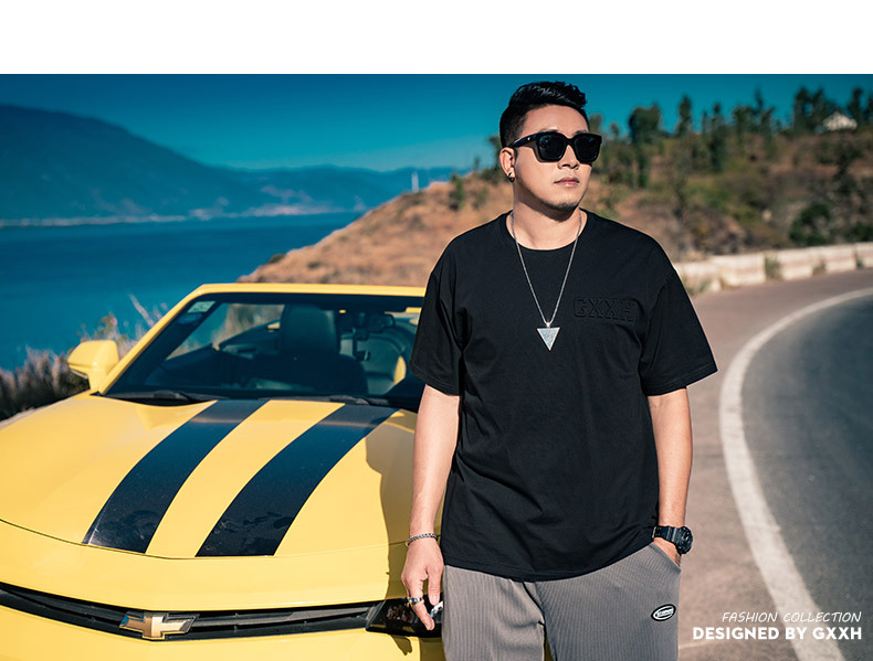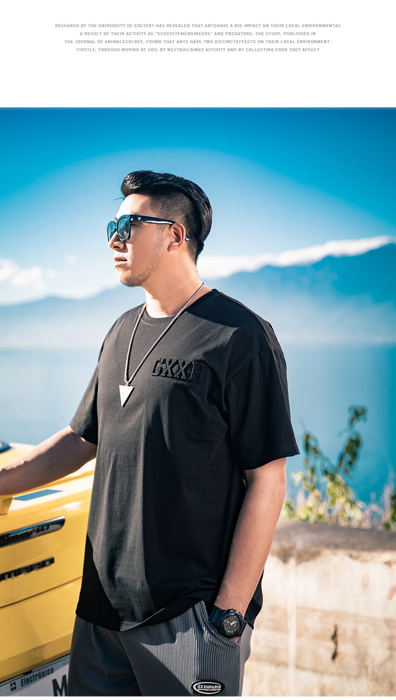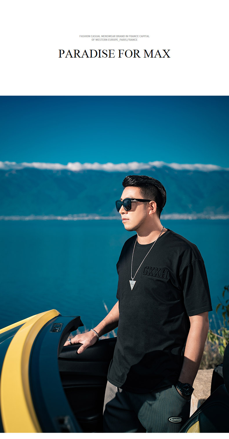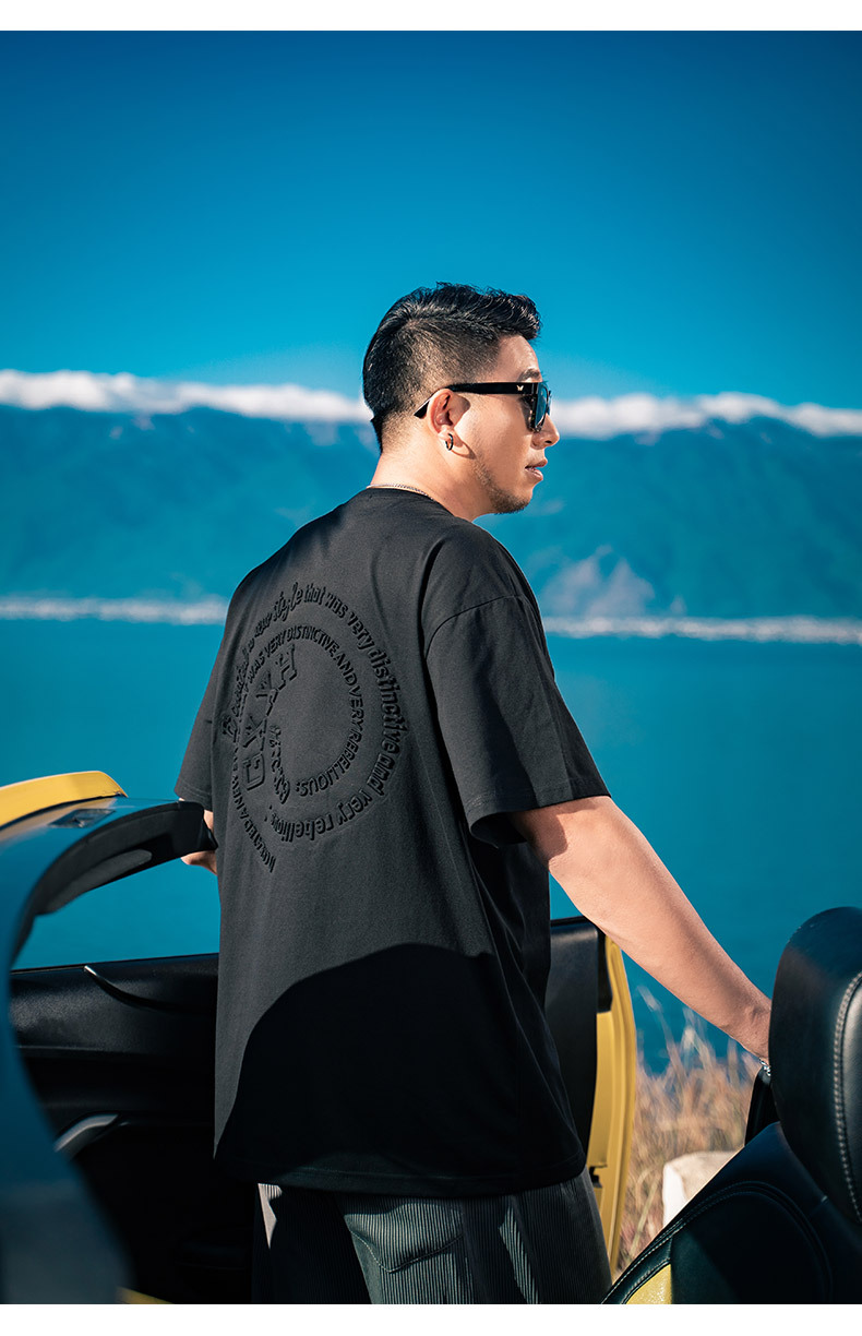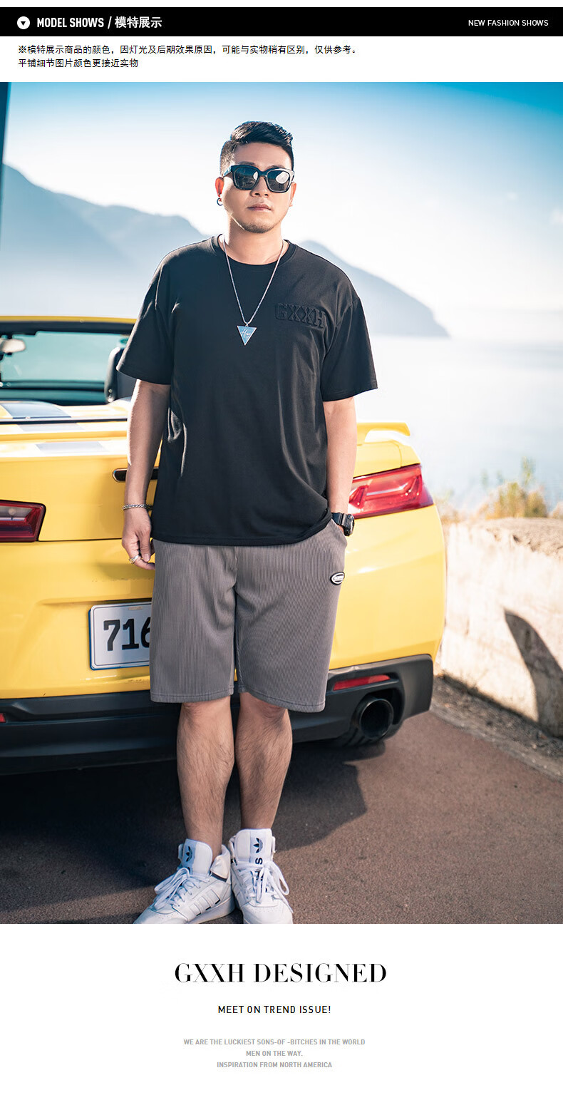 Tanye large size men's T-shirt men's fat men's T-shirt summer cotton tops fat brother loose plus fat personality embossed short-sleeved men t22127 black 4XL recommended 205-215Jin Jin is equal to 0.5 kg