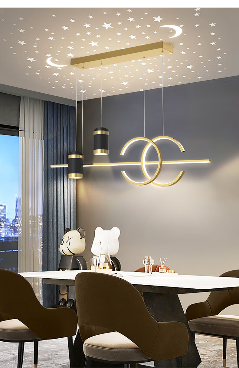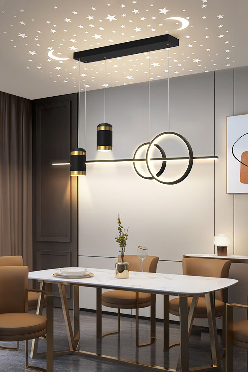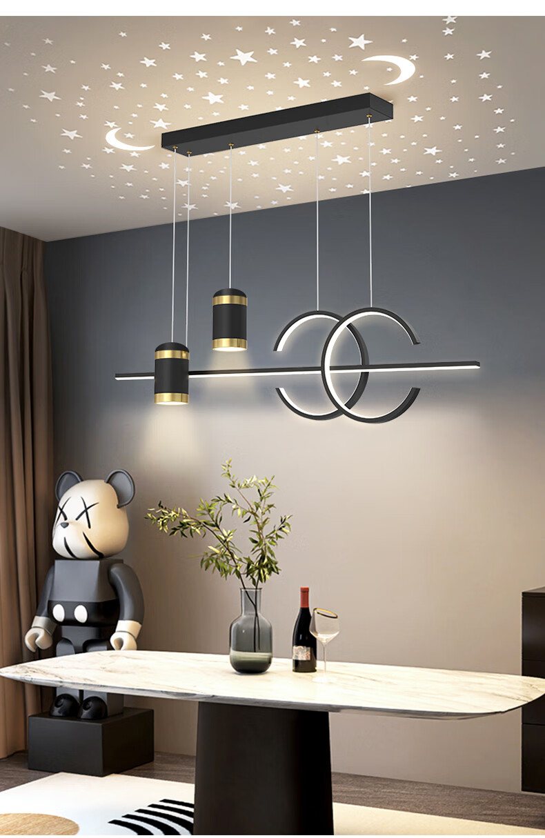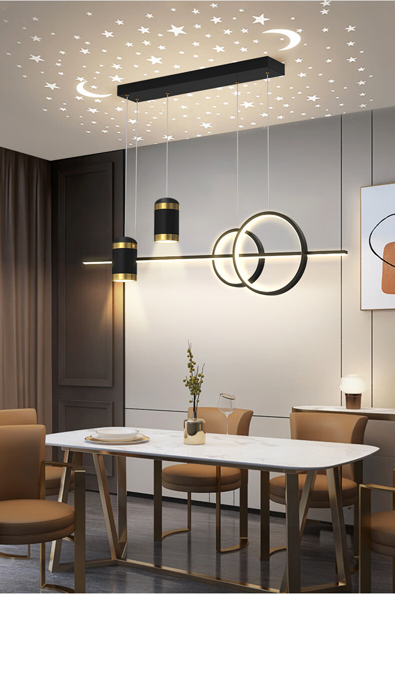Fanji living room chandelier modern minimalist lighting Internet celebrity light luxury Nordic lamps creative personality bedroom bar restaurant chandelier projection star A style black + three-color stepless dimming