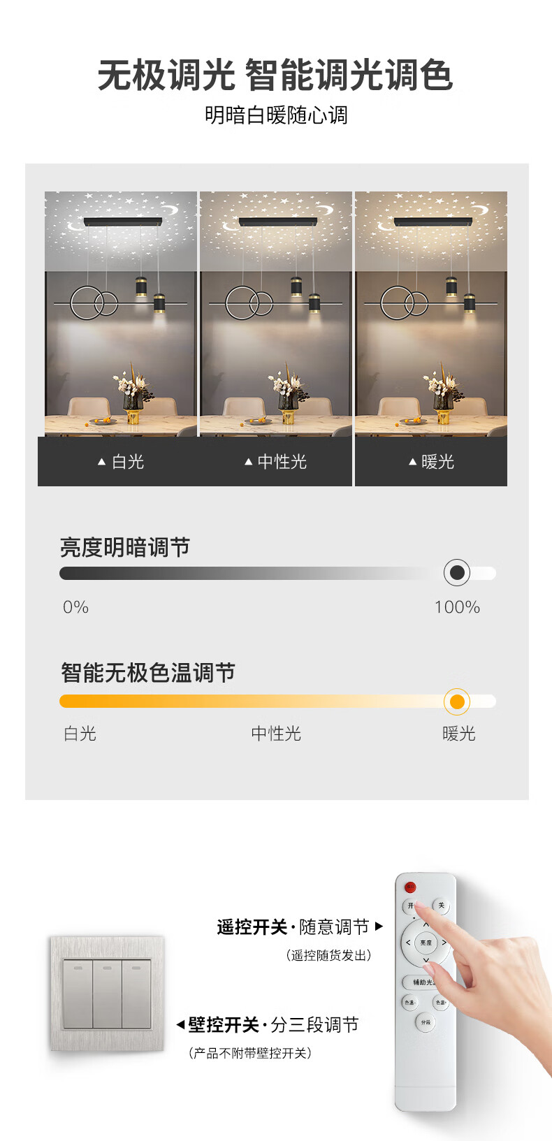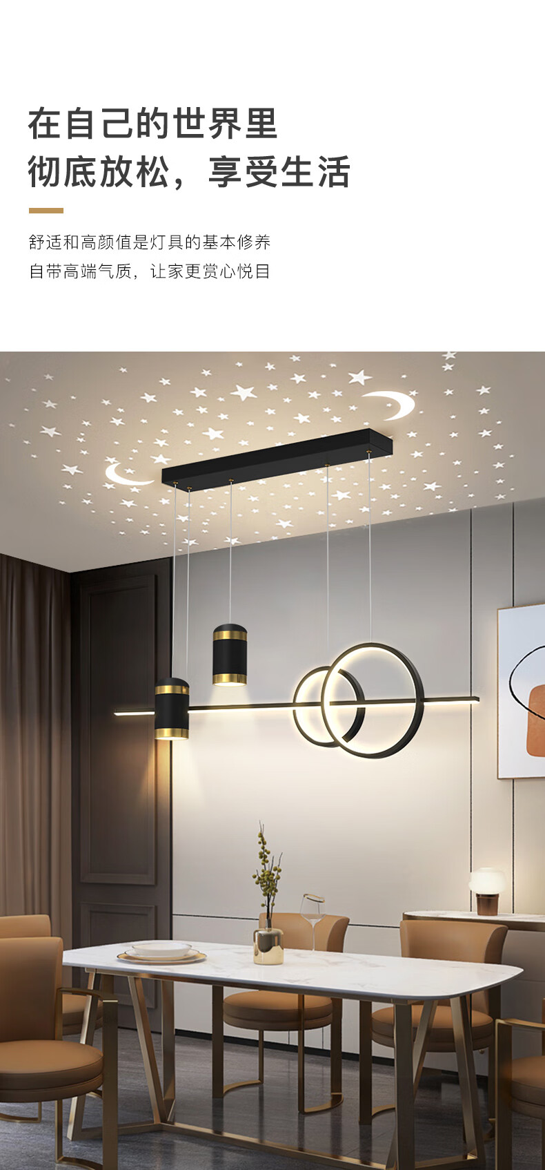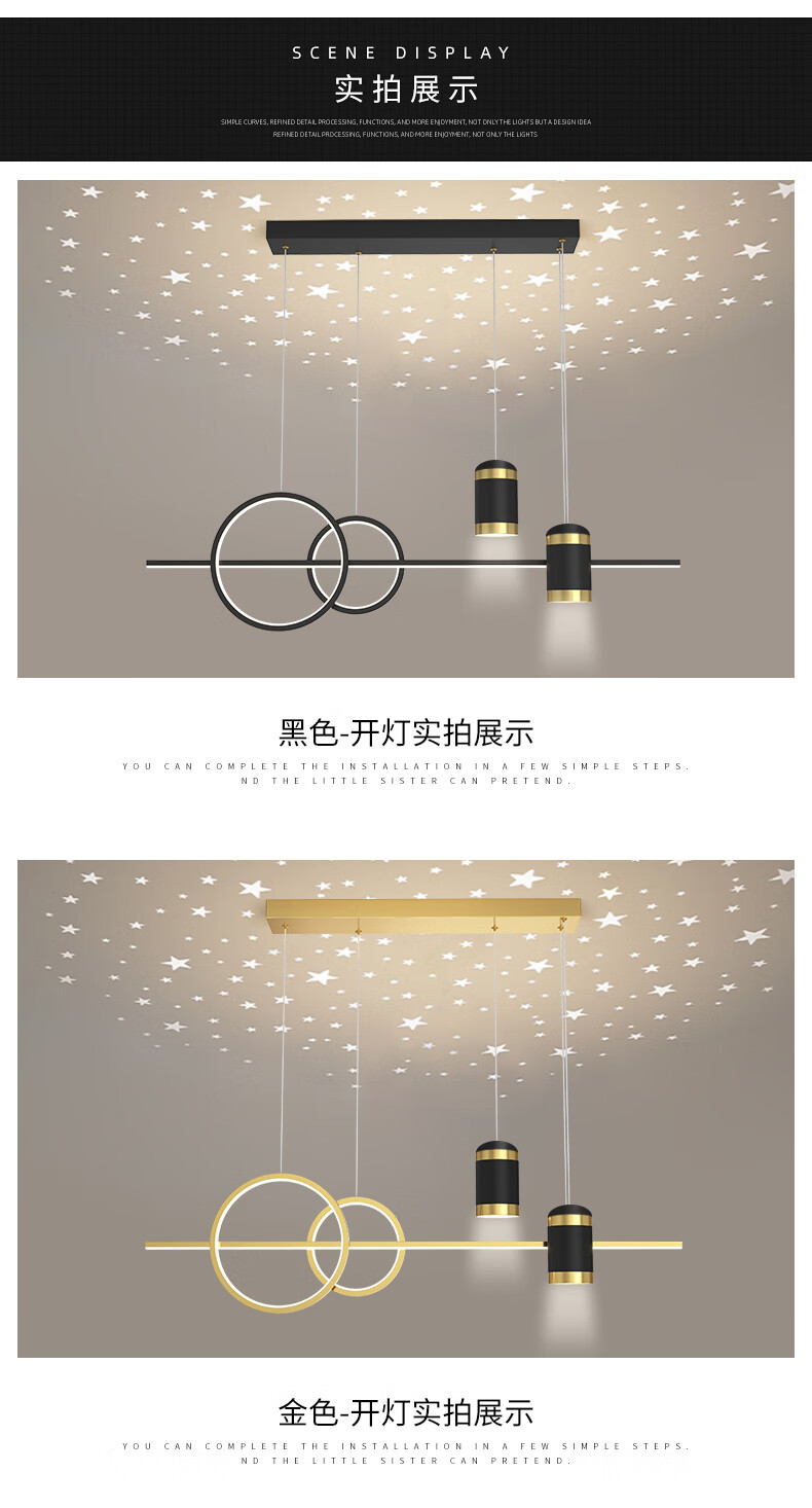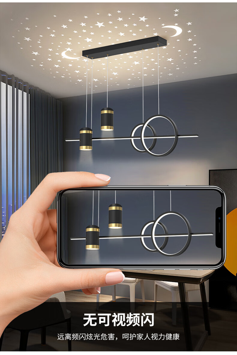 Fanji living room chandelier modern minimalist lighting Internet celebrity light luxury Nordic lamps creative personality bedroom bar restaurant chandelier projection star A style black + three-color stepless dimming