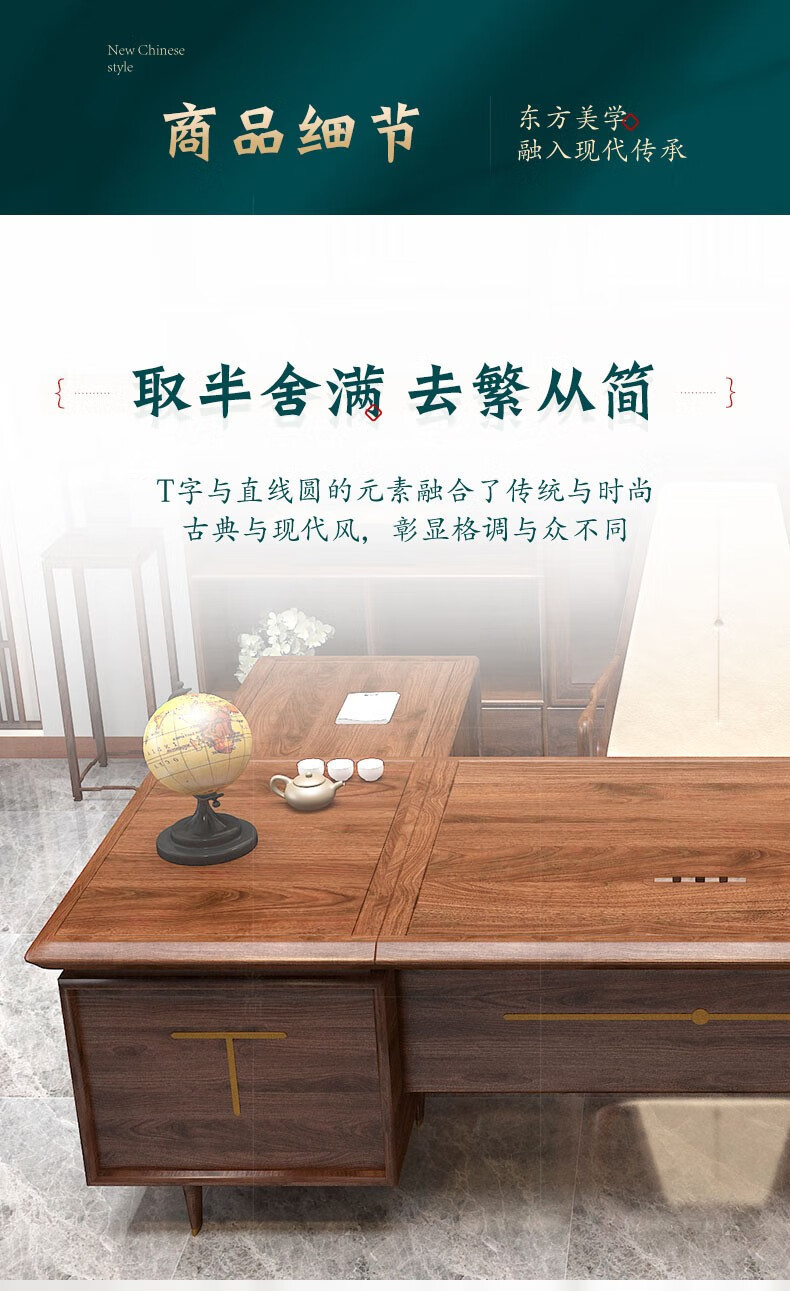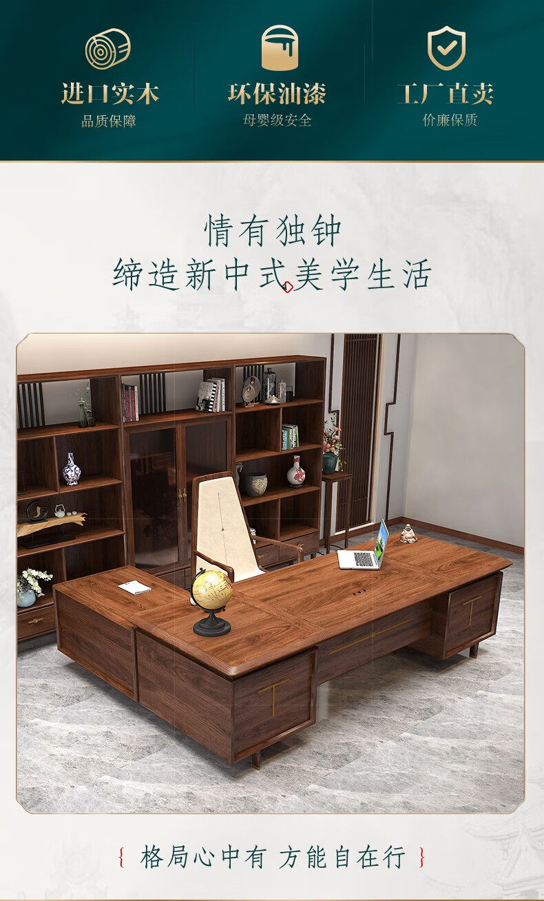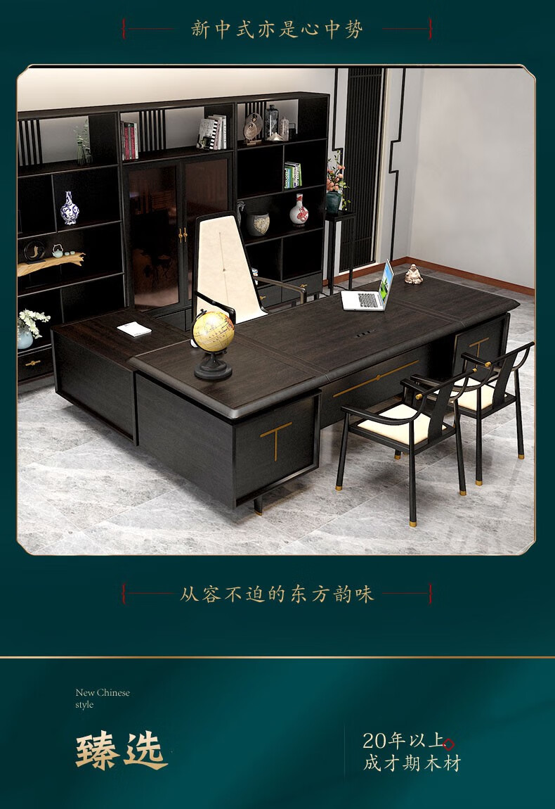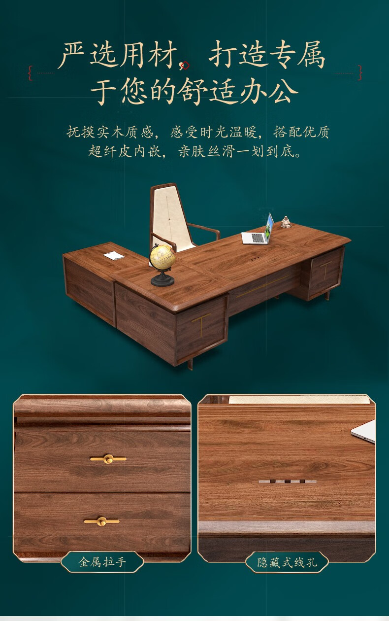 Qiheng (XIIBLC) solid wood boss desk desk black walnut ash wood office executive desk new Chinese style president manager desk (North American black walnut) 2400*1050*780