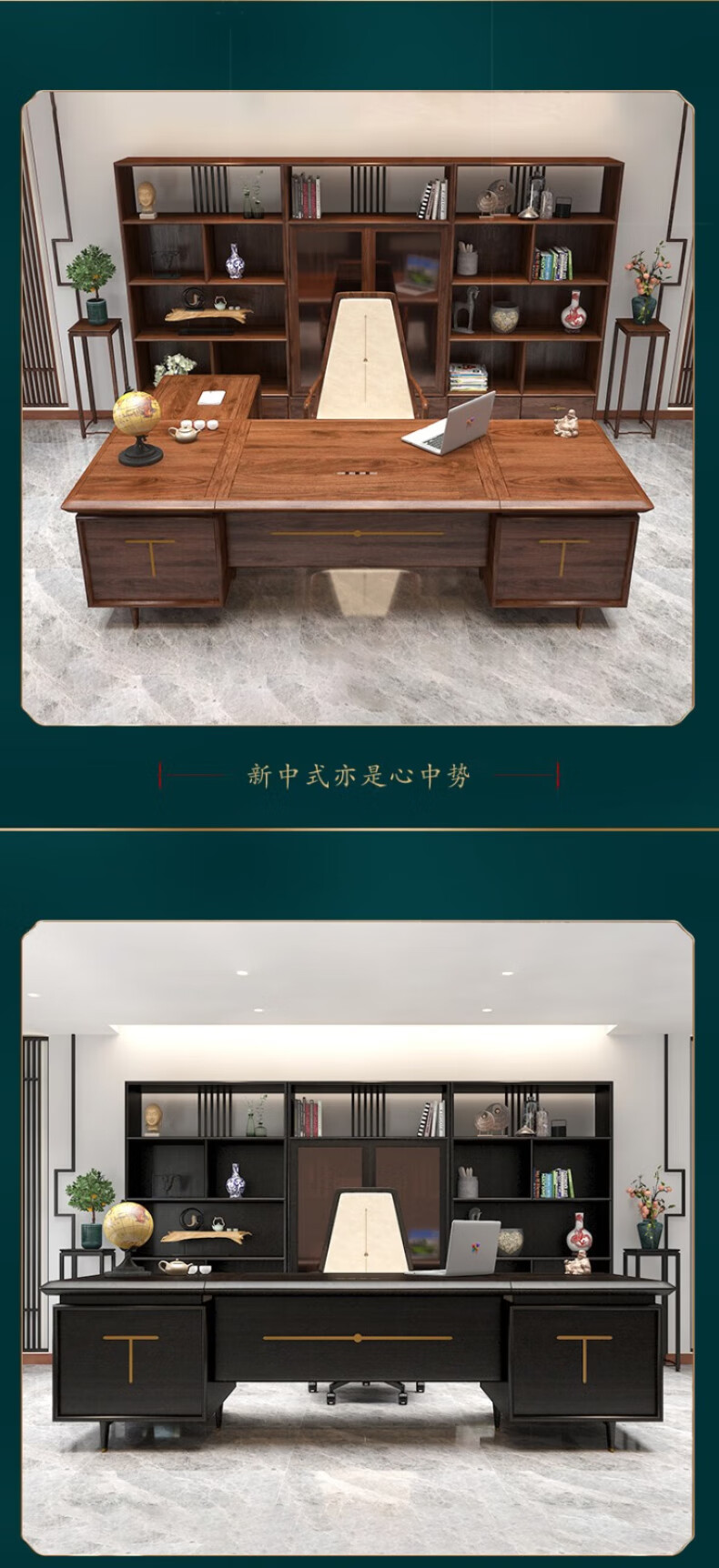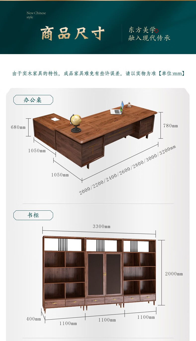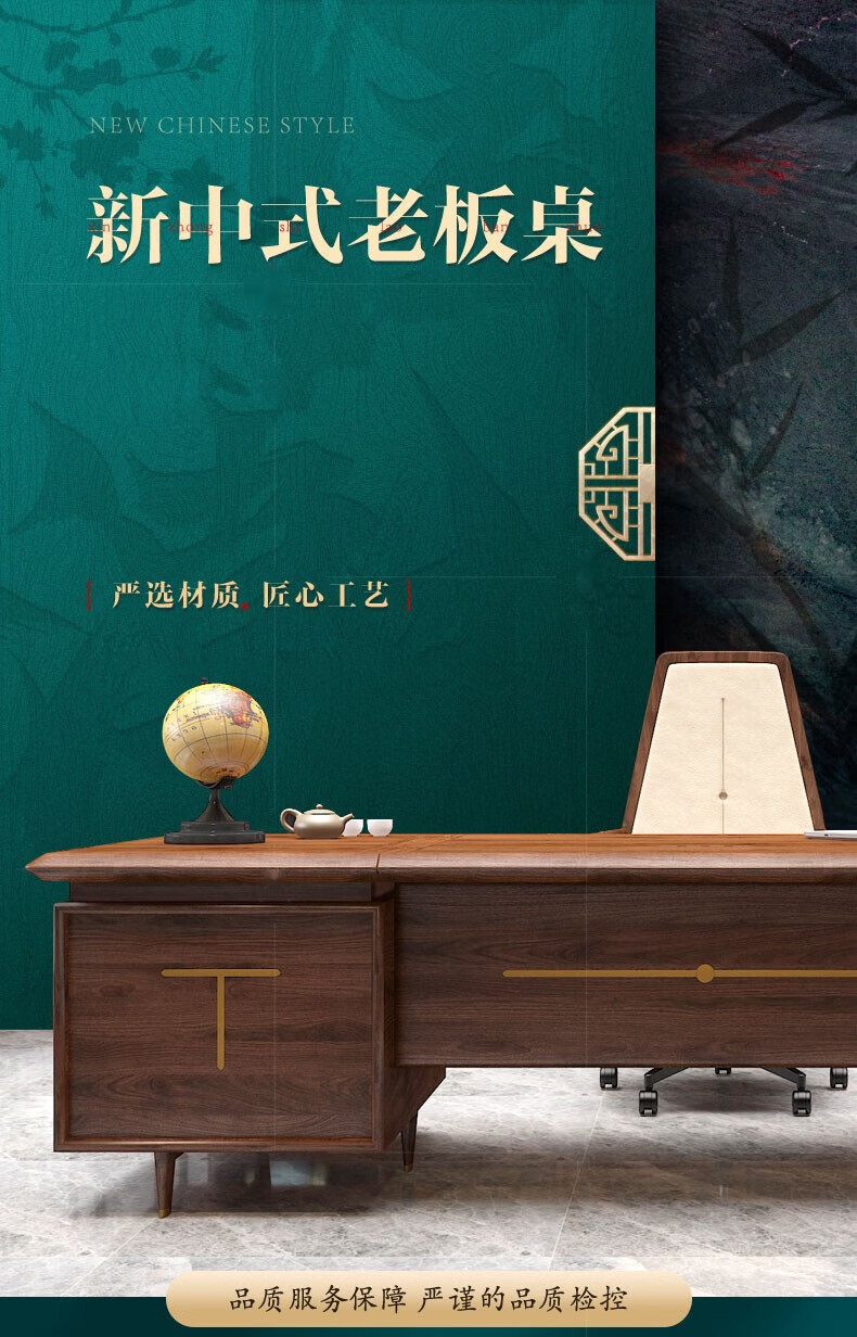 Qiheng (XIIBLC) solid wood boss desk desk black walnut ash wood office executive desk new Chinese style president manager desk (North American black walnut) 2400*1050*780
