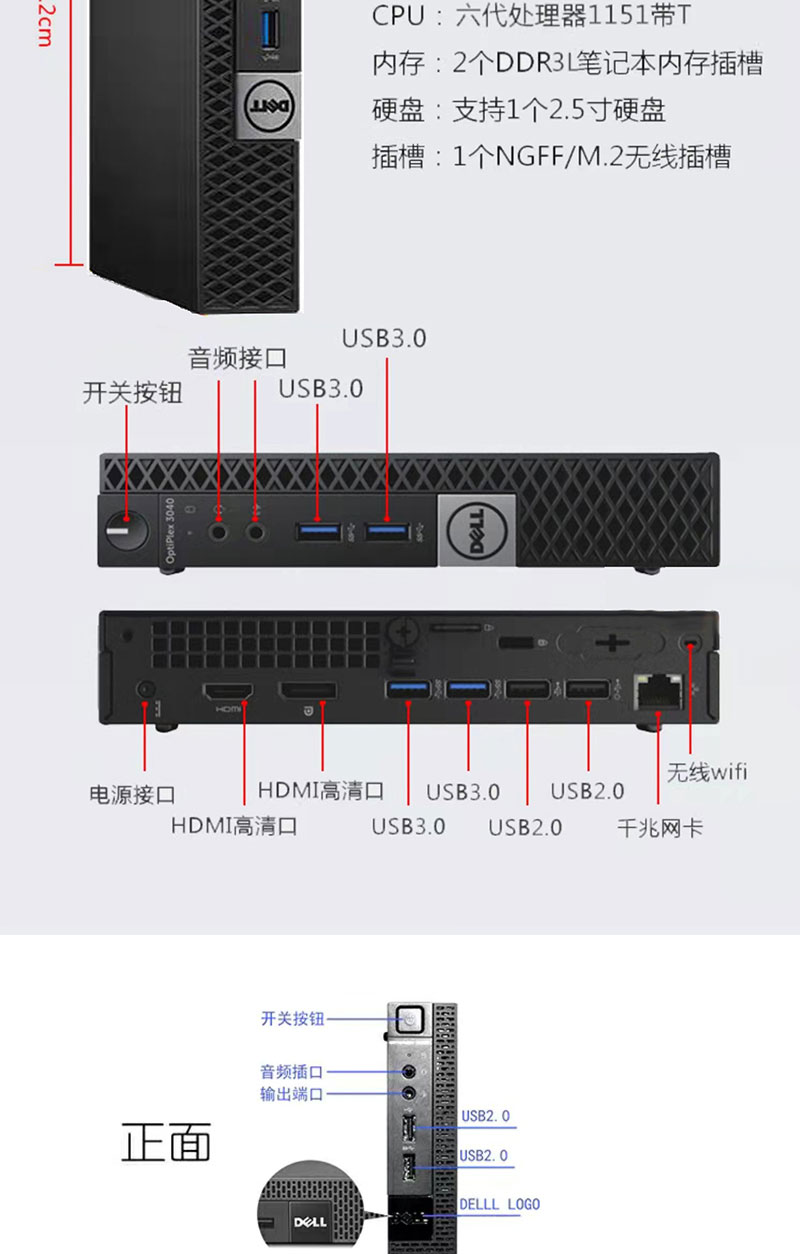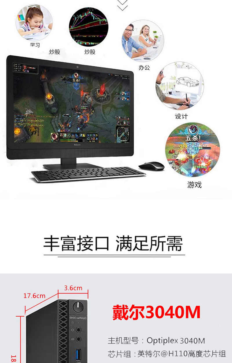 Dell DELL 3040M 4K mini computer host mini quad-core 3020M commercial home gaming micro desktop second-hand 95 new configuration six-generation G4400T + 4G memory + 120G solid state