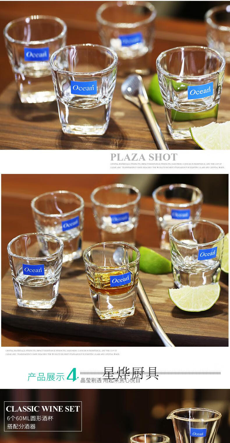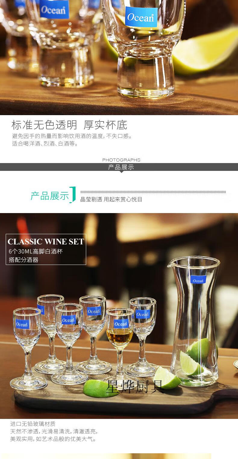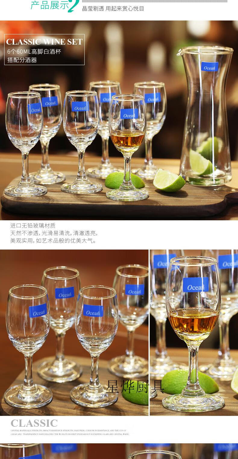 Ou Xin imported glass white wine cup, spirit cup, goblet, one cup set, household red wine jug, wine dispenser, 6 60ML round white wine cups