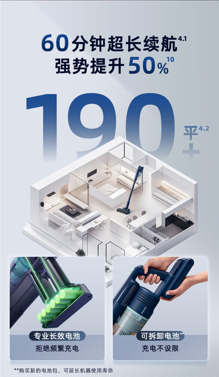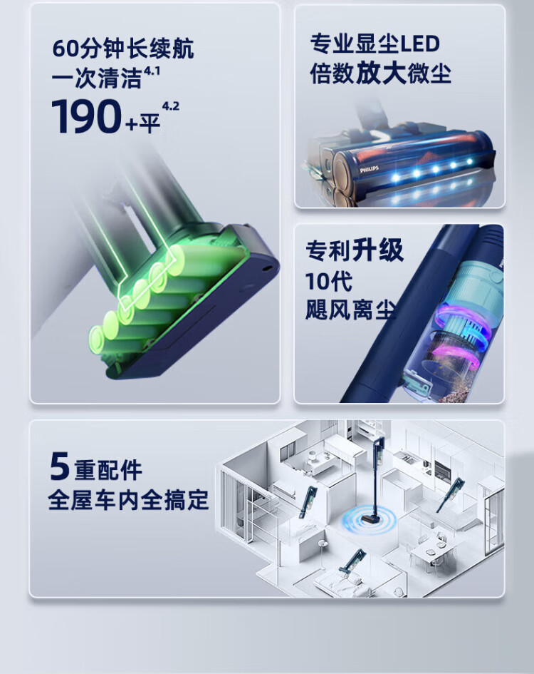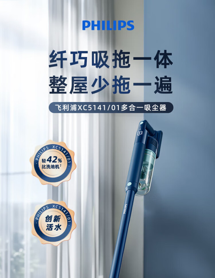 Philips vacuum cleaner household high suction wireless vacuum cleaner suction and mopping all-in-one 60-minute long battery life mite removal device bed treasure cleaning machine multi-function vacuum cleaner XC5141/01 XC5141/01