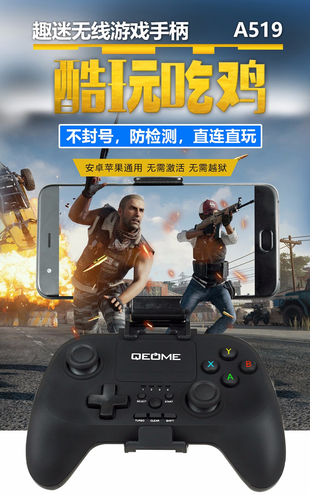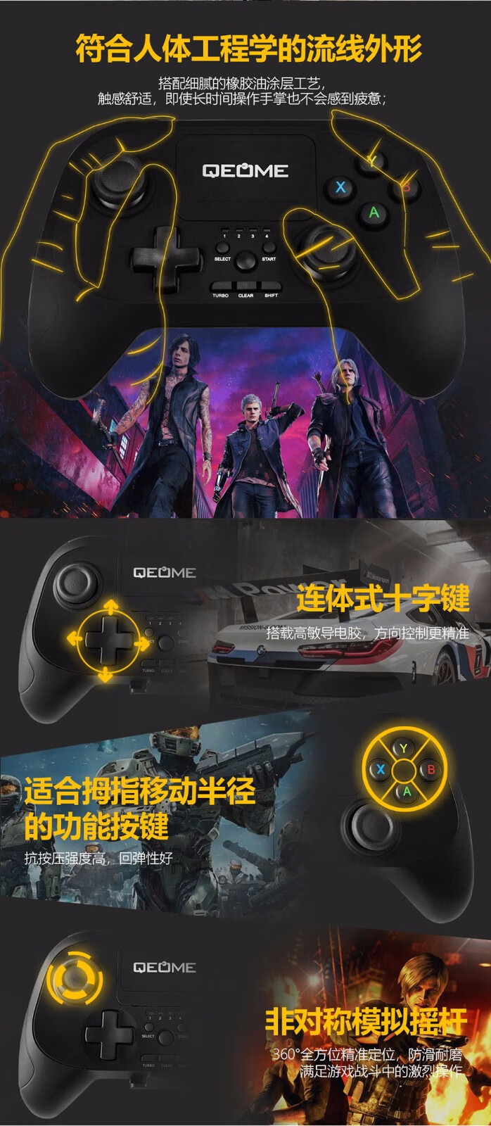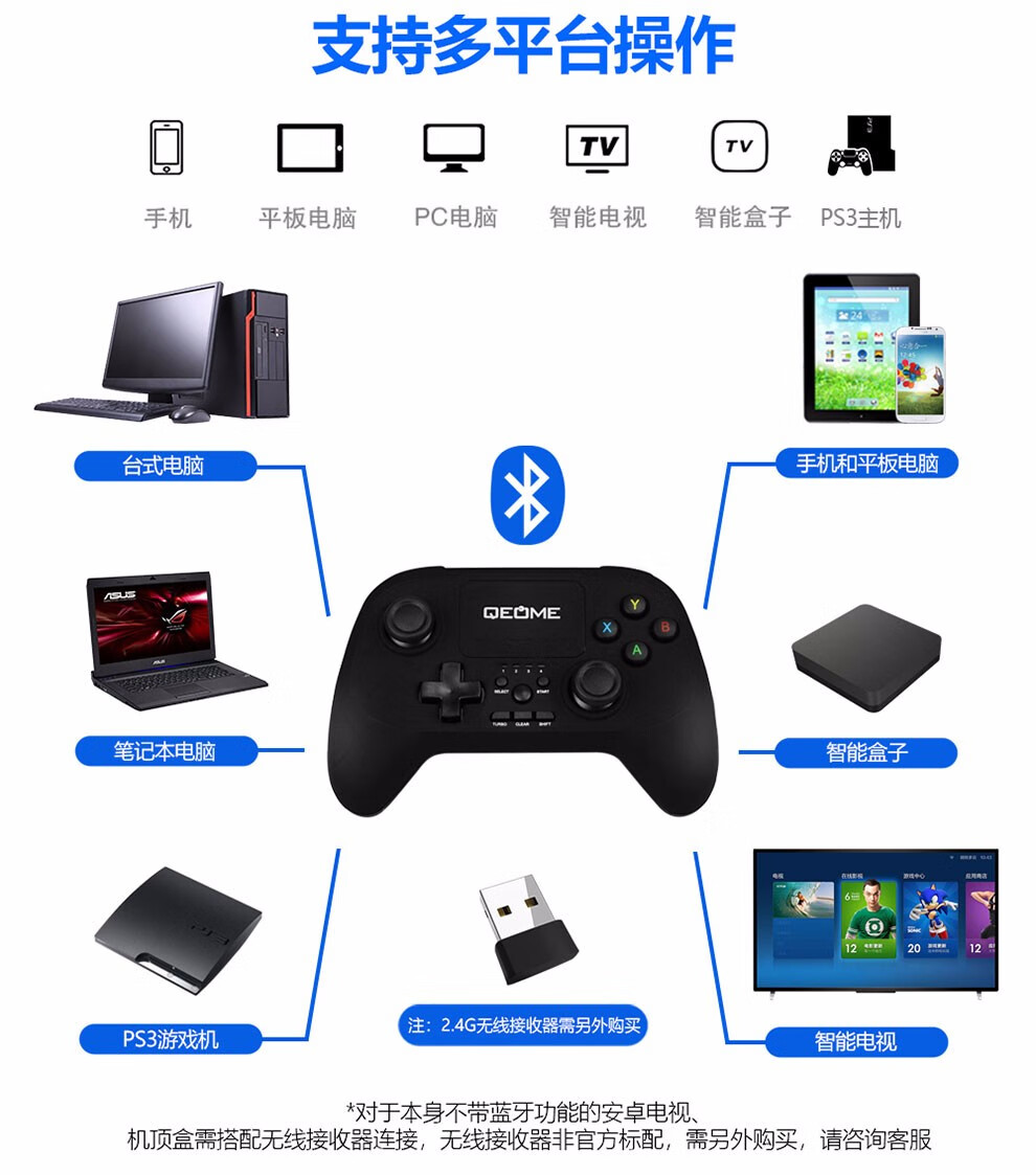 Fun Apple delta simulator Android mobile game controller wireless Bluetooth computer TV Switch King of Glory Peace Elite PC version steam Genshin Impact Chicken Gohan Bluetooth wireless controller + bracket + receiver (Apple Android/Computer/TV)