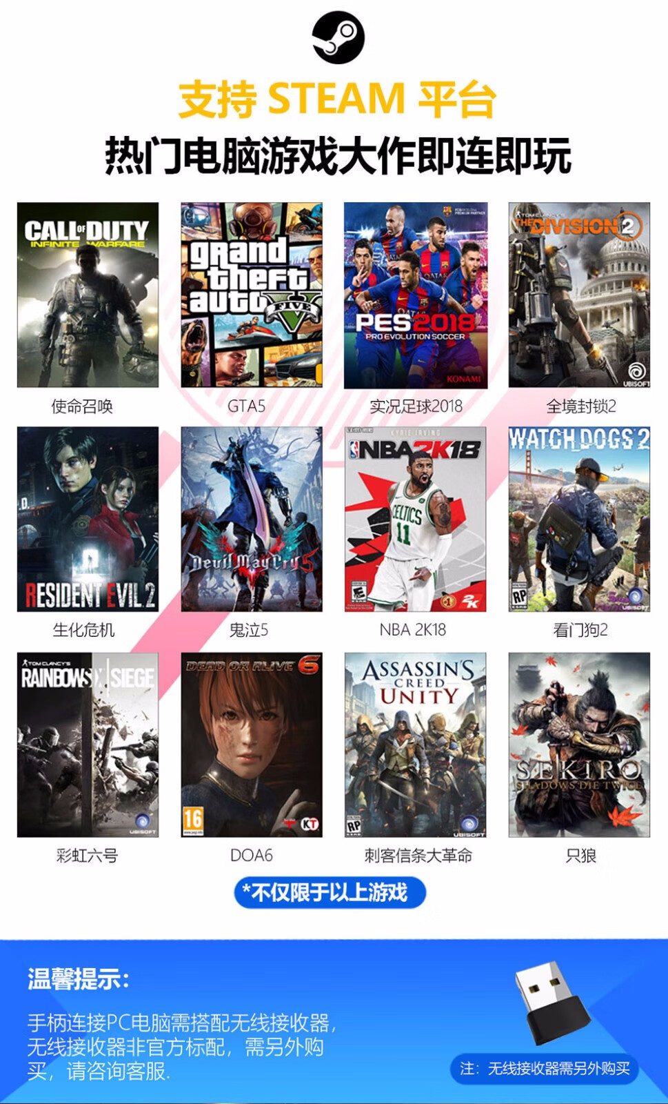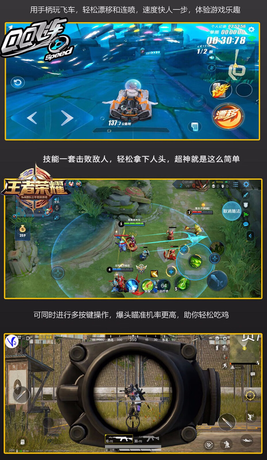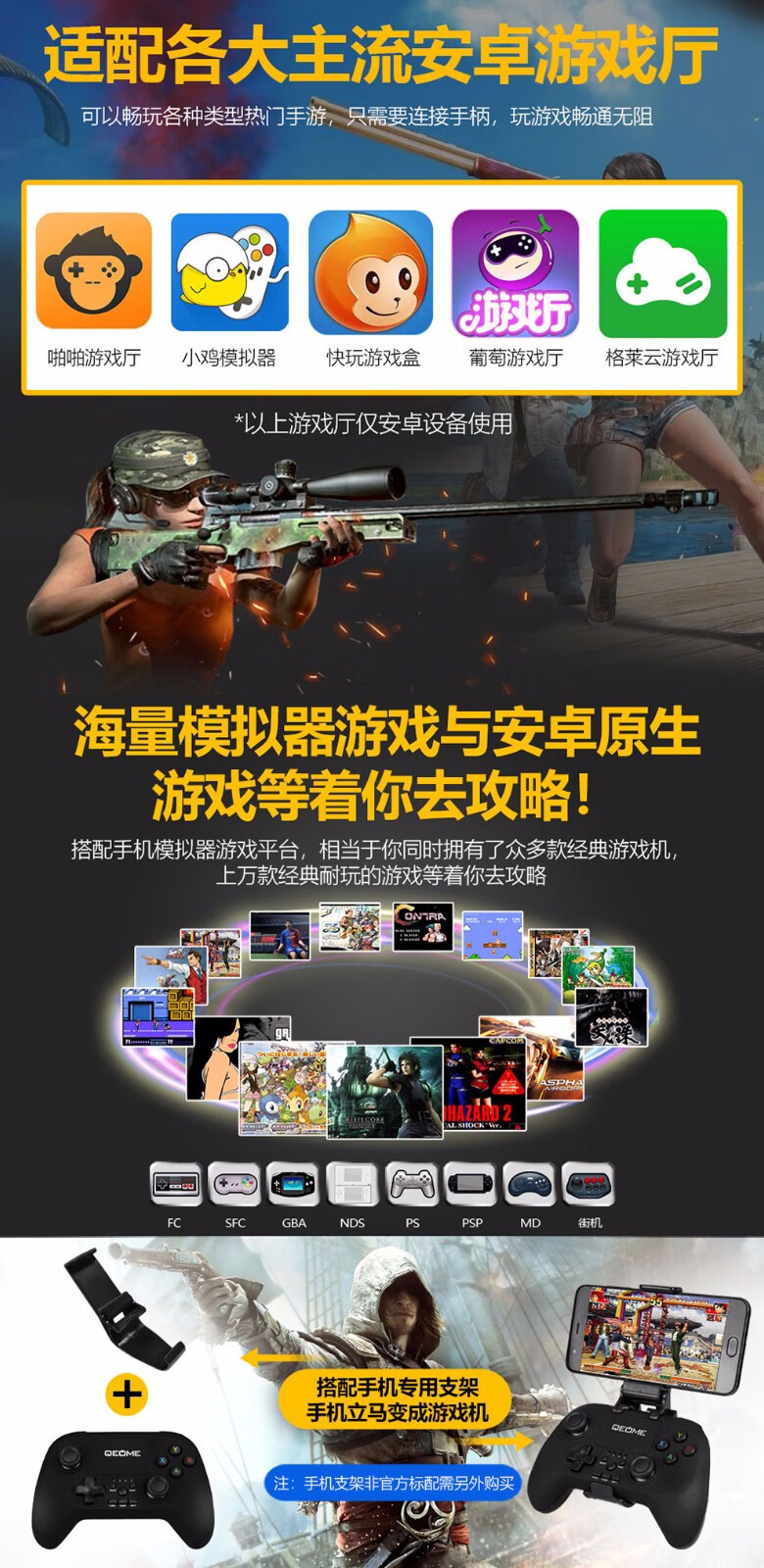 Fun Apple delta simulator Android mobile game controller wireless Bluetooth computer TV Switch King of Glory Peace Elite PC version steam Genshin Impact Chicken Gohan Bluetooth wireless controller + bracket + receiver (Apple Android/Computer/TV)