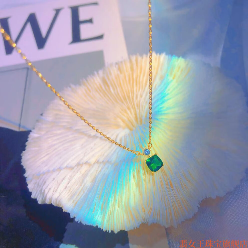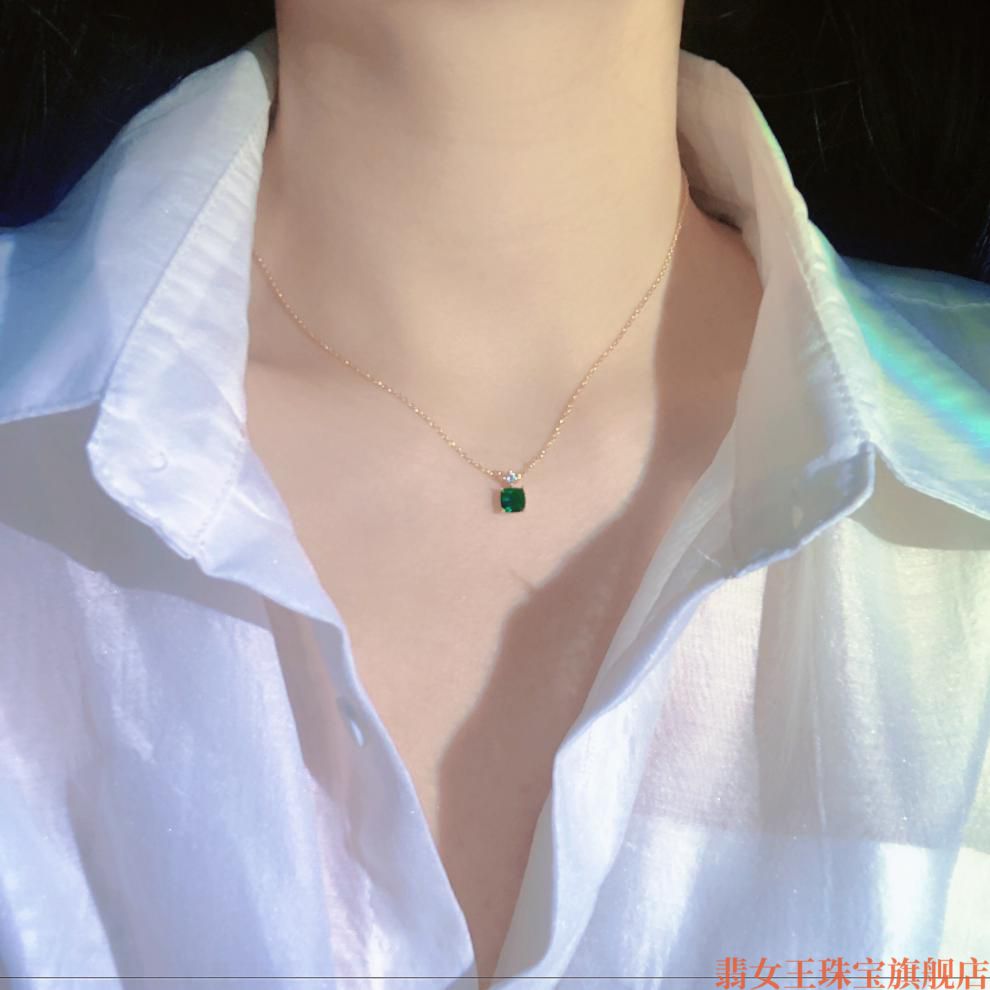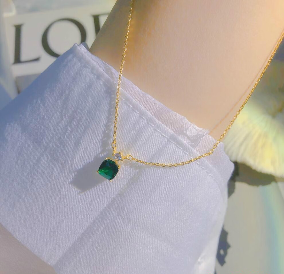 Shixiang emerald necklace American gold stone pendant white cold style ins female simple clavicle chain an emerald clavicle chain