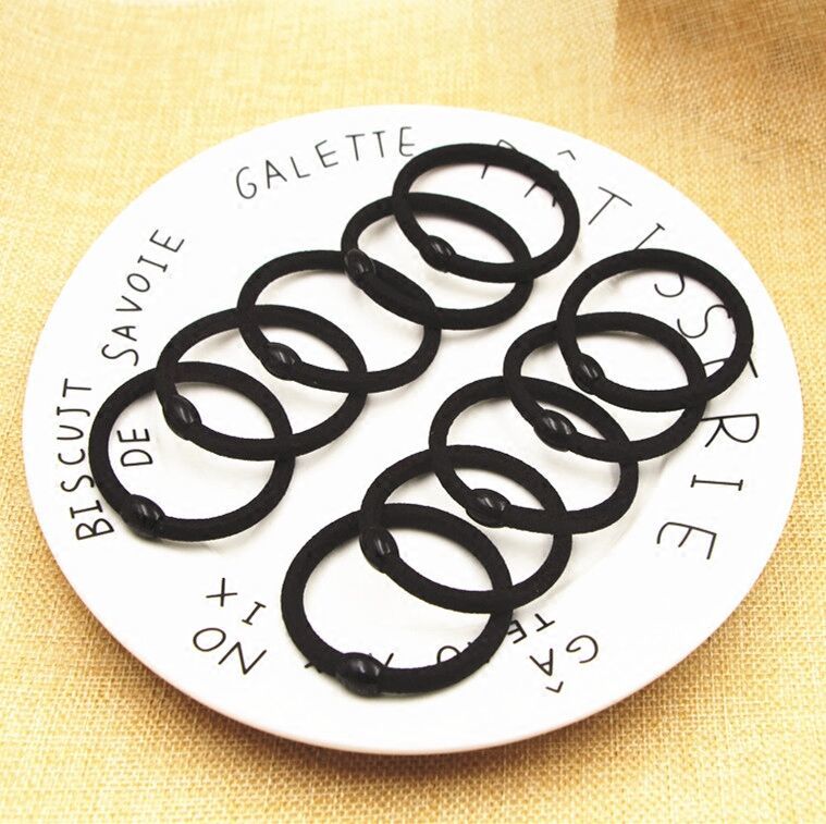 Han Laiti (HLT) Japanese and Korean black hair rope, black rubber band, rubber band, hair rope, hair tie, seamless headband, hair band, headband, women's leather case, 10 pieces, extra thick black, 7MM buckle DBZ