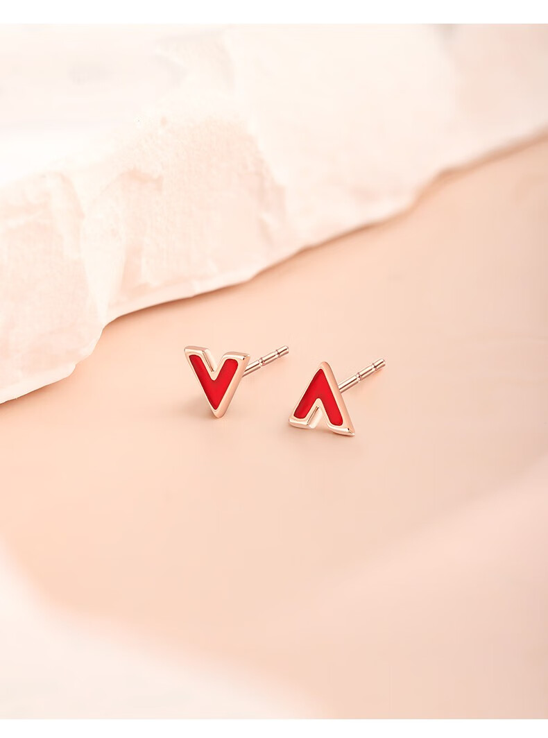 Shiplin Jewelry 18K gold stud earrings 18K gold rose V-shaped earrings 18K rose gold