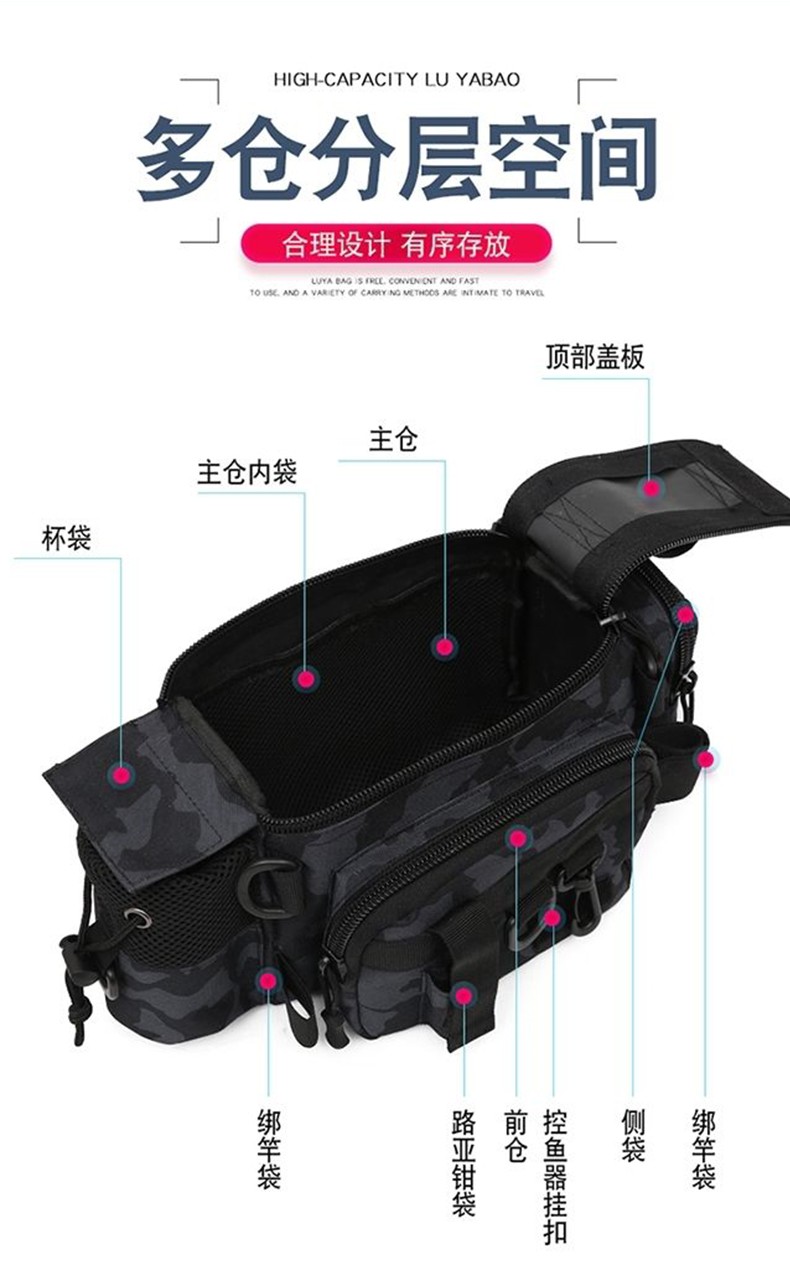 Jamis Lure Bag Multi-functional Lure Waist Bag Fishing Rod Bag One-shoulder Crossbody Rod Lure Backpack Raft Rod Bag Scorpio Black Camouflage