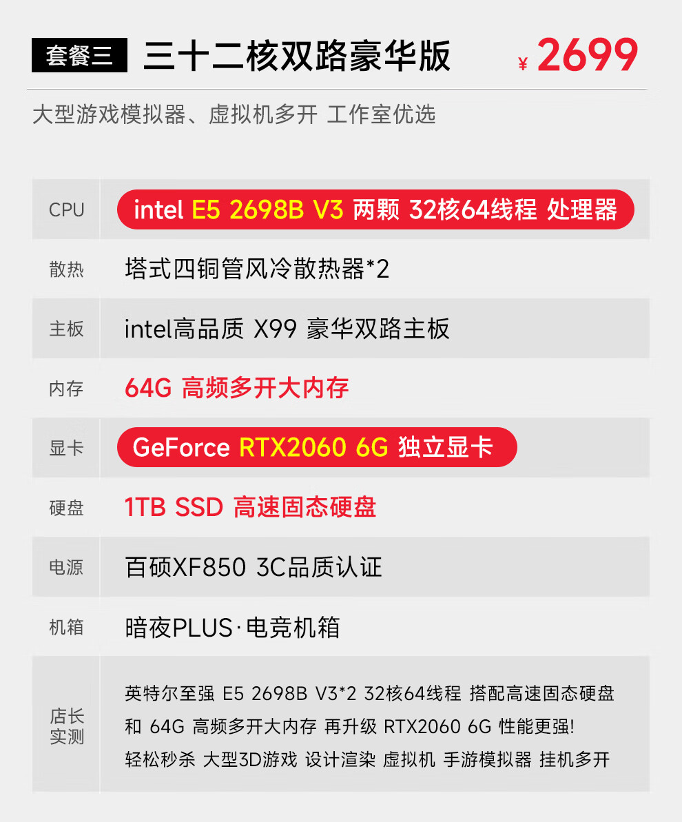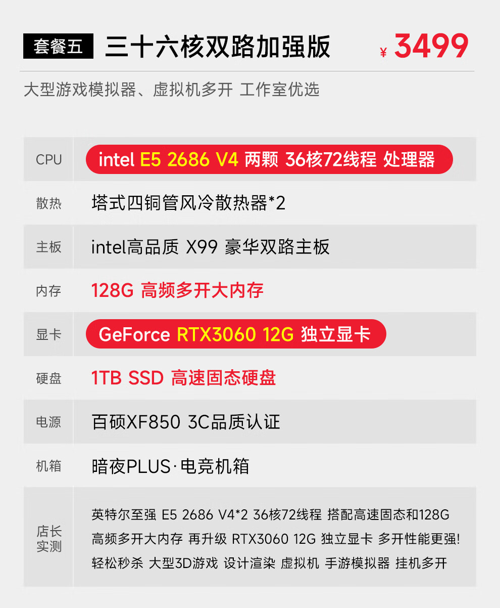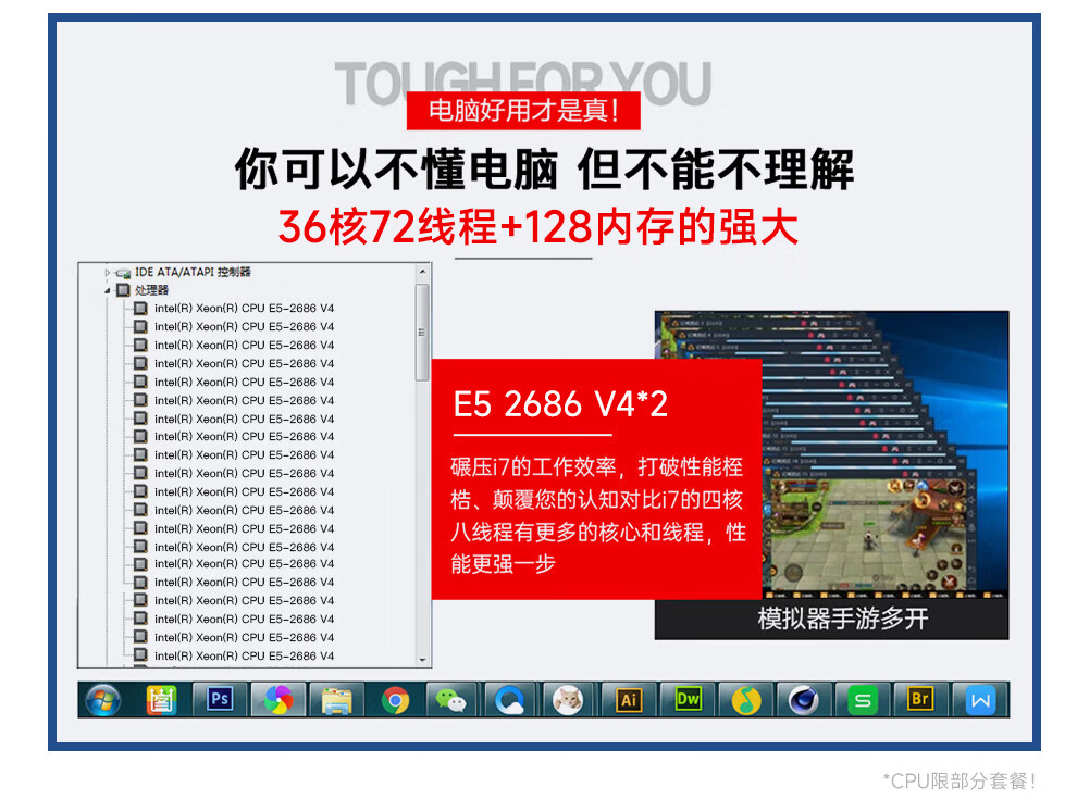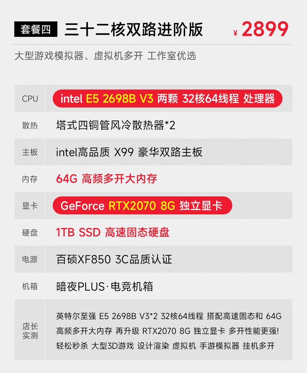 Navigator E5 dual-channel 36-core/32/24-core 2699V3 studio mobile game simulator virtual machine game desktop assembly computer host package four 32-core丨64G+1T丨2070 8G