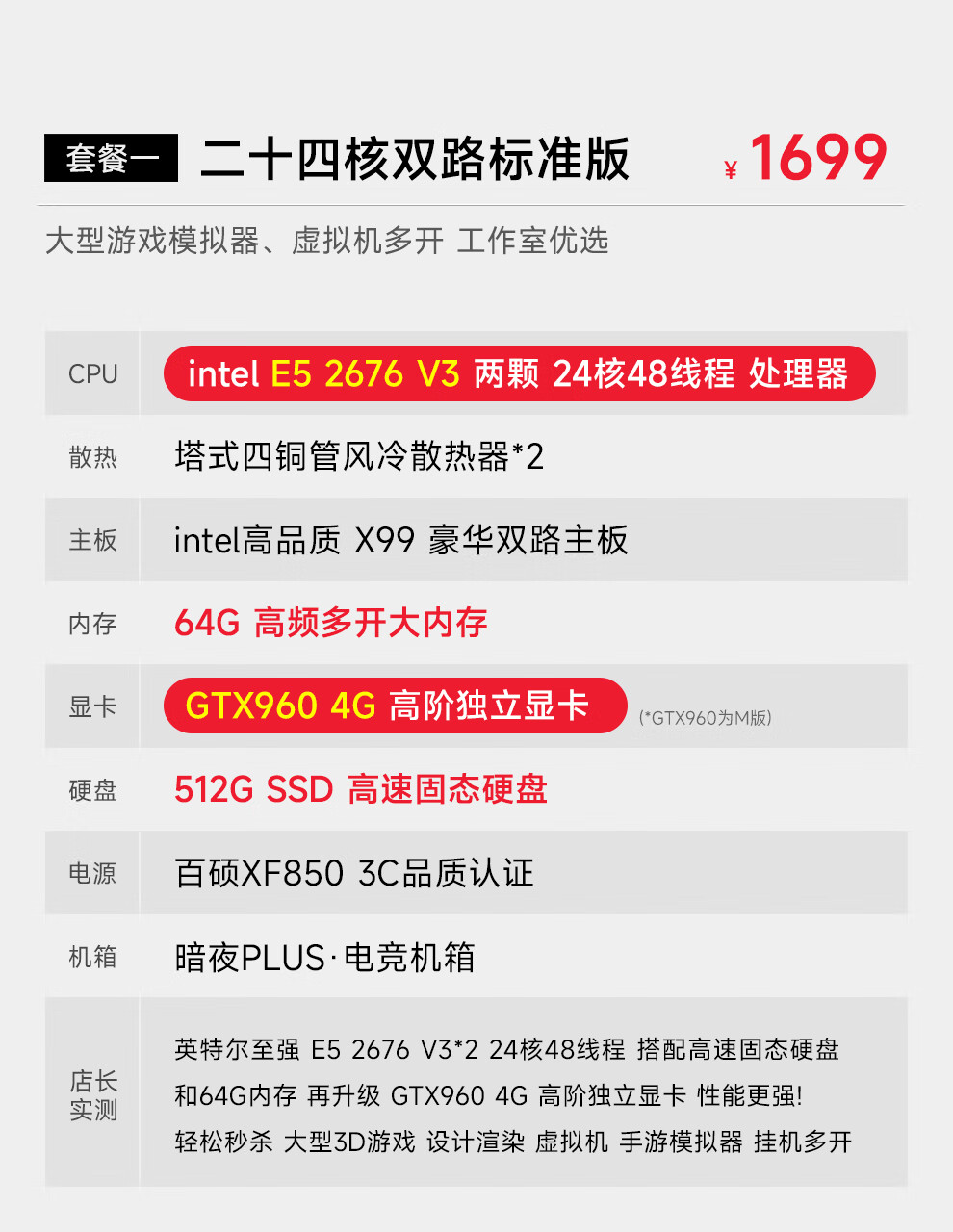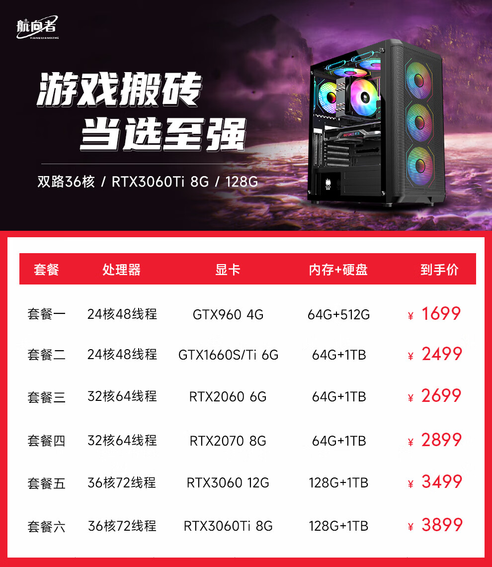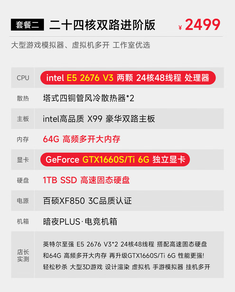 Navigator E5 dual-channel 36-core/32/24-core 2699V3 studio mobile game simulator virtual machine game desktop assembly computer host package four 32-core丨64G+1T丨2070 8G