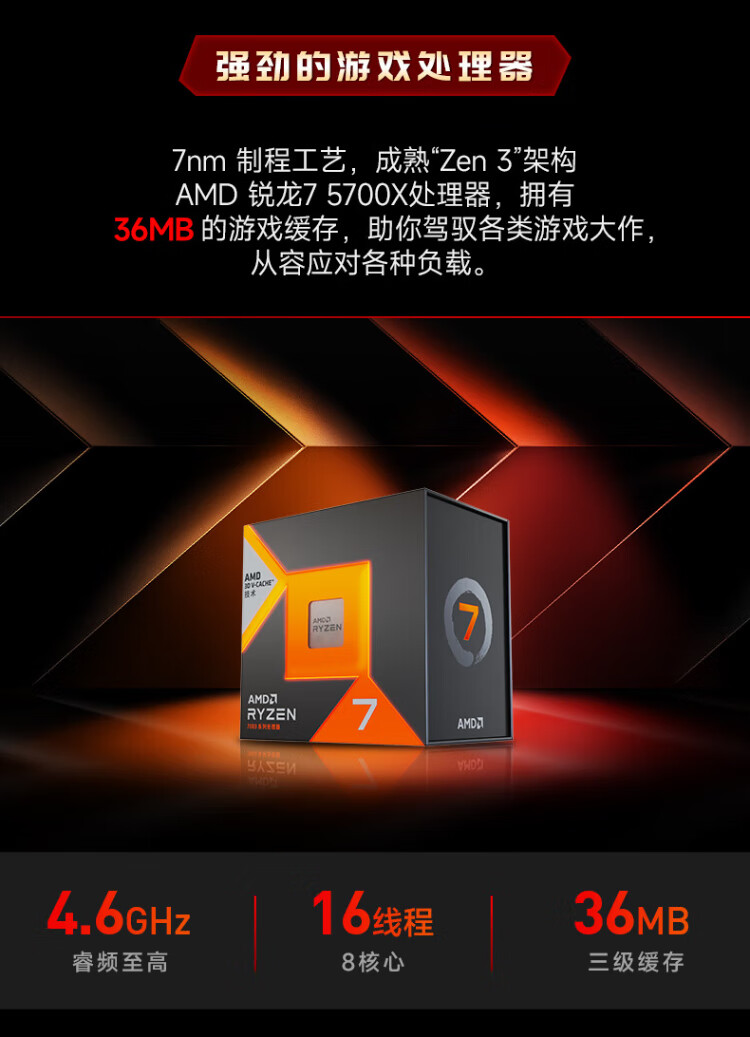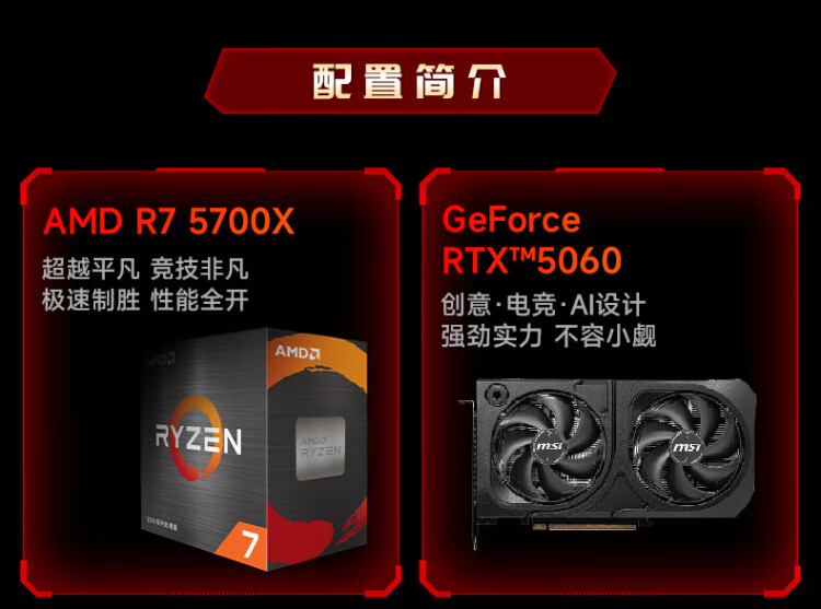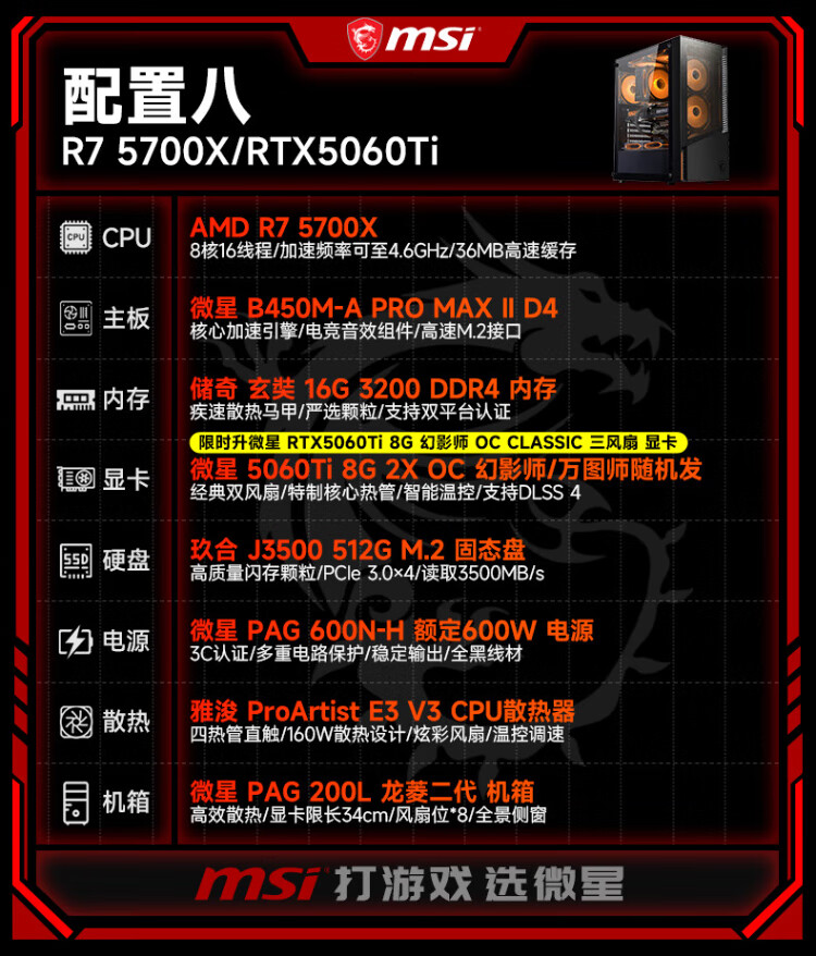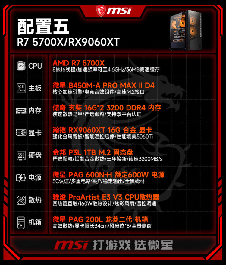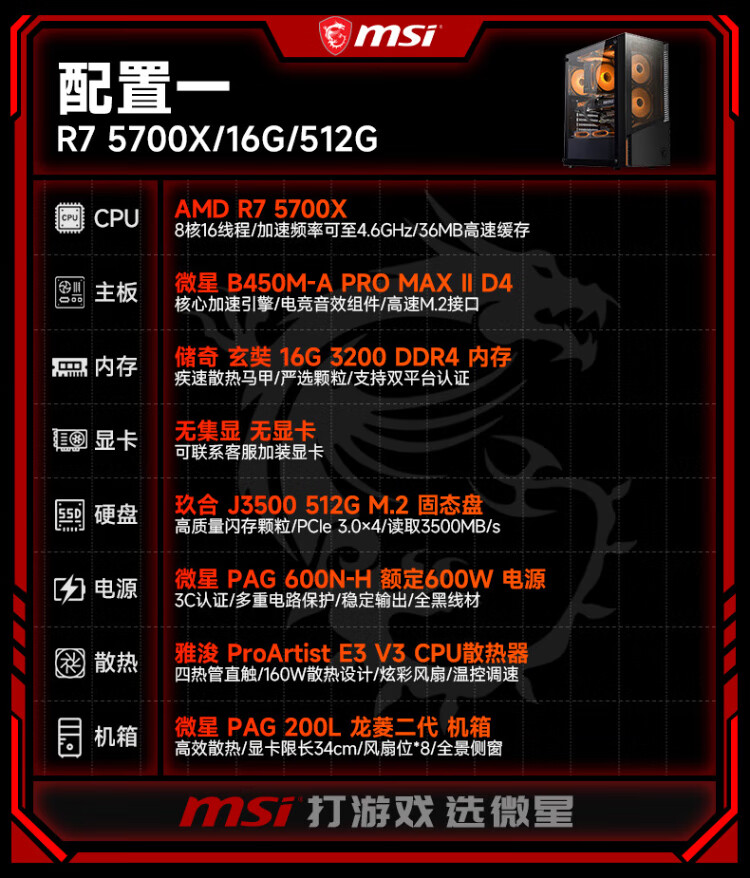 MSI AMD Ryzen 7 5700X/7650GRE/6500XT/6800XT/5050/5060Ti desktop assembly machine game e-sports design office computer host DIY complete machine configuration one R7 5700X without graphics card