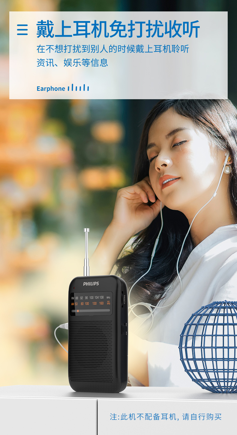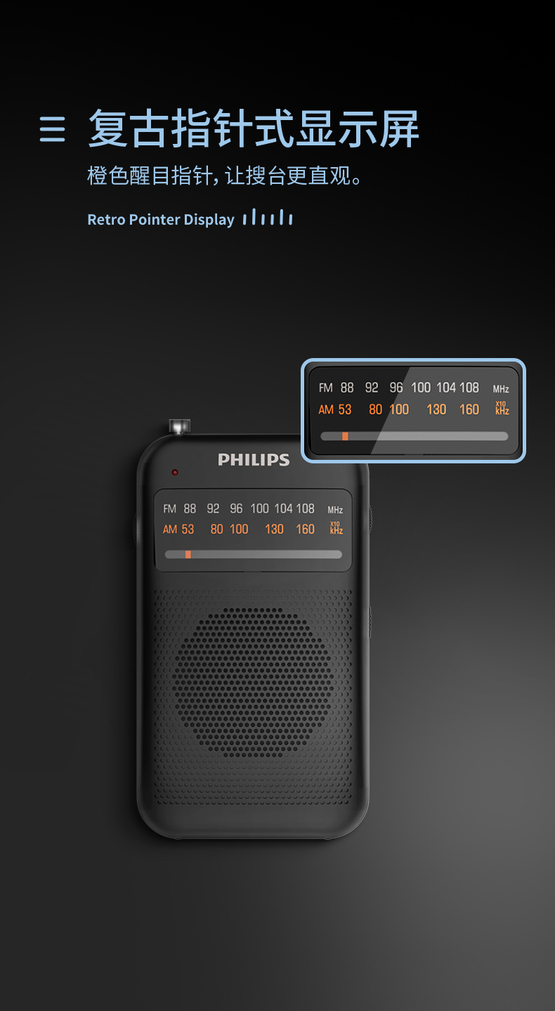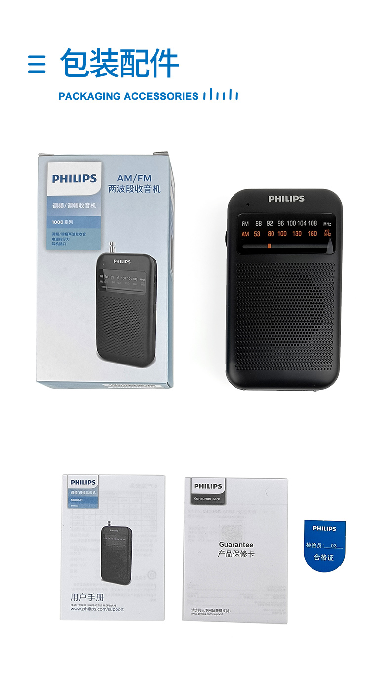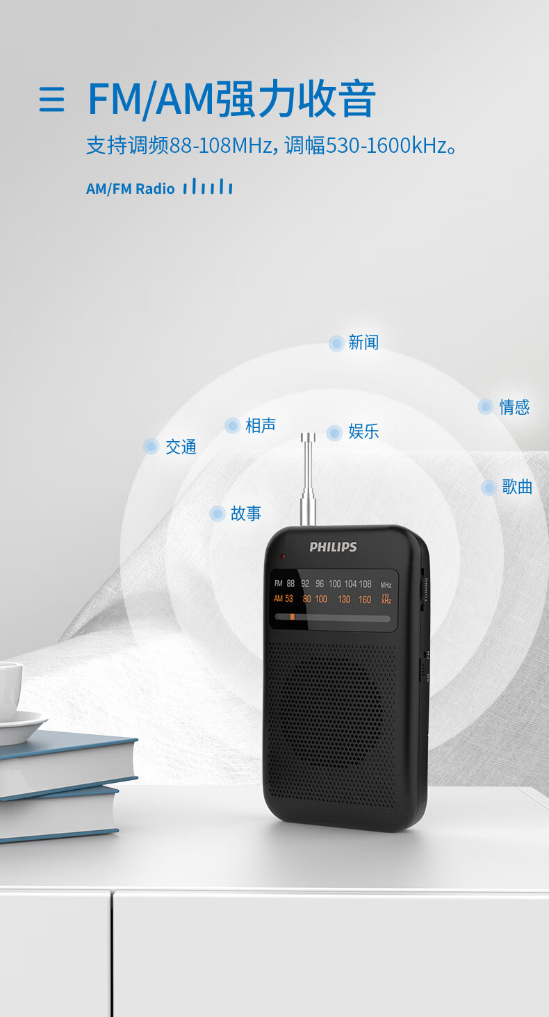 Philips (PHILIPS) new small radio for the elderly, mini small portable fm FM broadcast semiconductor for the elderly, old-fashioned emergency combat readiness charging plug-in card player 1368 standard