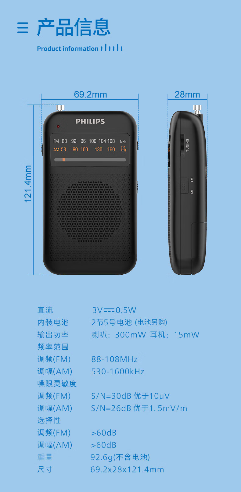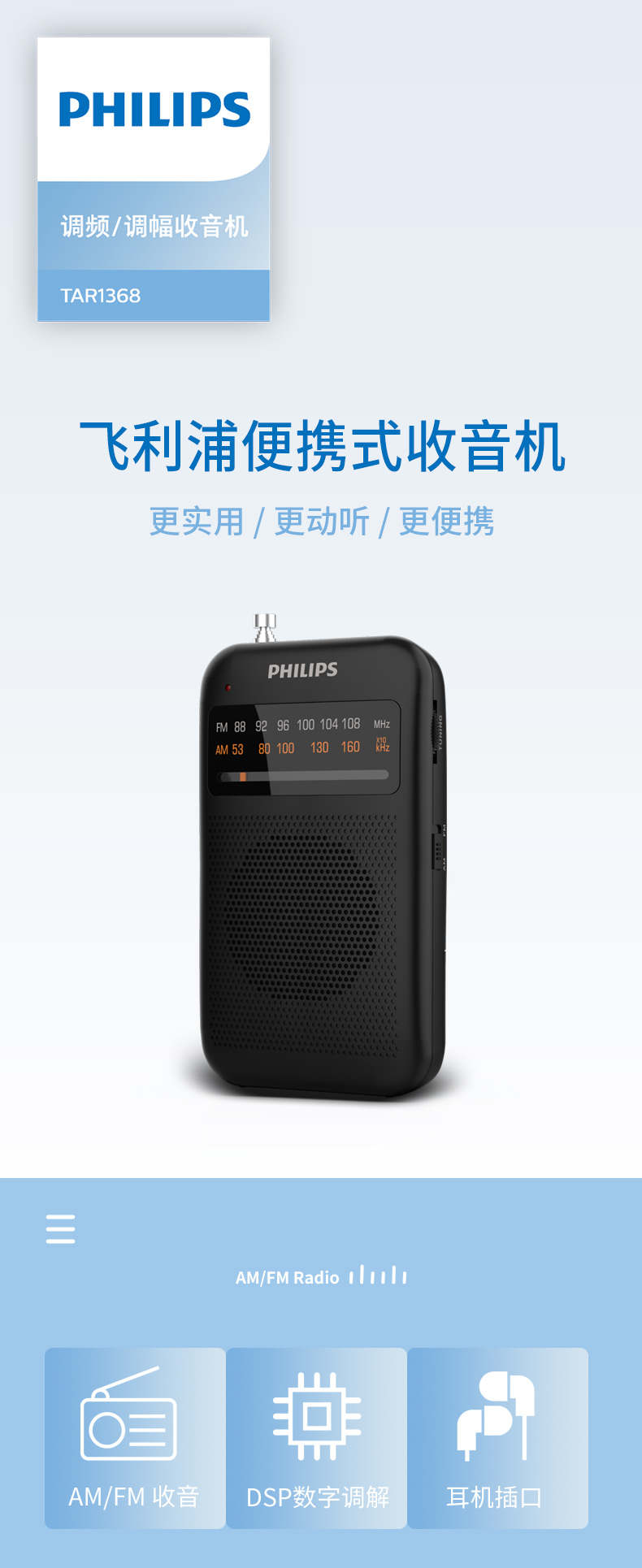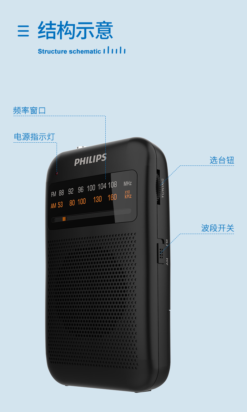 Philips (PHILIPS) new small radio for the elderly, mini small portable fm FM broadcast semiconductor for the elderly, old-fashioned emergency combat readiness charging plug-in card player 1368 standard