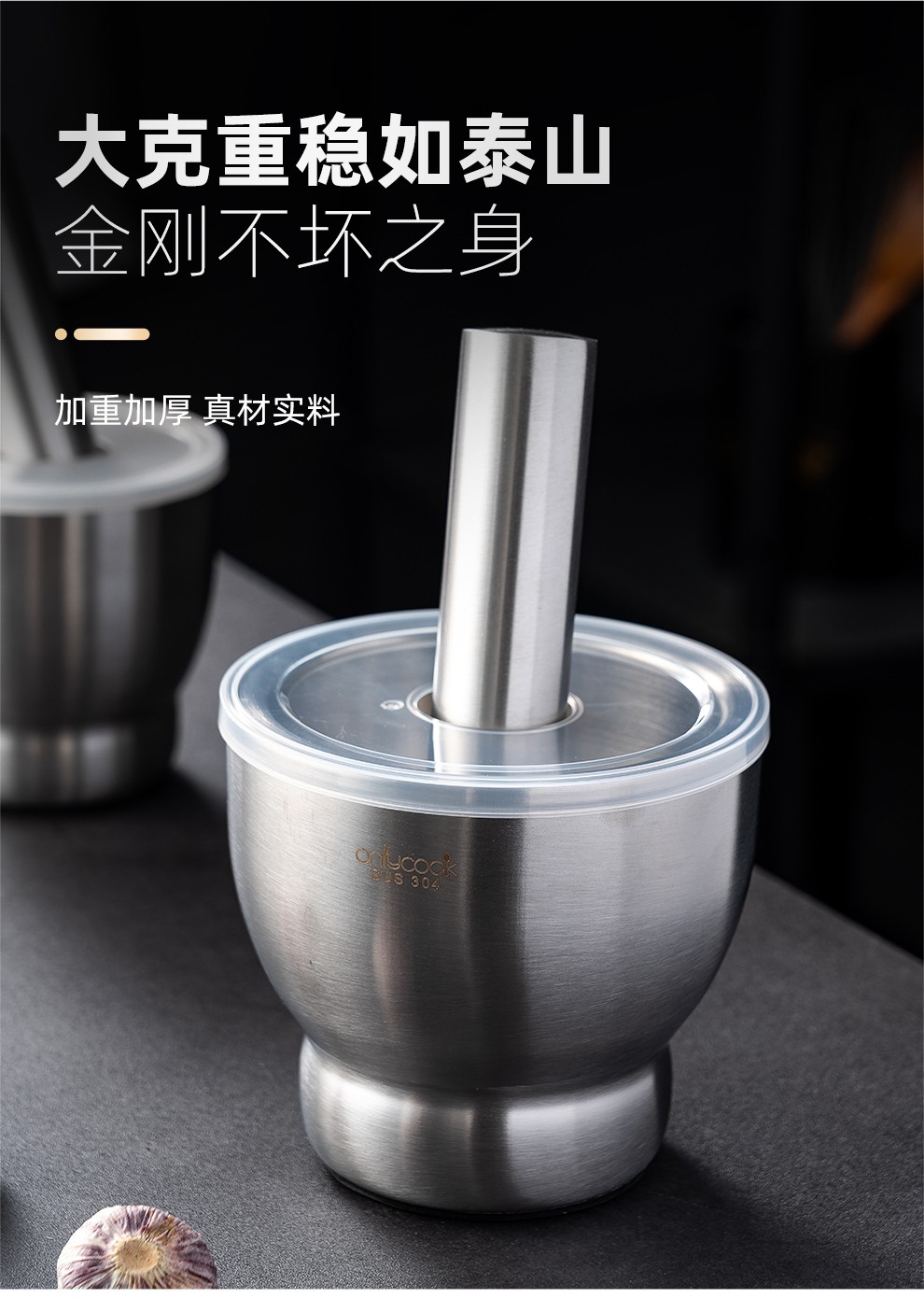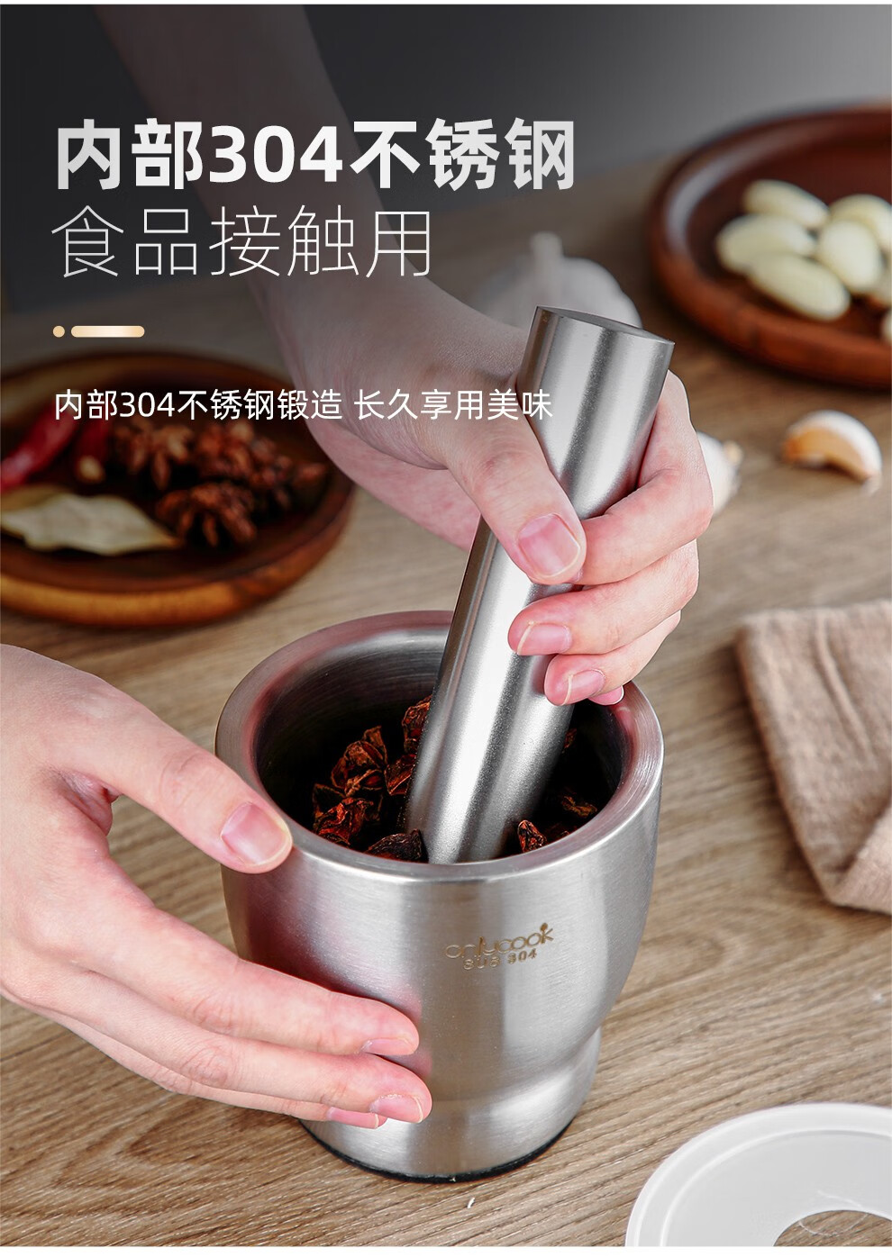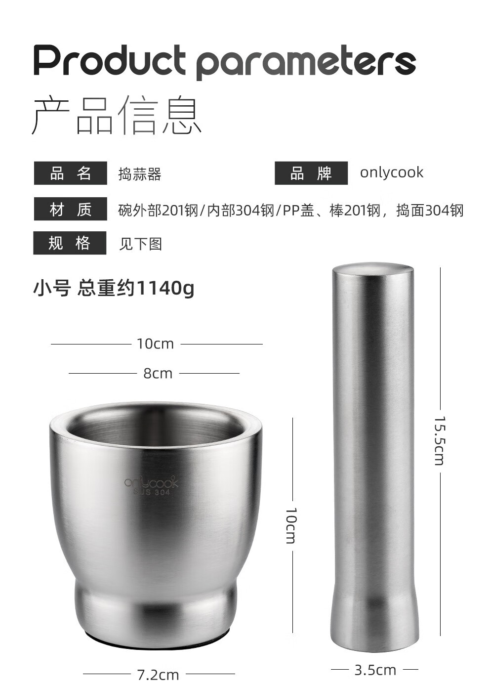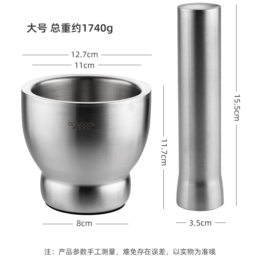 Onlycook garlic masher 304 stainless steel garlic mortar household mashing jar mashing medicine mortar stone mortar pounding mortar grinding mortar jar small/single