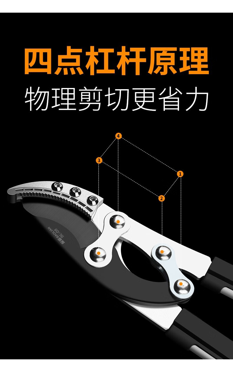 Baolian pruning scissors, special branch scissors for fruit tree pruning, garden pruning tool, powerful for pruning thick branches and saving effort. The basic thickened aluminum pole is 60cm long and can cut 35MM.