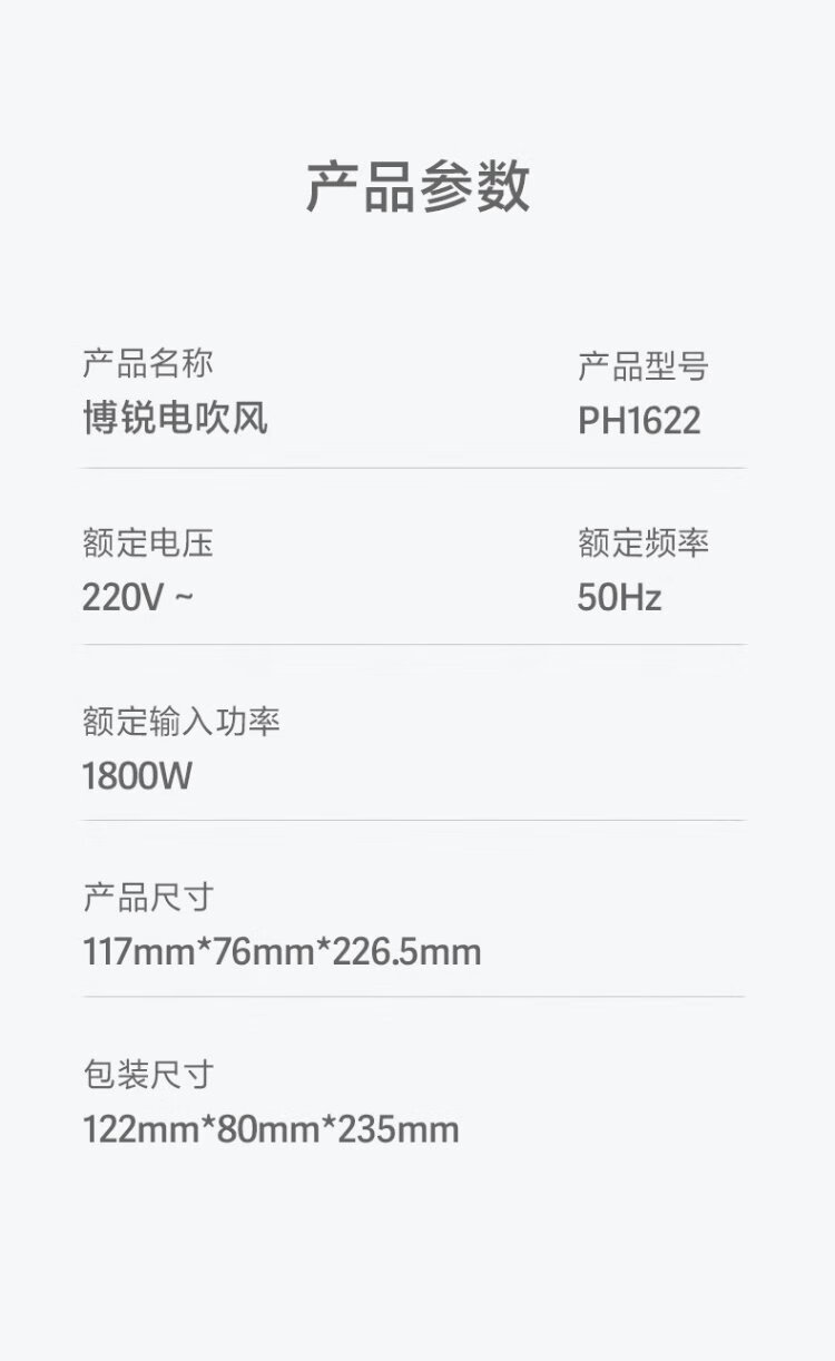 POREE hair dryer, household high-power hair dryer, student dormitory, portable, high wind, low noise, three-speed temperature 360, nozzle hair dryer as a gift for girlfriend, simple white, three-speed temperature control, available in multiple scenarios, PH1621 1800w