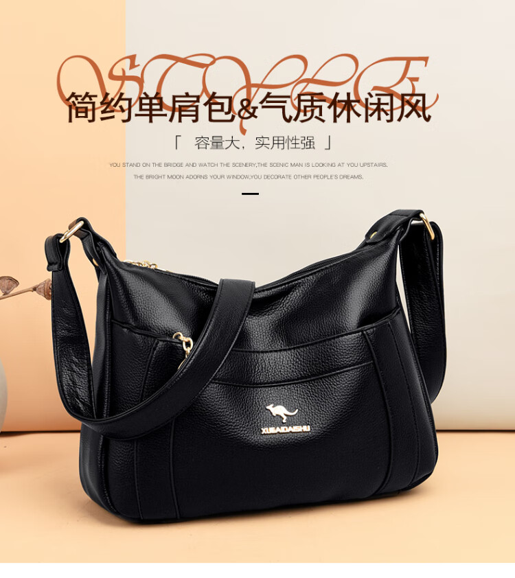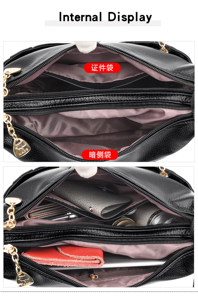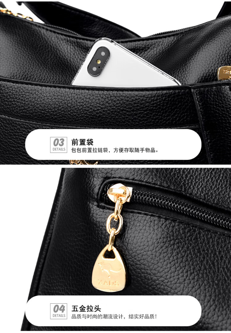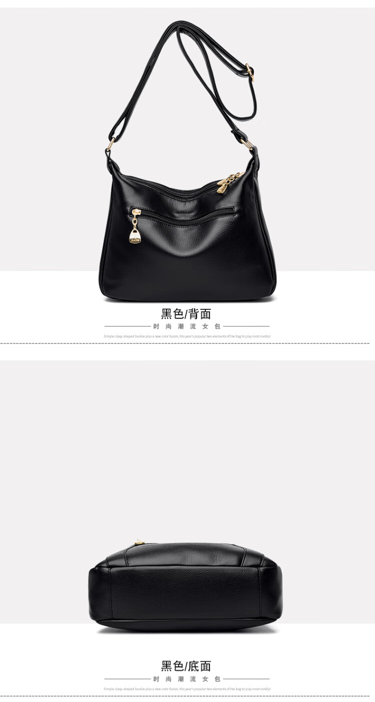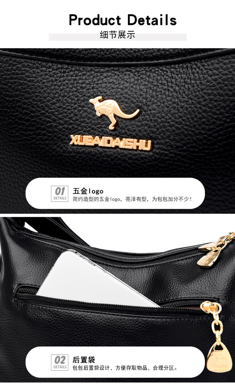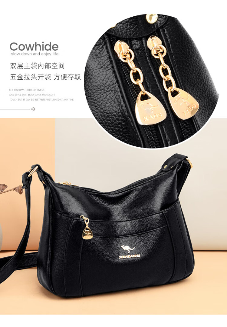 XUEAIDAISHU (XUEAIDAISHU) Women's Genuine Leather Shoulder Bag 2025 New Middle-aged and Old Mother Bag 40 Years Old 50 Women's Bag Crossbody Bag 60 Mother Gift Black Gift Box + Gift Bag + Hand Bag Card Holder