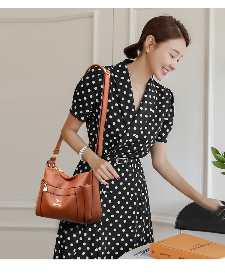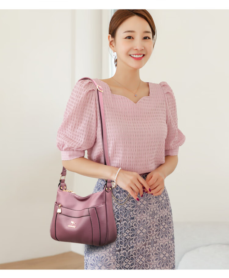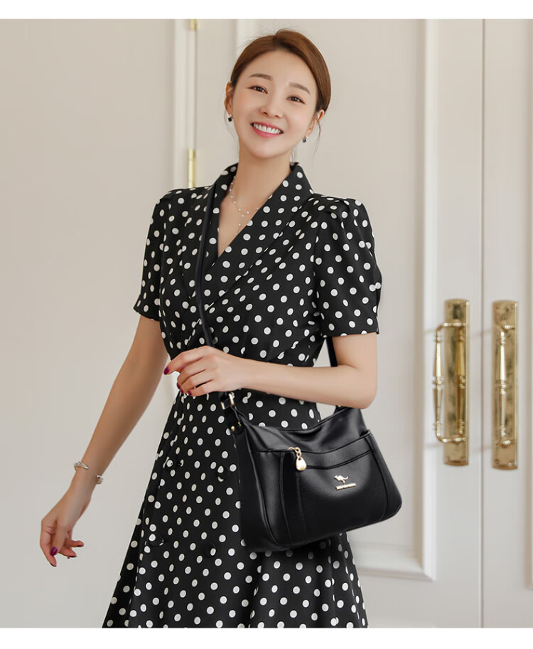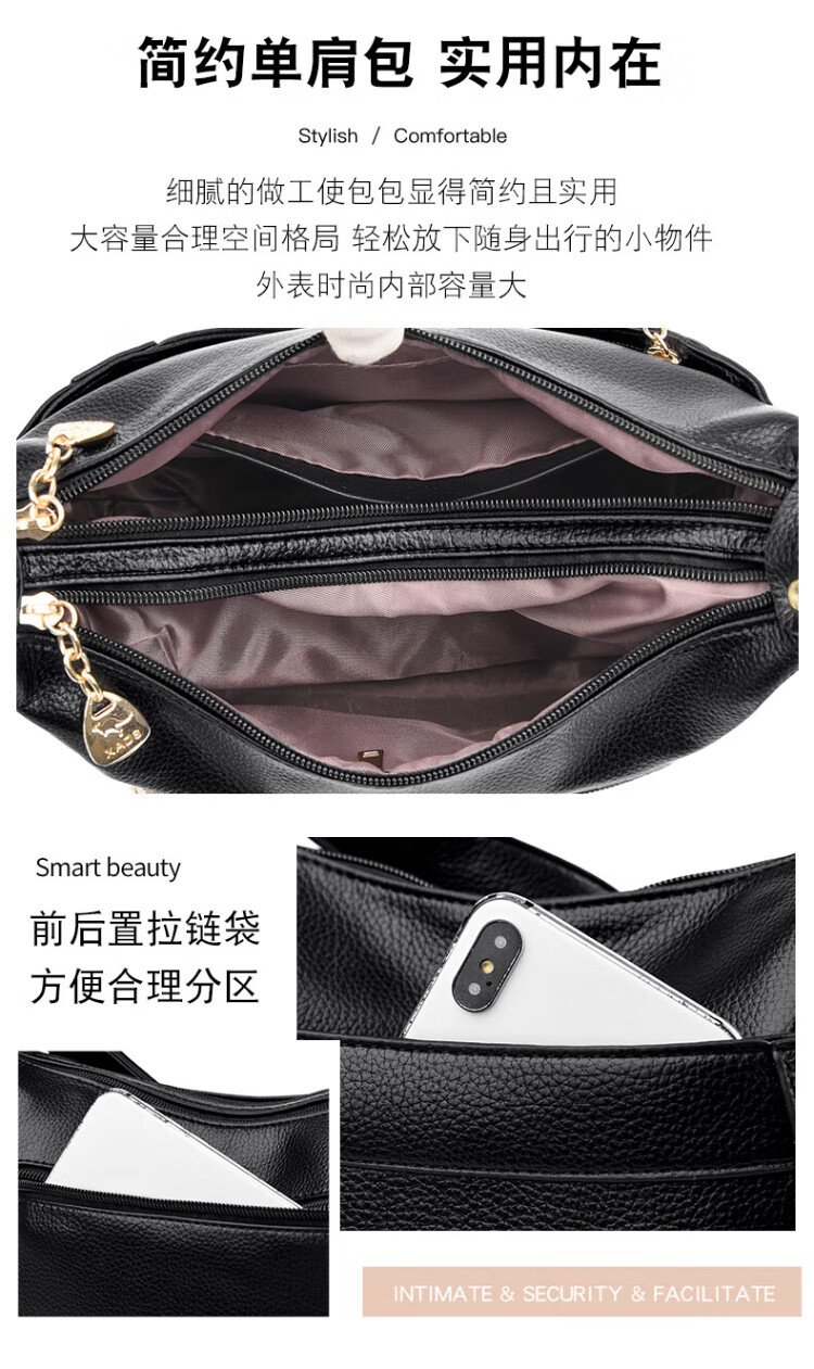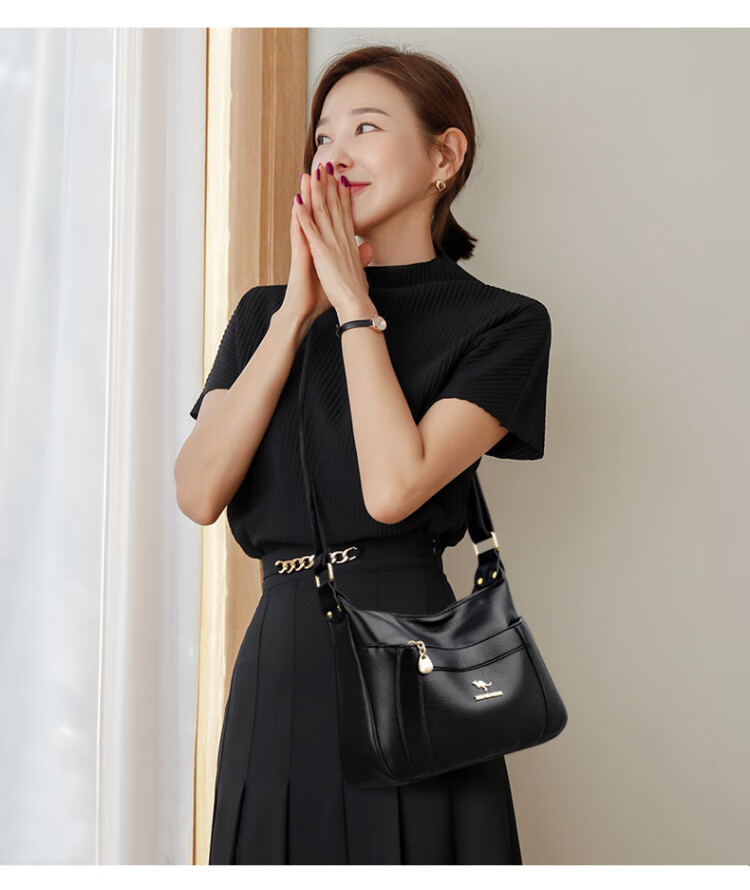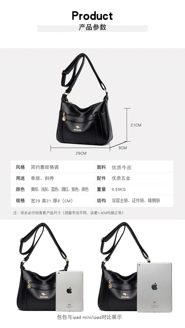 XUEAIDAISHU (XUEAIDAISHU) Women's Genuine Leather Shoulder Bag 2025 New Middle-aged and Old Mother Bag 40 Years Old 50 Women's Bag Crossbody Bag 60 Mother Gift Black Gift Box + Gift Bag + Hand Bag Card Holder