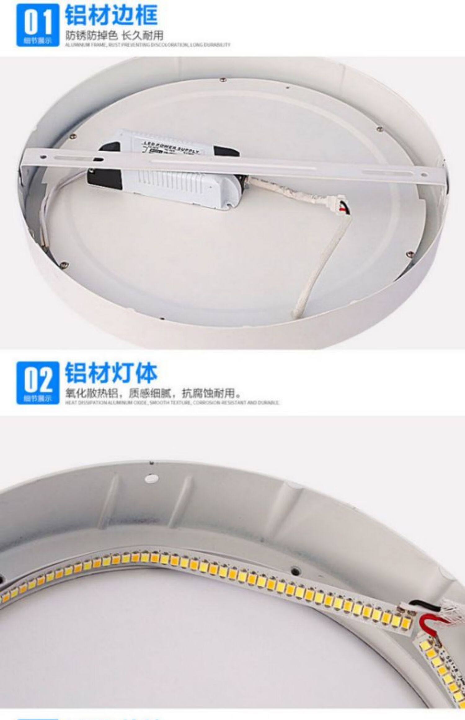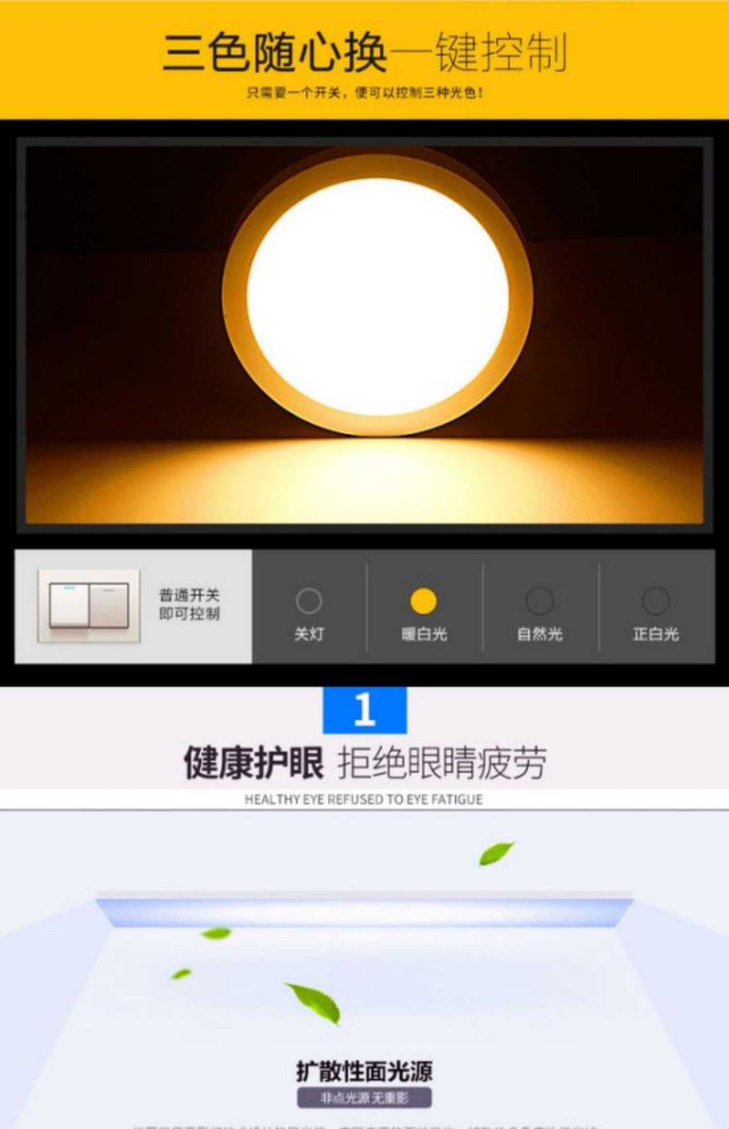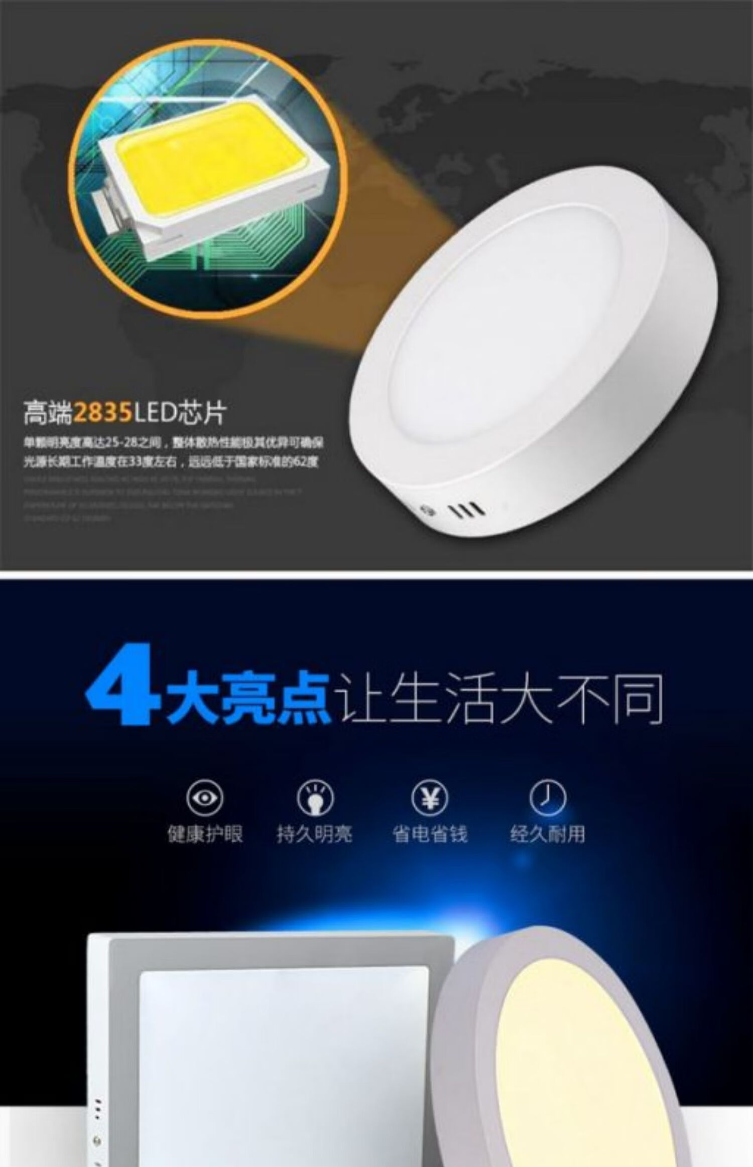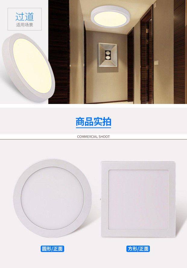 Aroden LED ultra-thin surface-mounted downlight round three-color balcony bedroom aisle entrance kitchen and bathroom grille-free hole-free ceiling light 6W round 11CM white light