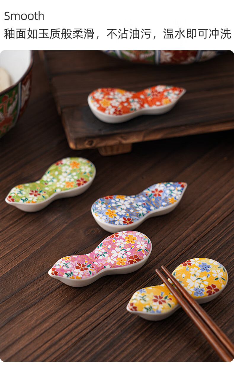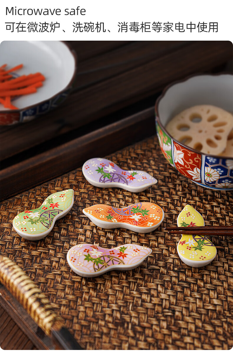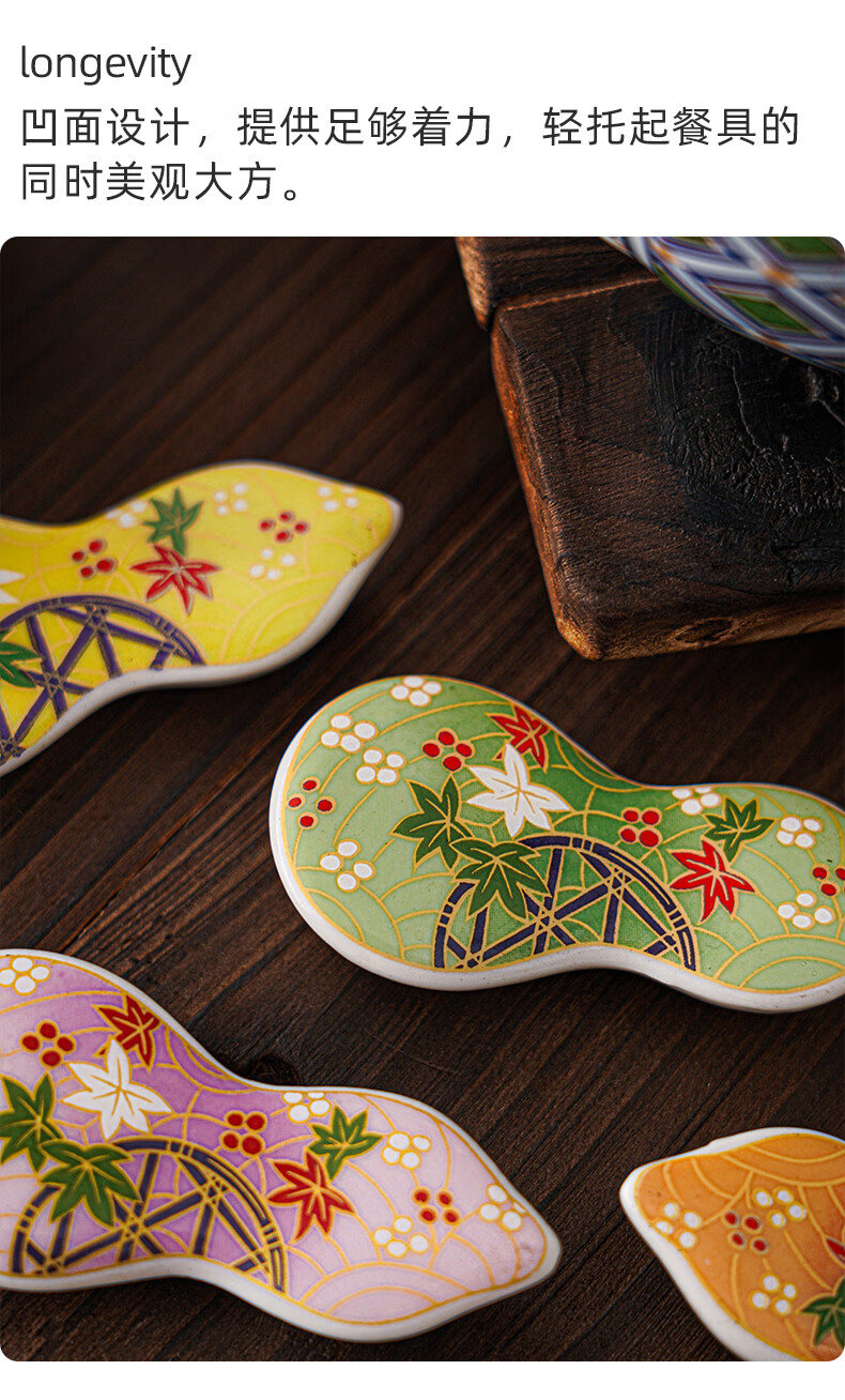 Mino-yaki Japanese-style imported cherry blossom maple leaf ceramic chopstick holder set household tableware chopstick holder Momiji Yuzen