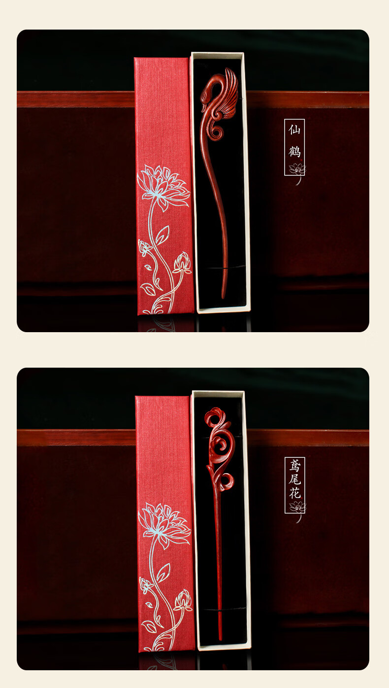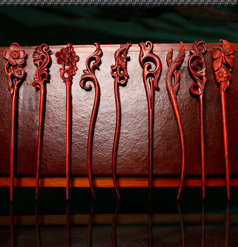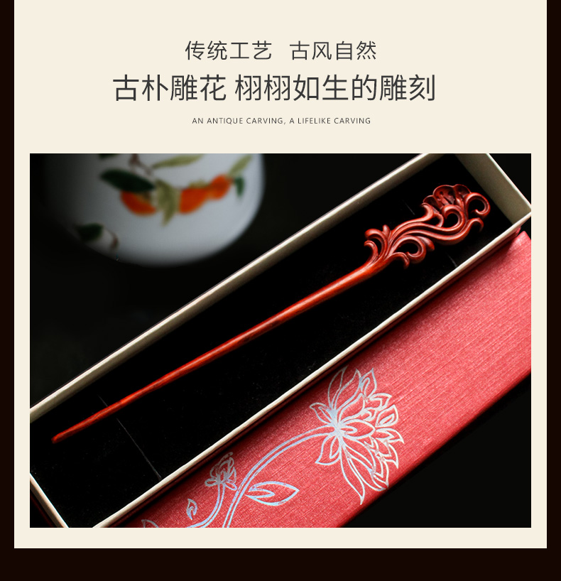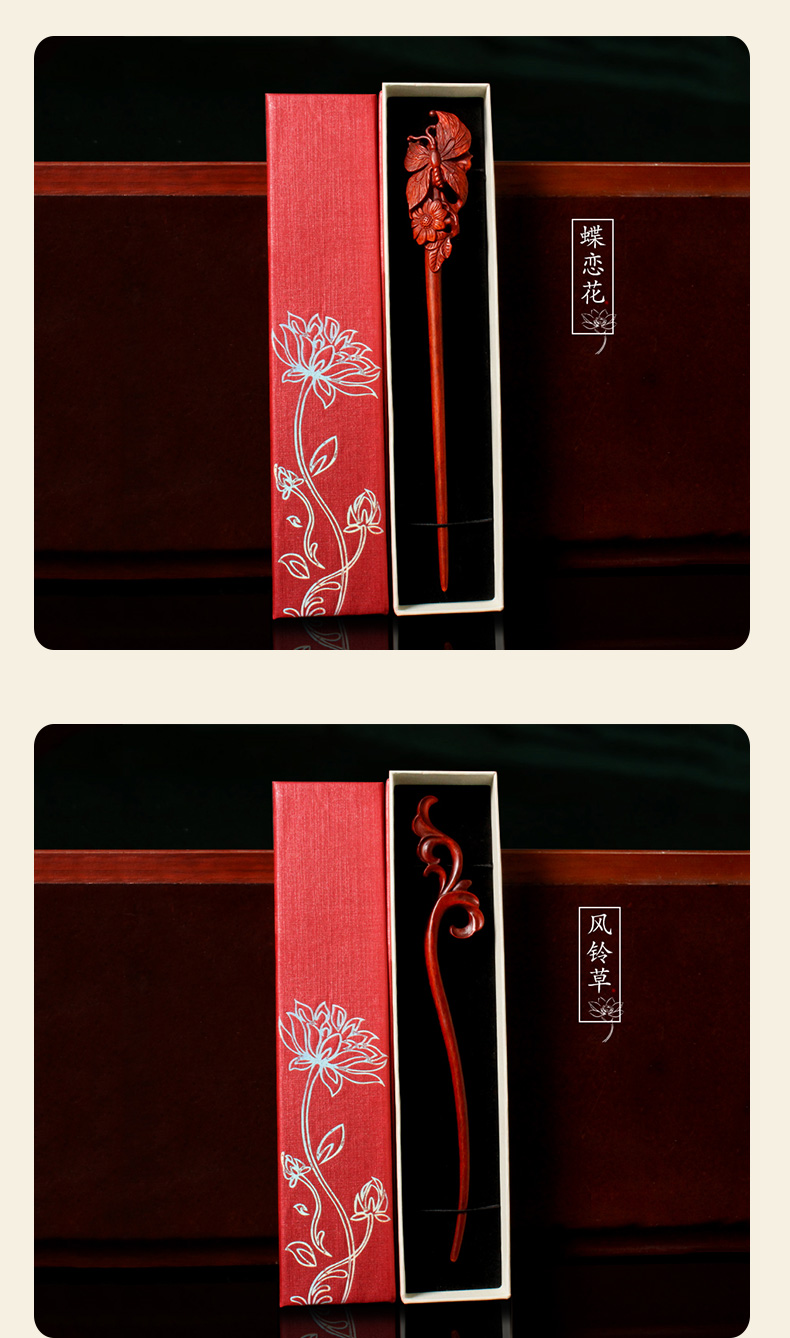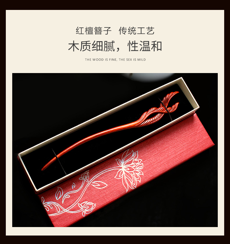 Wanbaozi small-leaf red sandalwood hairpin for women with bunted hair in Hanfu, simple retro Mid-Autumn Festival gift, ancient style wooden hairpin with engraving, small-leaf red sandalwood hairpin, bellflower, peach wood grass comb
