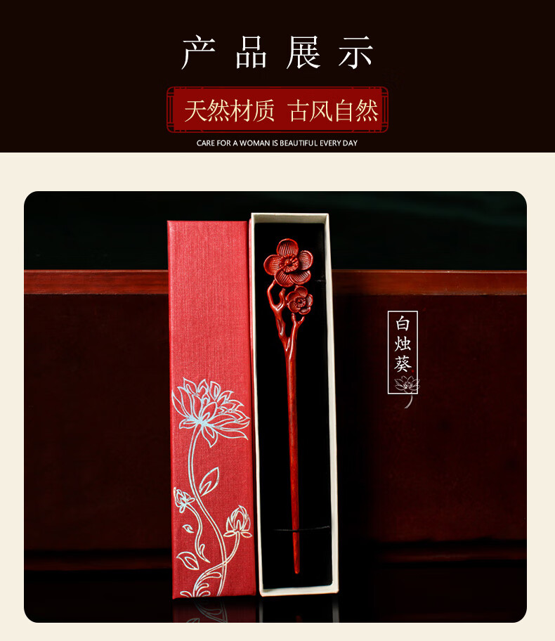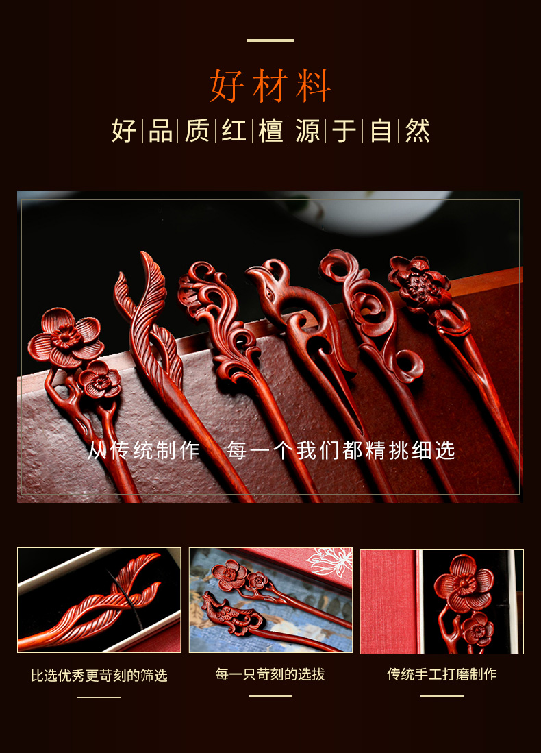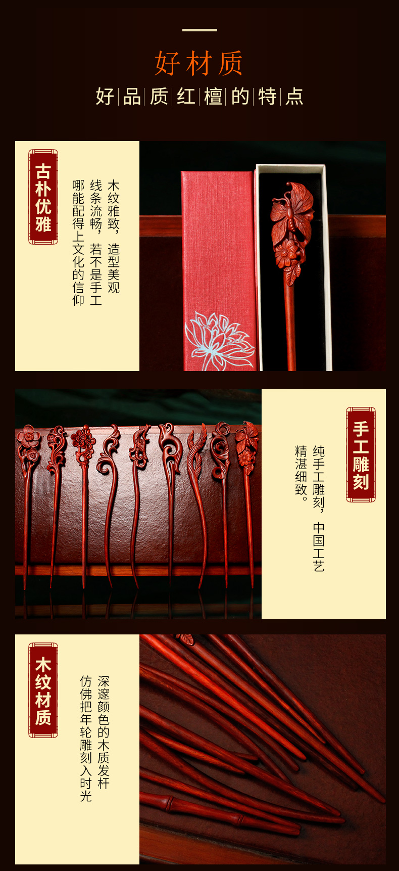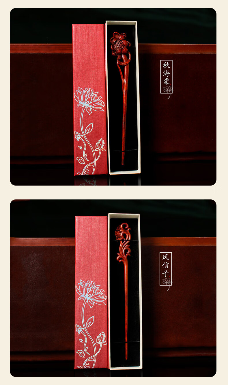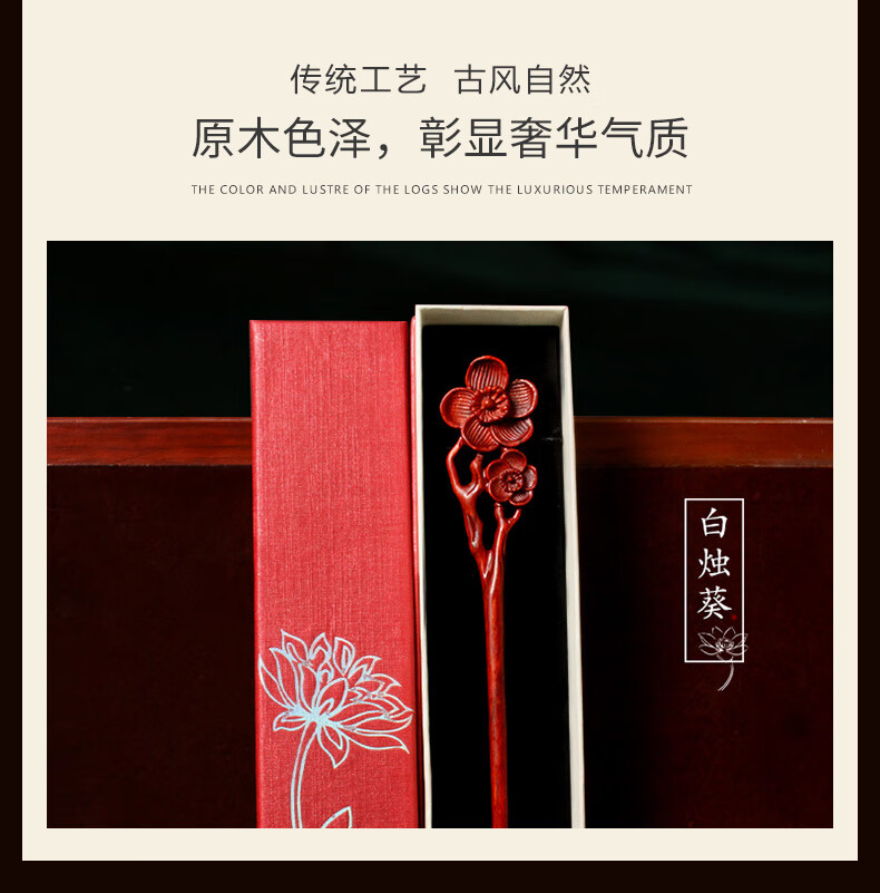 Wanbaozi small-leaf red sandalwood hairpin for women with bunted hair in Hanfu, simple retro Mid-Autumn Festival gift, ancient style wooden hairpin with engraving, small-leaf red sandalwood hairpin, bellflower, peach wood grass comb