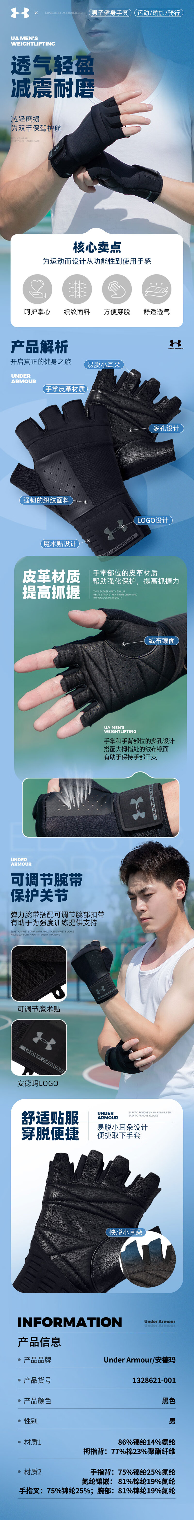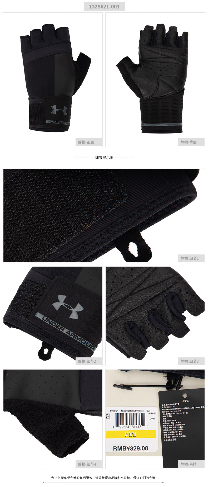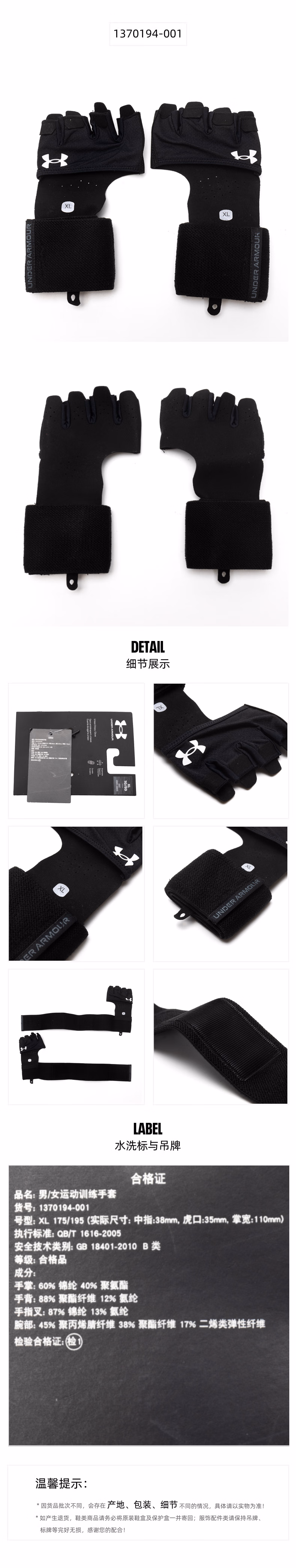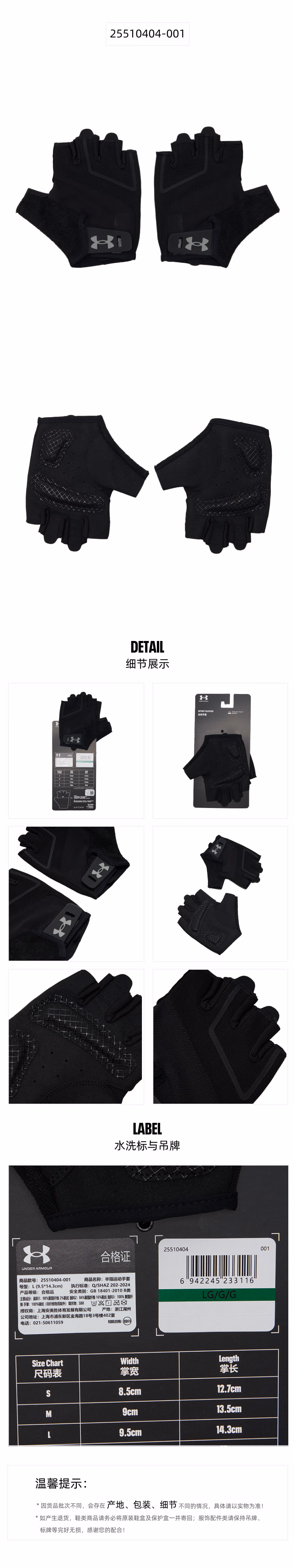 Under Armor men's and women's gloves 2025 autumn new wear-resistant breathable fitness equipment training casual half-finger sports gloves 1328621-001/dry and comfortable/men's style M