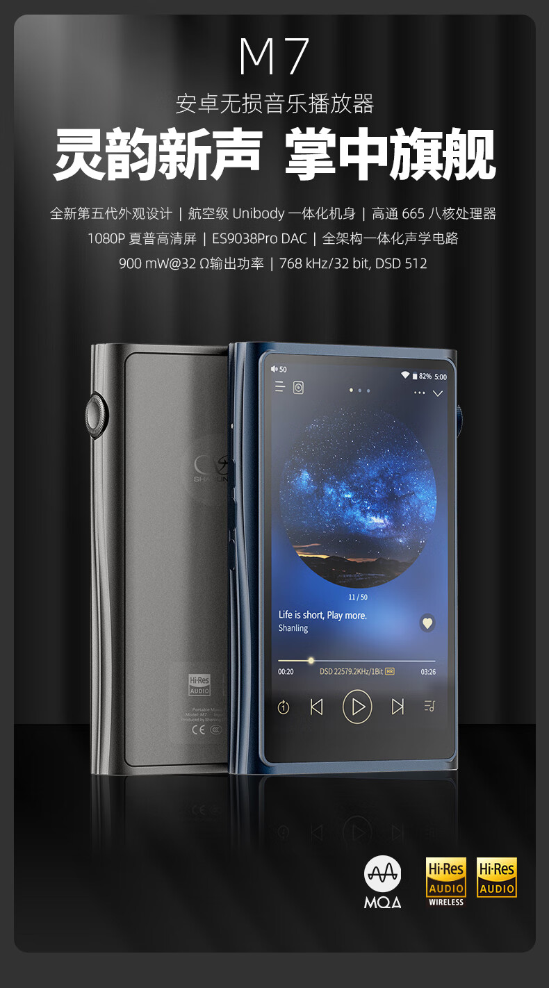 SHANLING M7 Android lossless music mp3 player hifi fever 4.4 balanced hard decryption DSD512 palm flagship portable player M7 titanium color merchant warehouse delivery丨free leather case with order