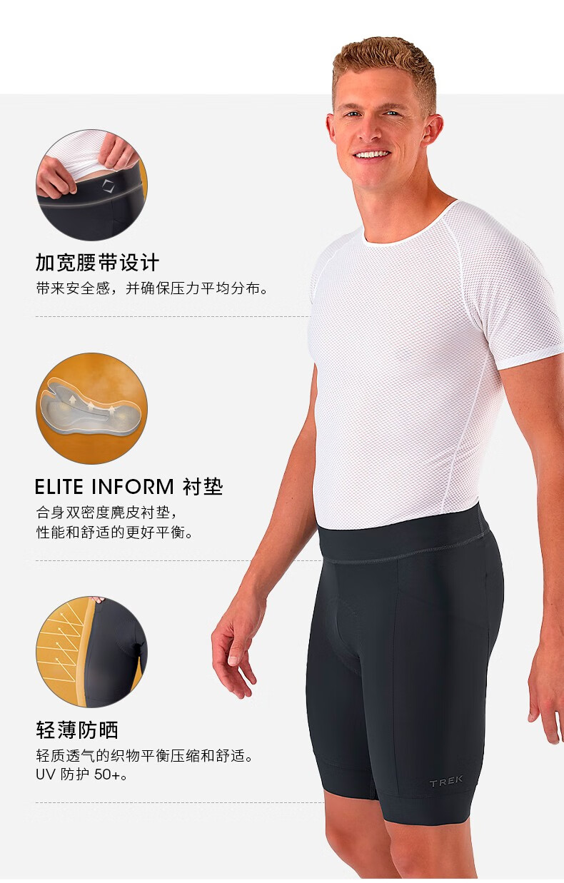 TREK Circuit Men's Lightweight, Breathable, Comfortable, Cushioned, Sunscreen, Eco-Friendly Cycling Shorts, Cycling Pants, Black 2XL