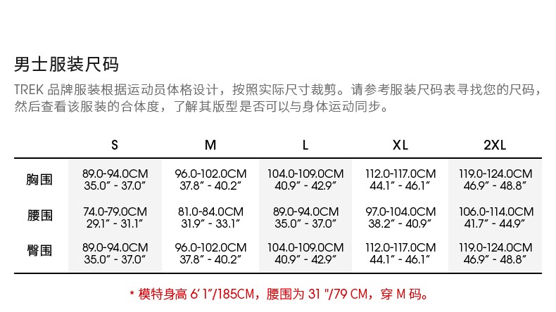 China (cm) 165 / 88-90 170 / 96-98 175 / 108-110 180 / 118-122 185 / 126-130