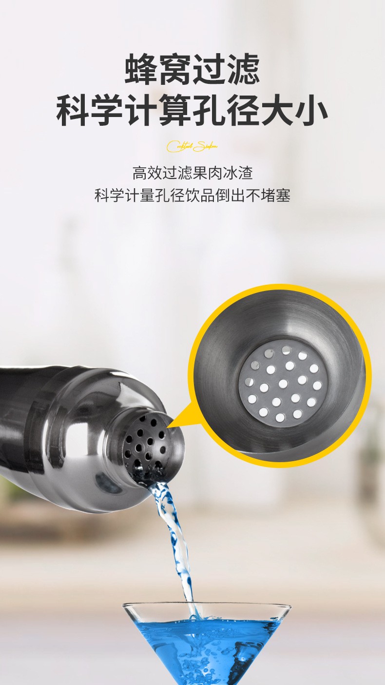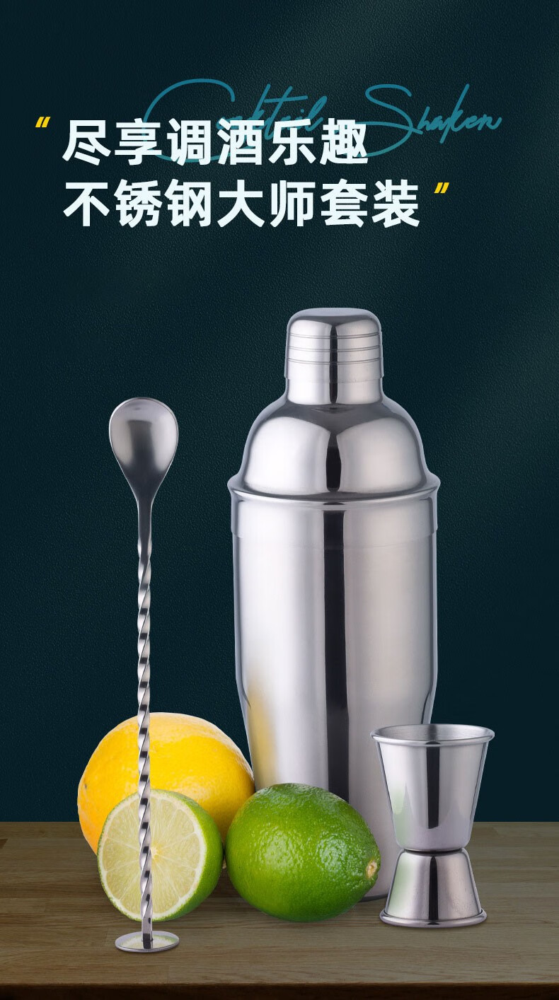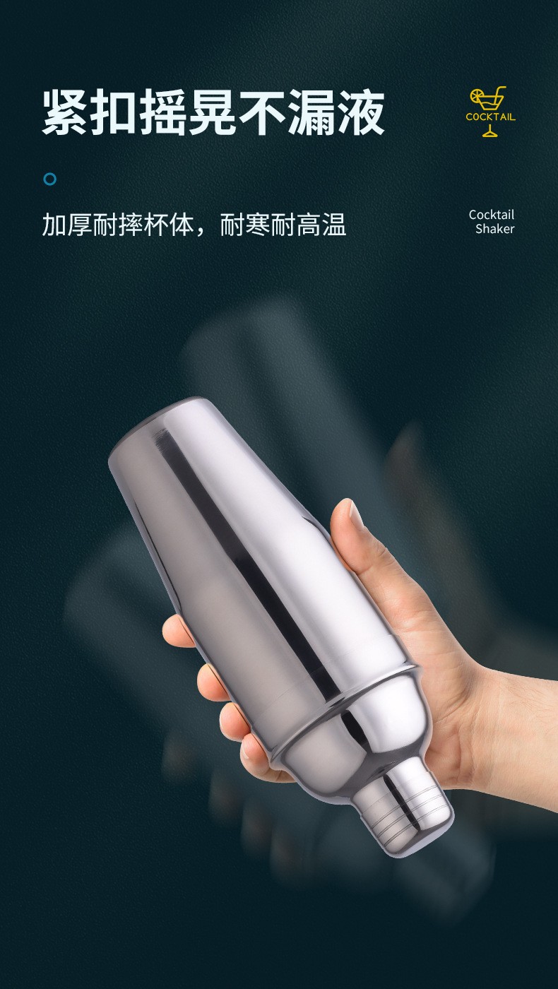 FEiNASi stainless steel cocktail shaker set shaker cup bartending tool shaker shaker bartending ounce cup stirring 750ml mirror silver-3 piece set