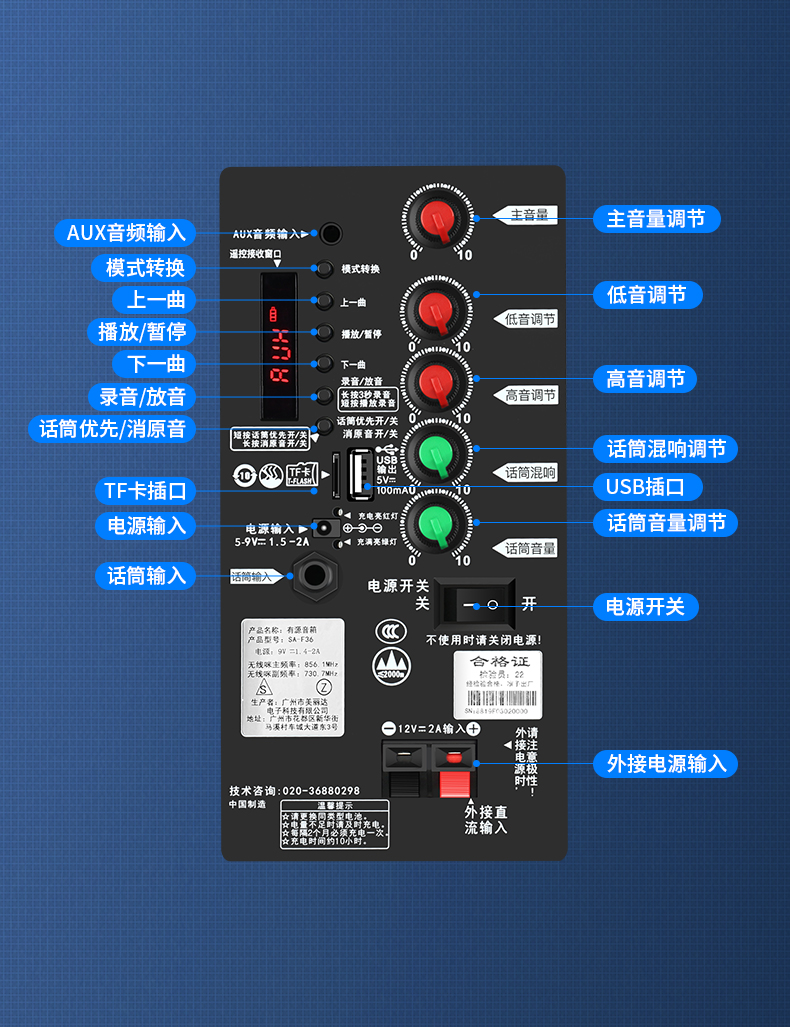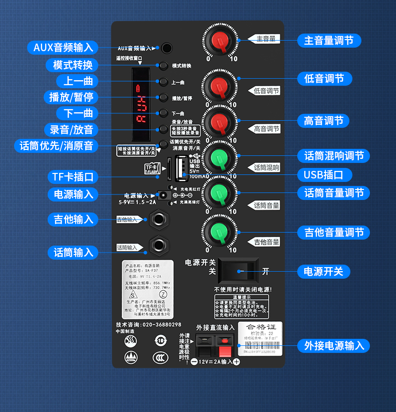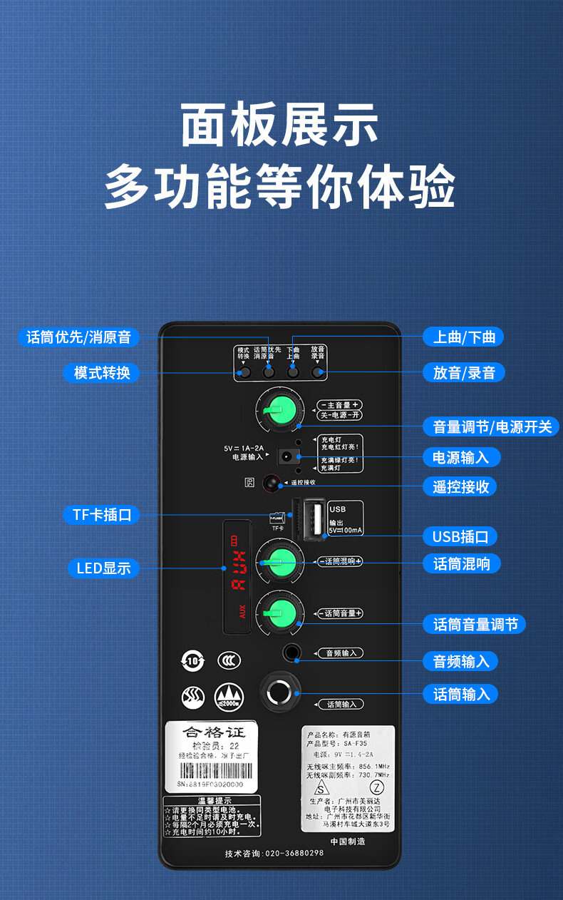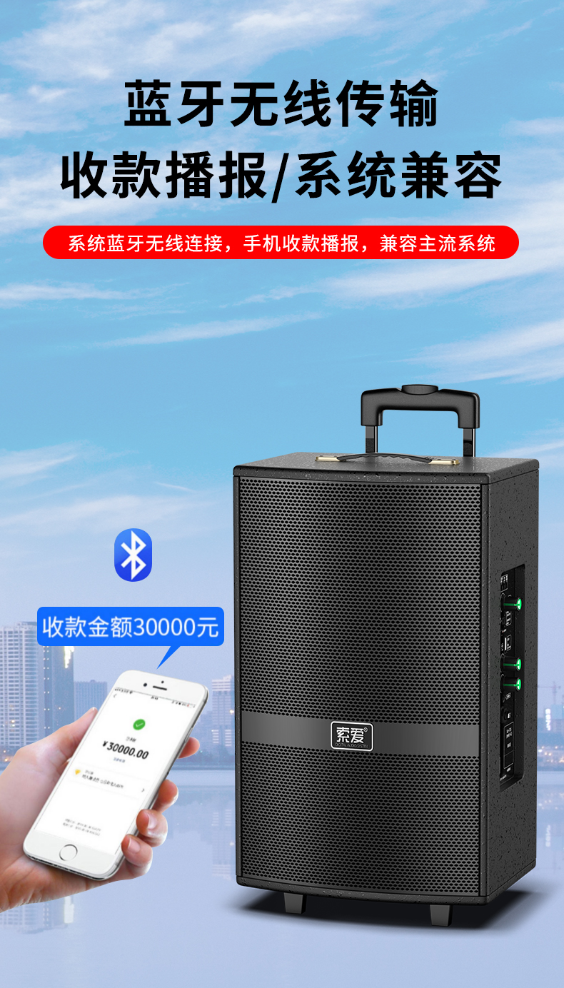 Sony Ericsson (soaiy) F37 square dance audio three-speaker subwoofer outdoor K-song live performance mobile trolley dance portable Bluetooth high-power outdoor speaker F35-8-inch speaker + single headset