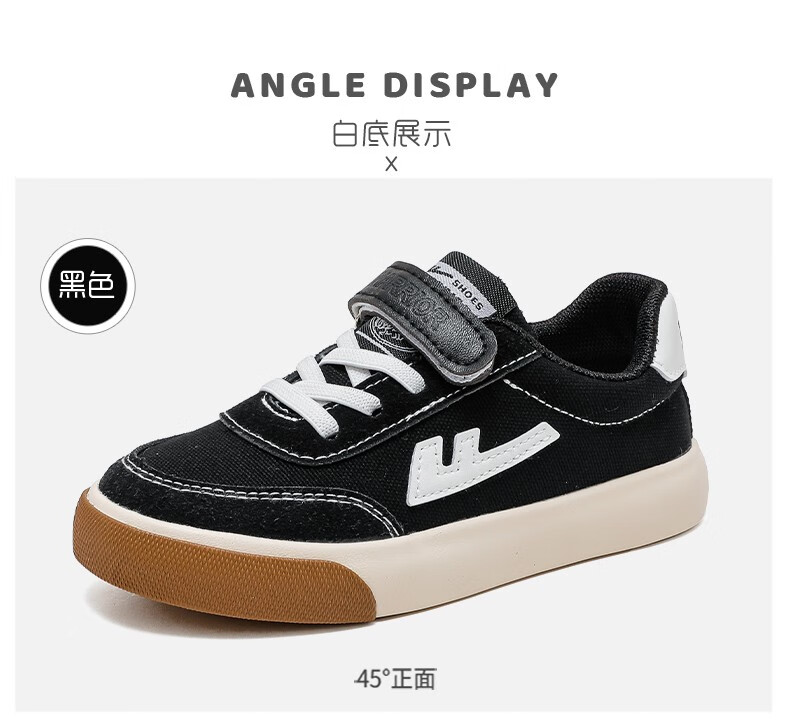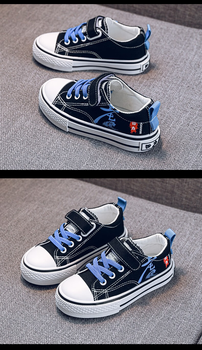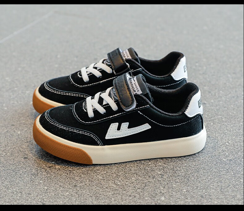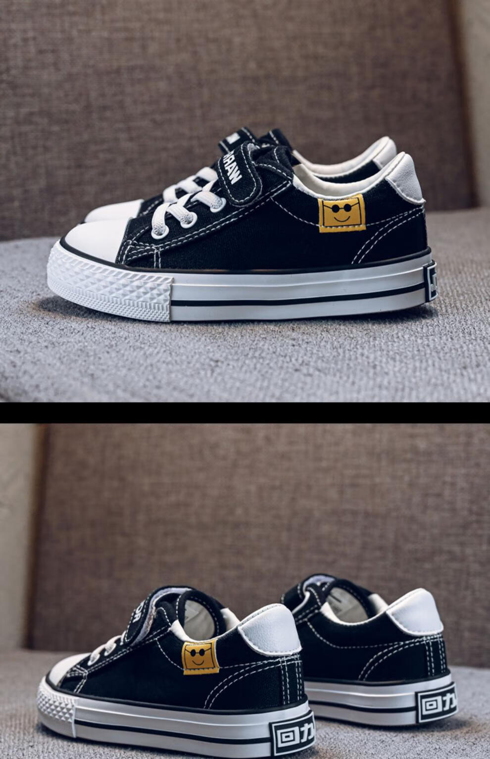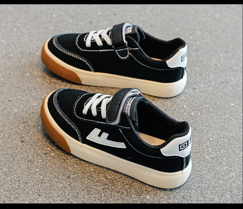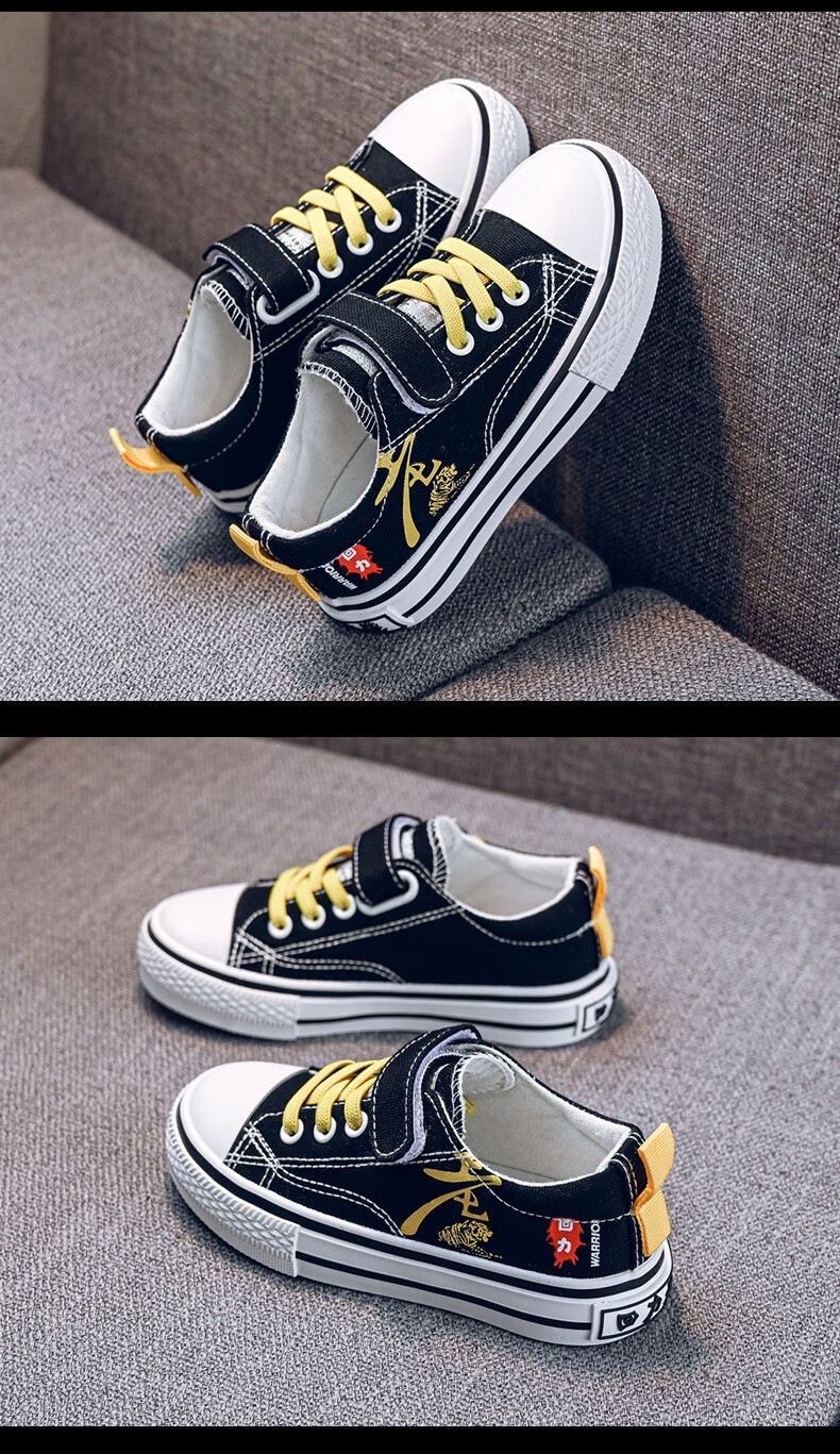 Pull back children's shoes children's canvas shoes low-cut sneakers 2025 spring and autumn new casual shoes for boys and girls children's sports shoes trendy WZ(TH)-0484 black 37 inner length 23.0/suitable for foot length 22.0