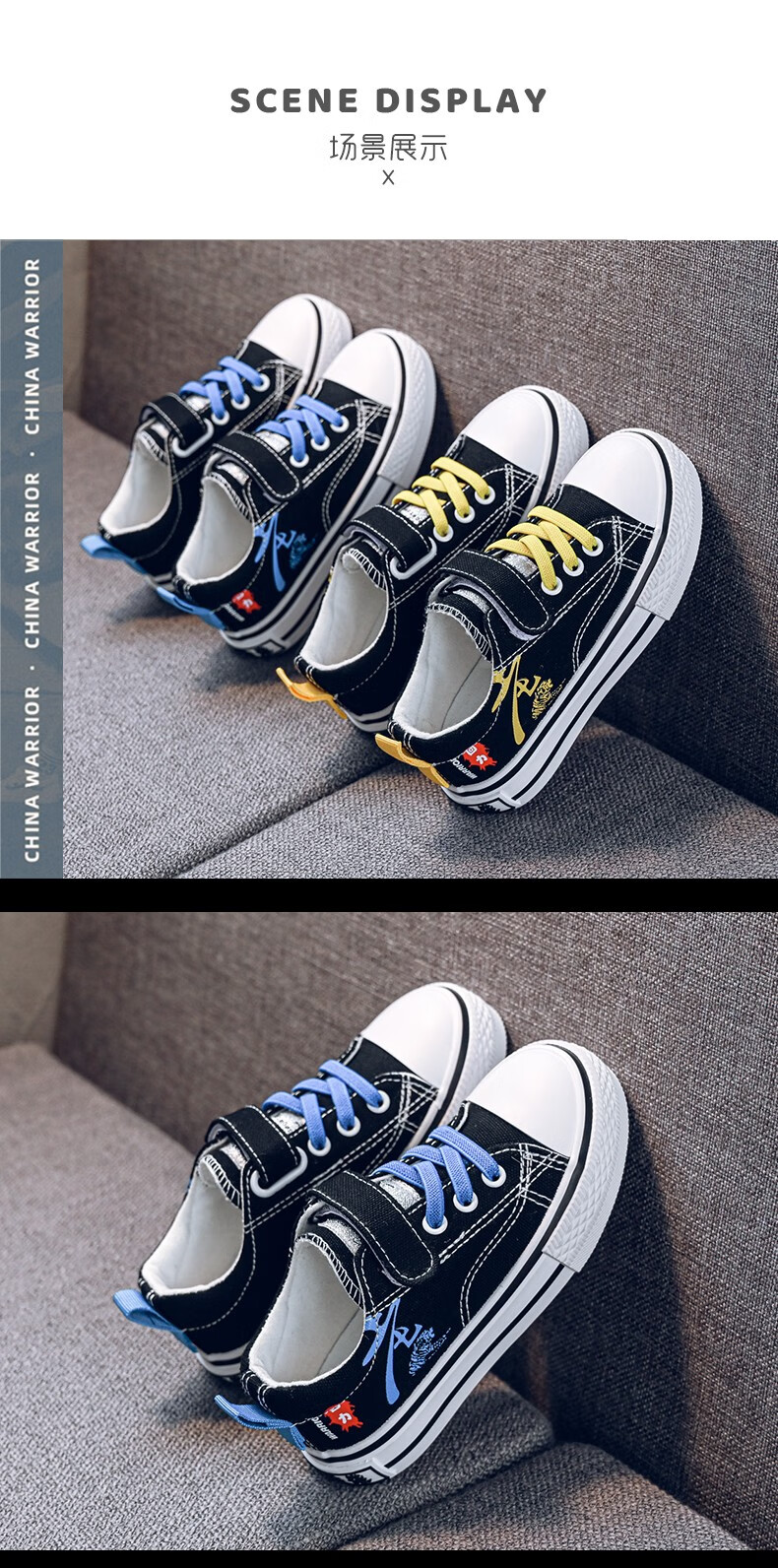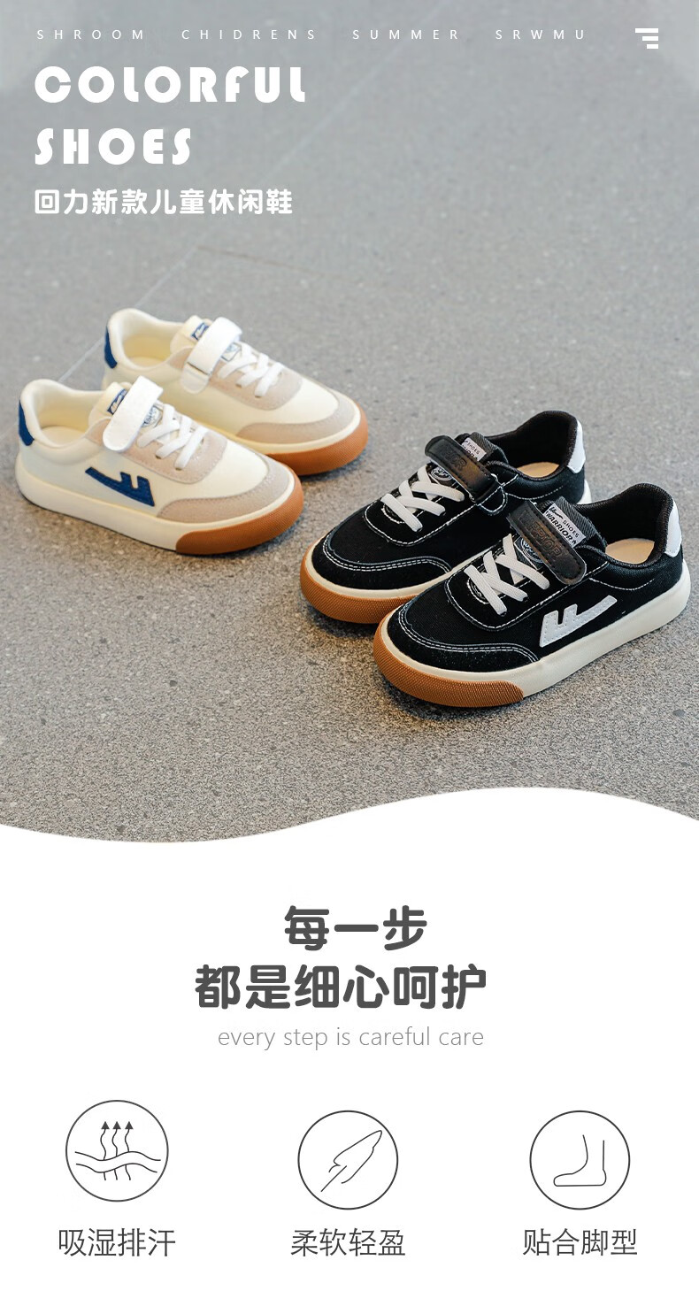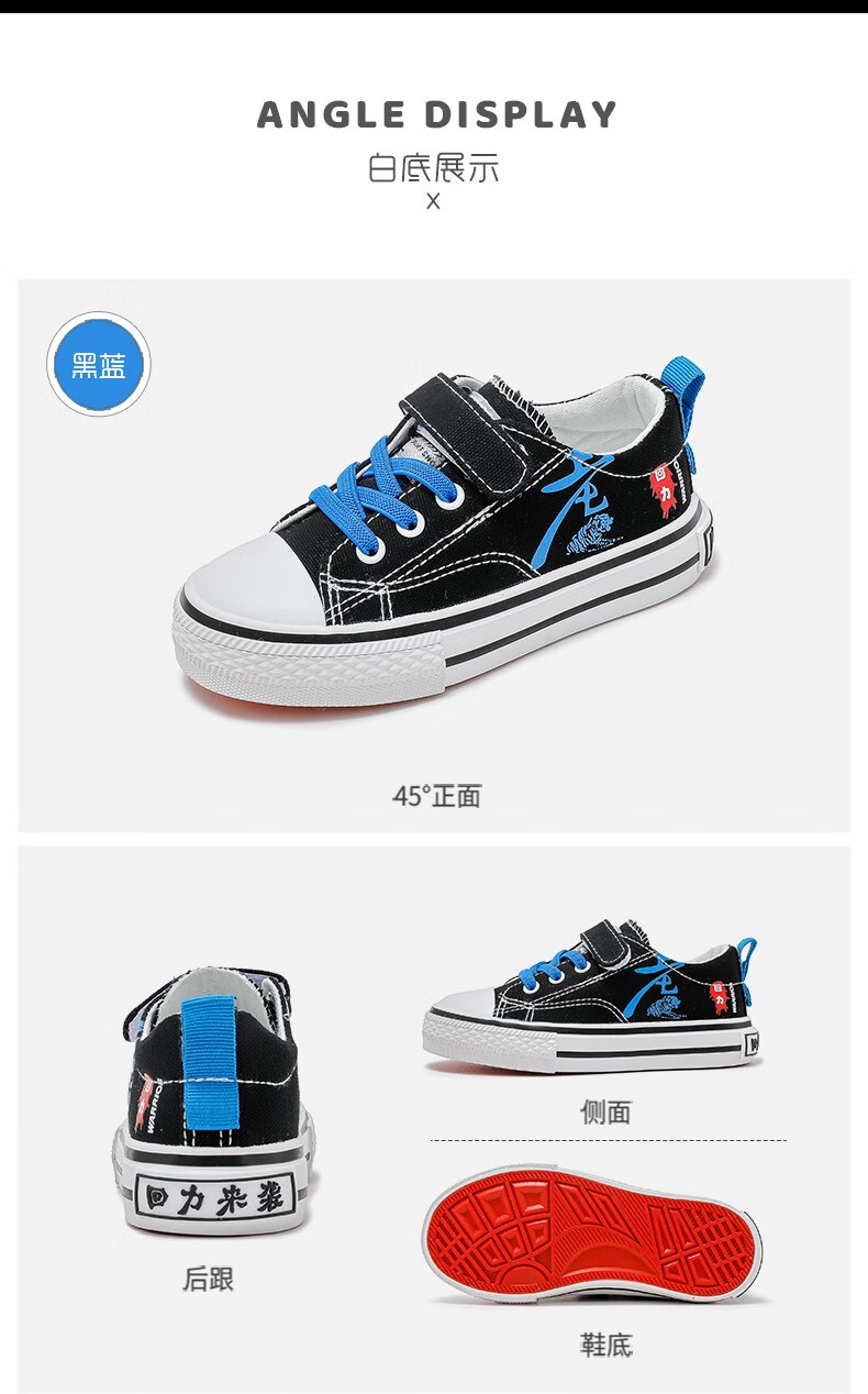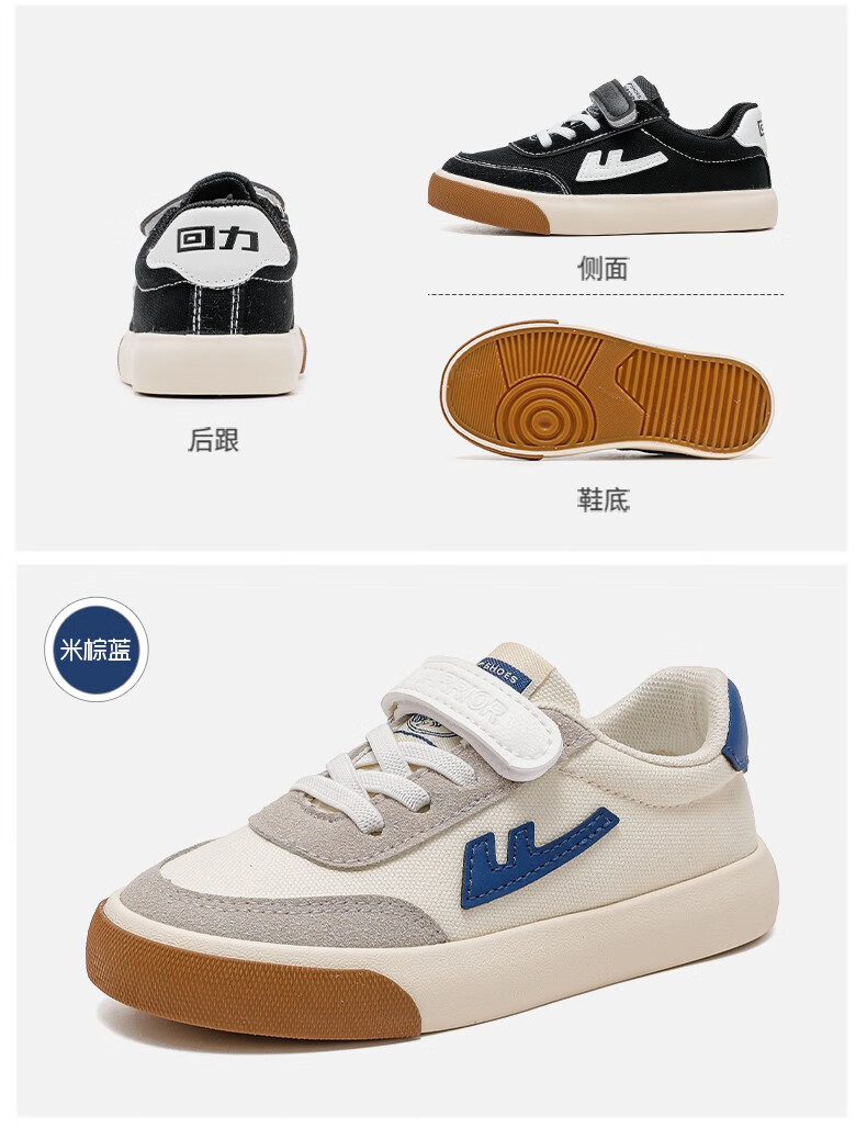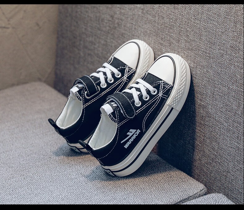 Pull back children's shoes children's canvas shoes low-cut sneakers 2025 spring and autumn new casual shoes for boys and girls children's sports shoes trendy WZ(TH)-0484 black 37 inner length 23.0/suitable for foot length 22.0