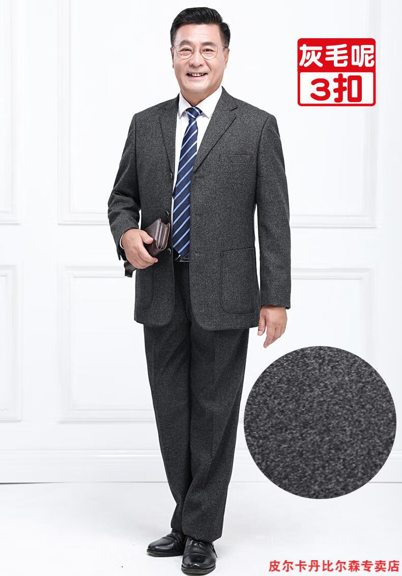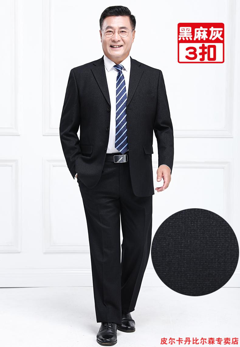 Pierre Cardin light luxury high-end brand men's clothing, middle-aged and elderly loose suits, men's father's clothing, wedding, men's casual suits, father's, middle-aged, business formal knitted 2-button black two-piece suit, top and pants, no extras 837 185/2XL