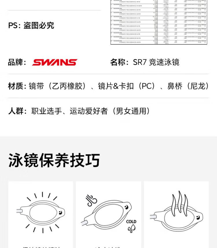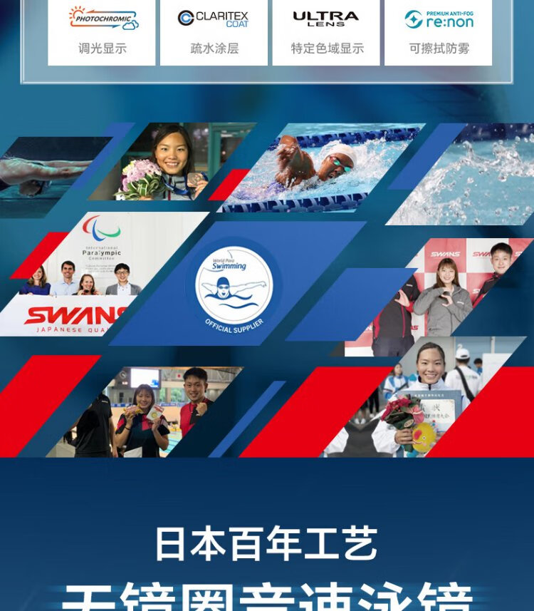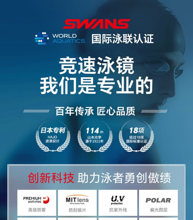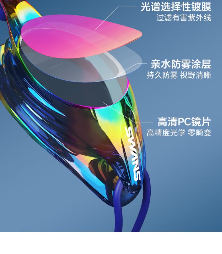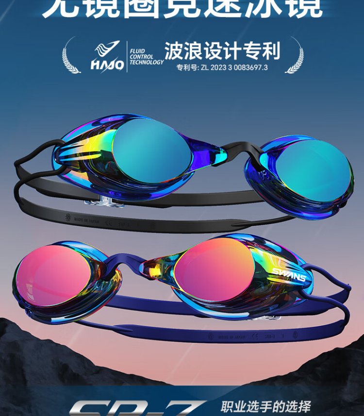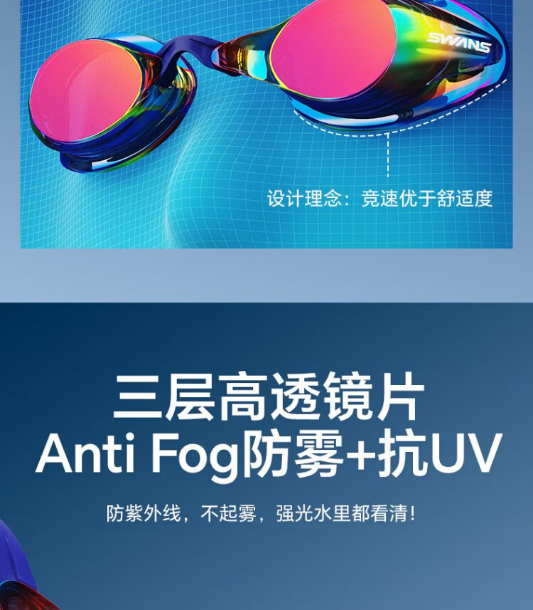 SWANS swimming goggles imported from Japan, professional rubber ring-free racing training swimming goggles, waterproof and anti-fog adult training goggles, purple-red coating