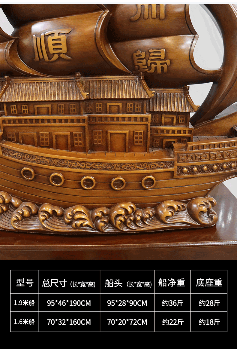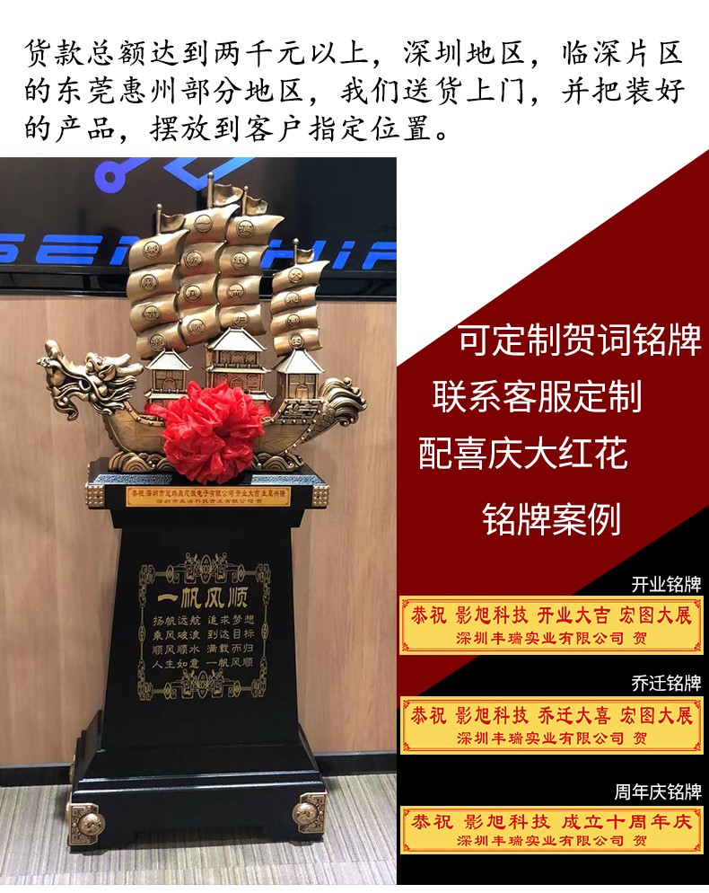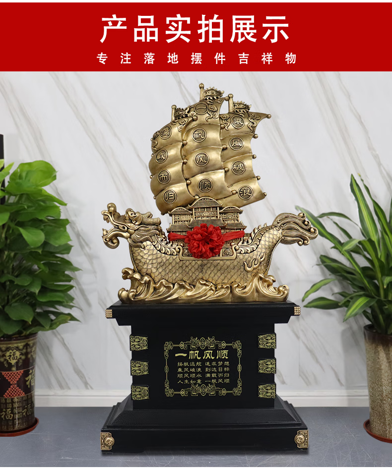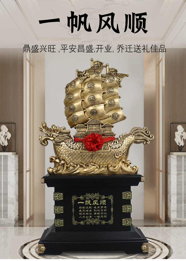 Dinghongming Smooth Sail Ornaments Company Factory Hotel Opening Gifts Housewarming Gifts Listing Gifts Office Decor Smooth Sail 2.1 Meters High Copper Color