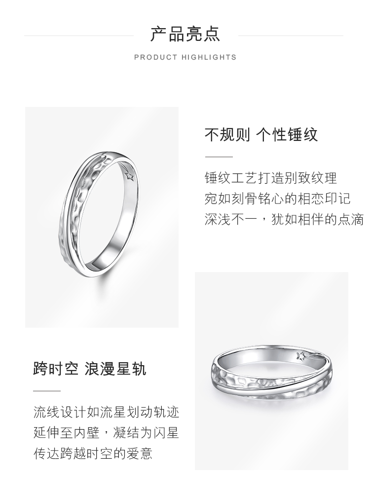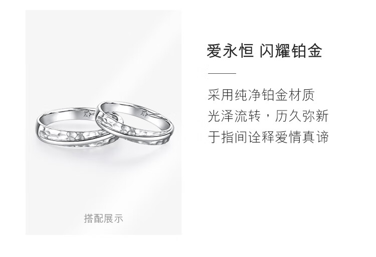 Lukfook Jewelry Pure Knot Series Platinum 950 Hammer Pattern Platinum Ring Couple Wedding Pair Ring Solid Single 000593M1 No. 17 - Total Weight 4.51 Grams Men's Style