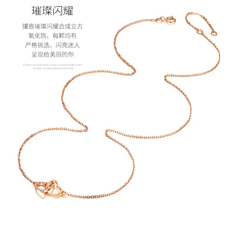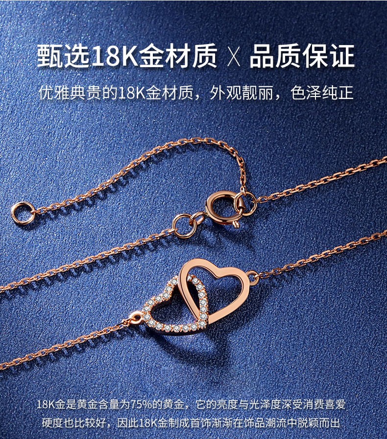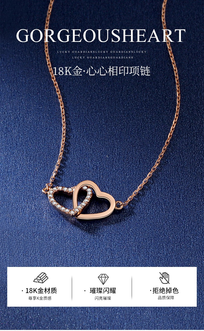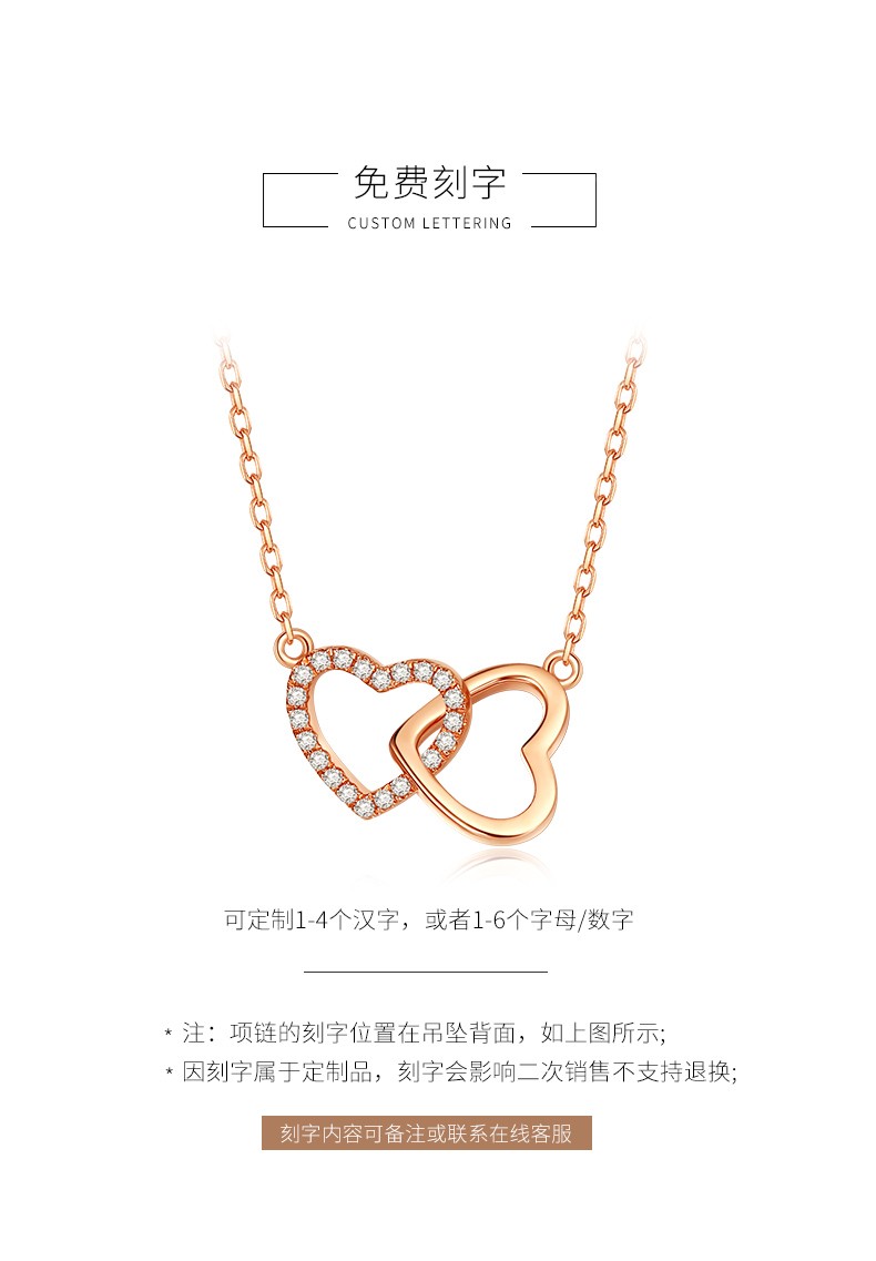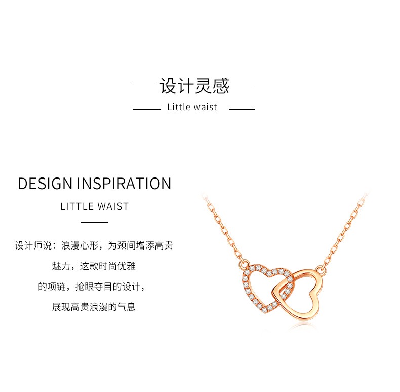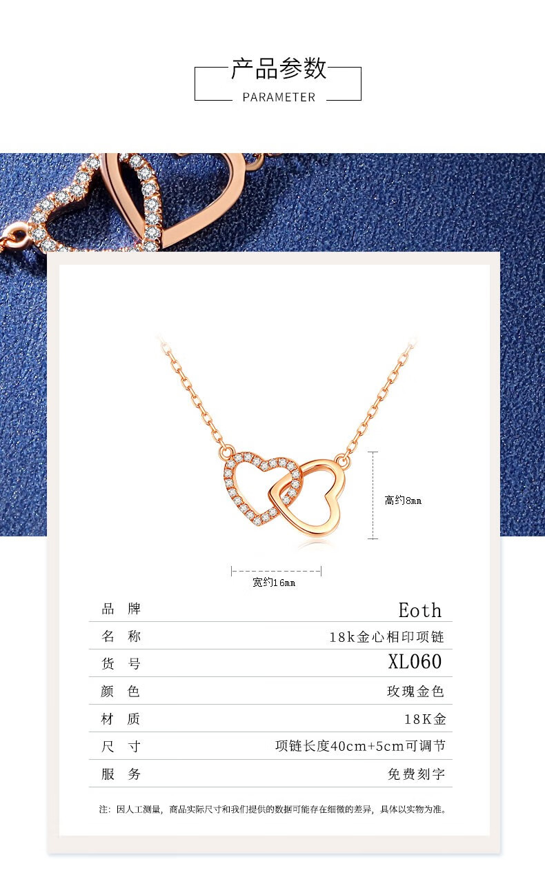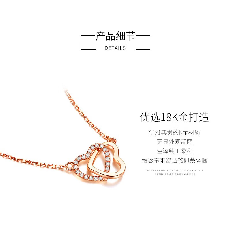 Eoth18K gold double heart love necklace women's clavicle chain rose gold pendant birthday gift for girlfriend 520 gift 18K rose gold double heart love necklace + certificate