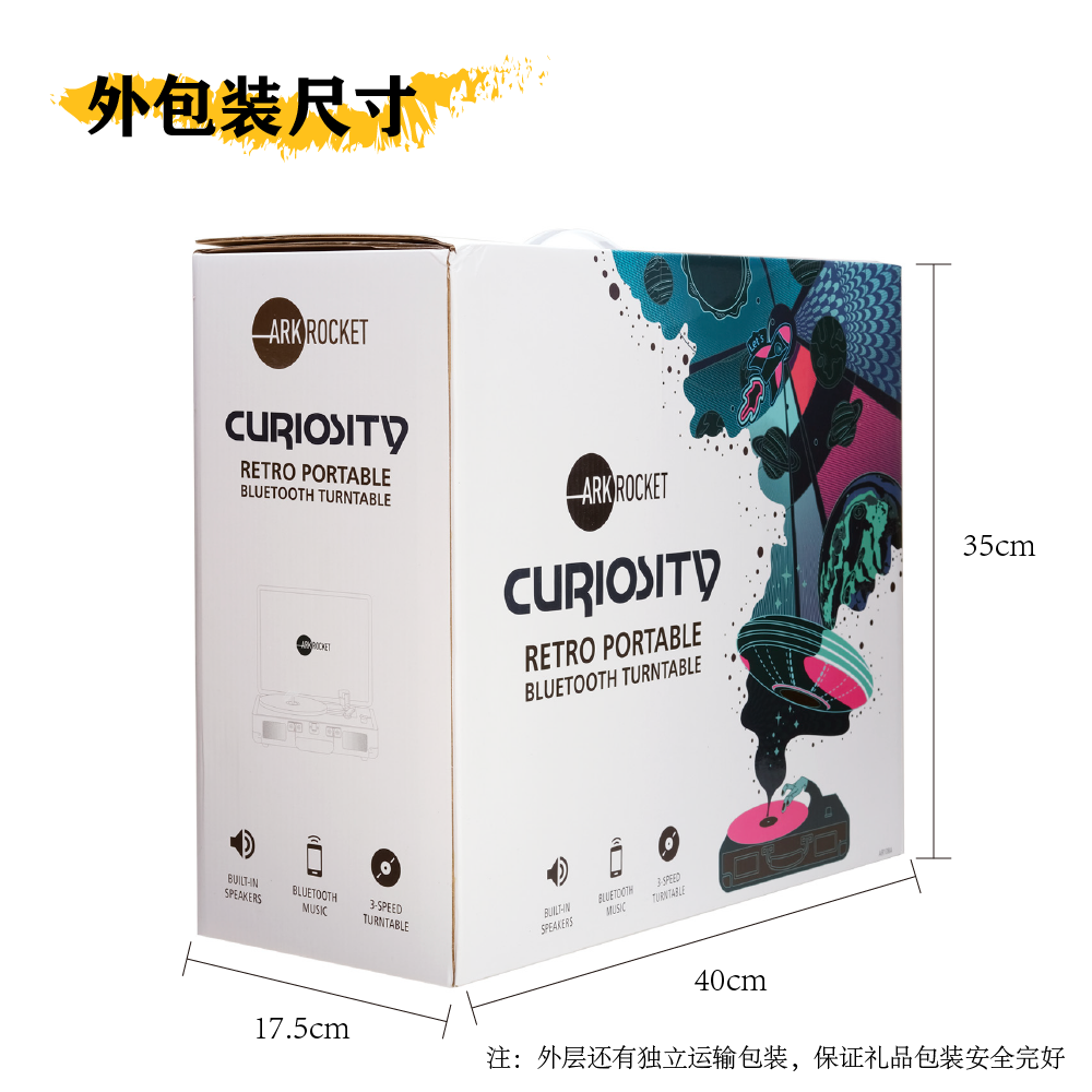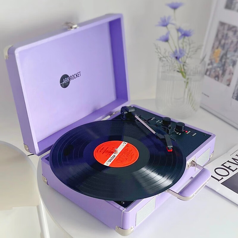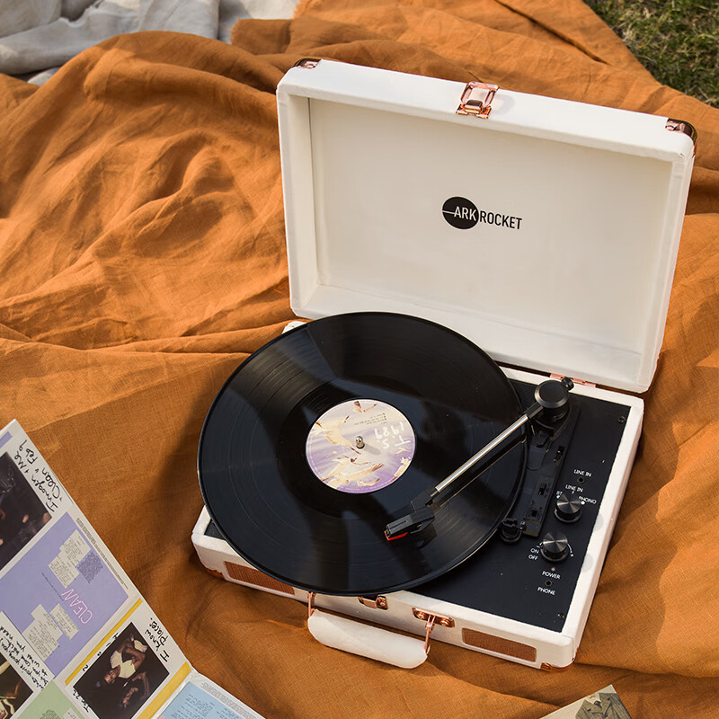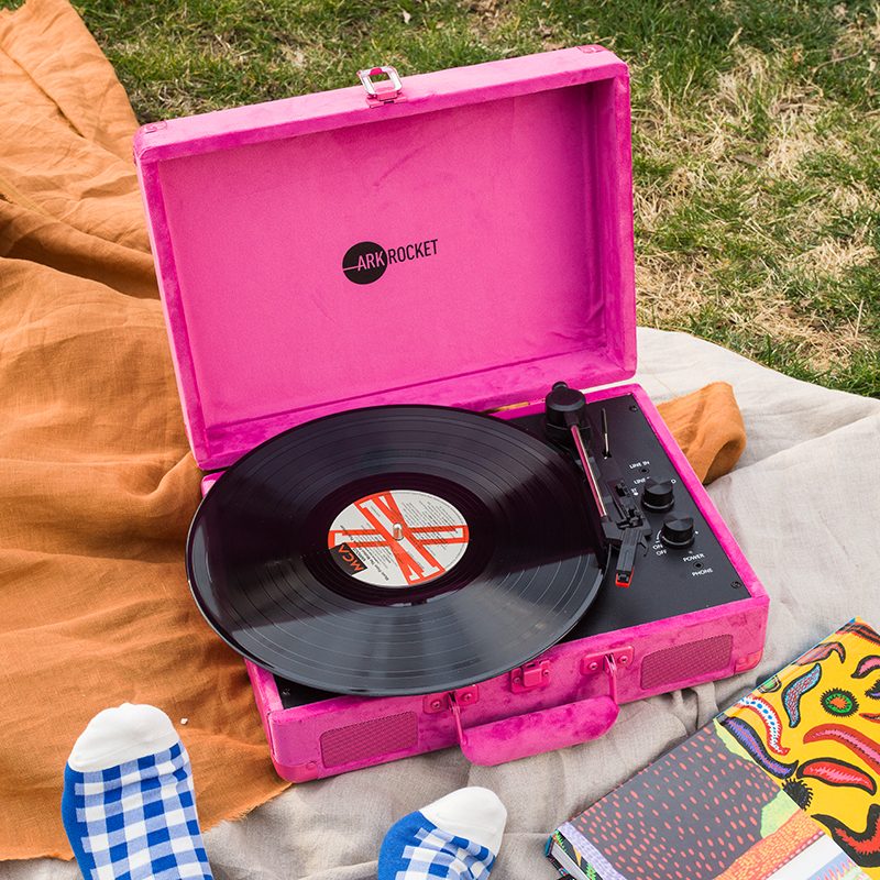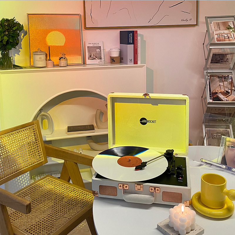 ARKROCKET Curiosity series retro Bluetooth vinyl record player suitcase audio gramophone vinyl record player American home black red