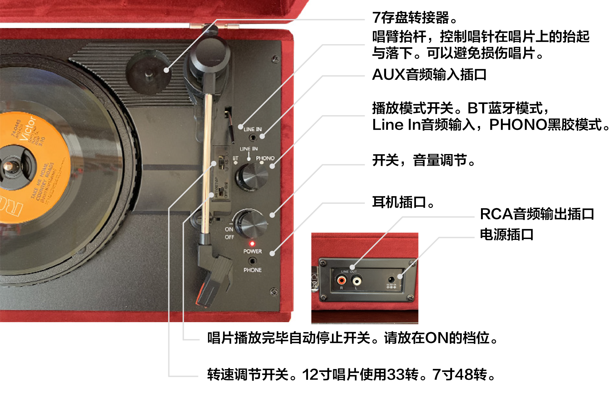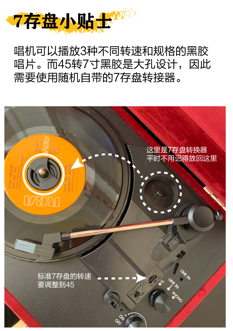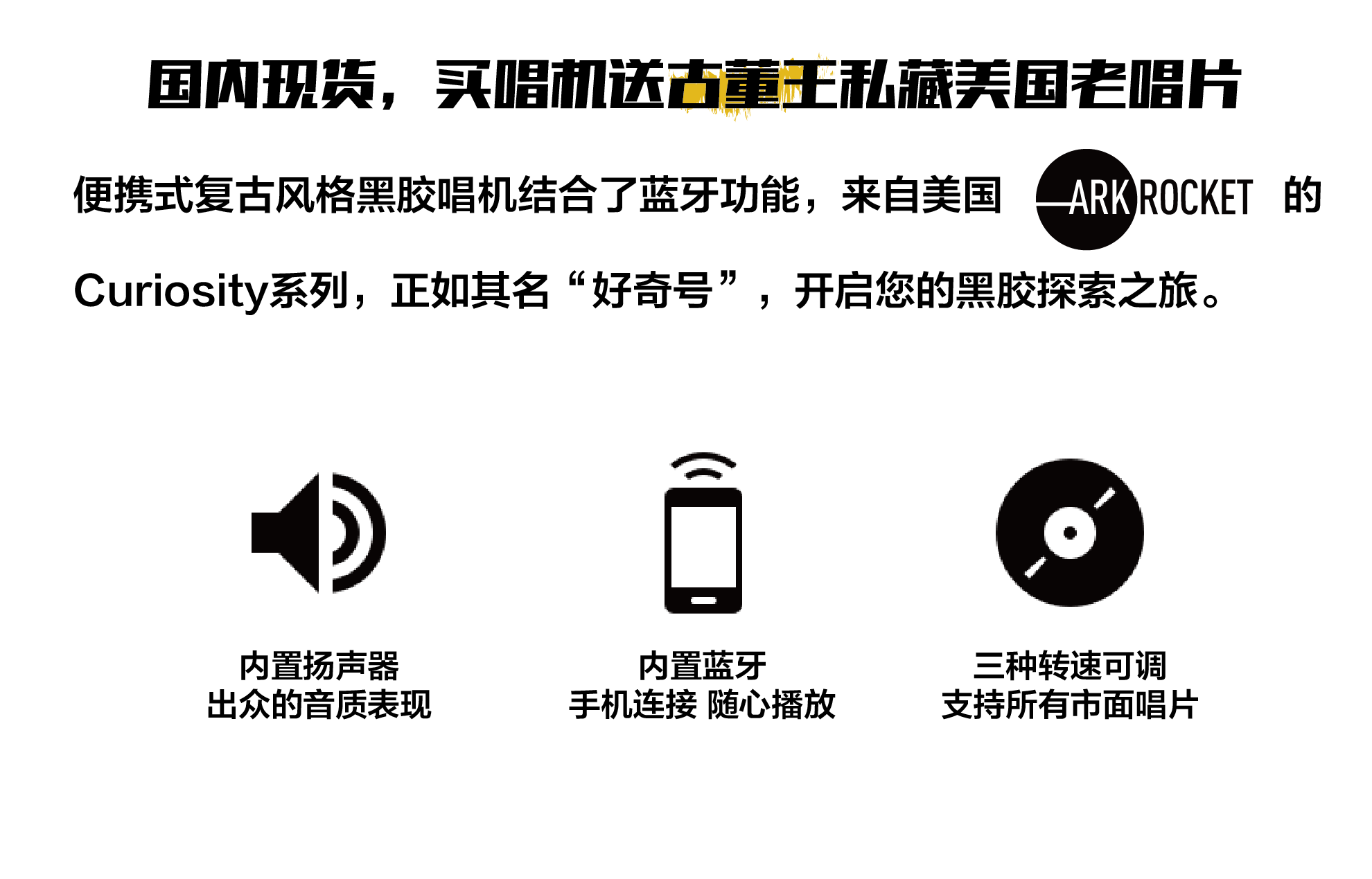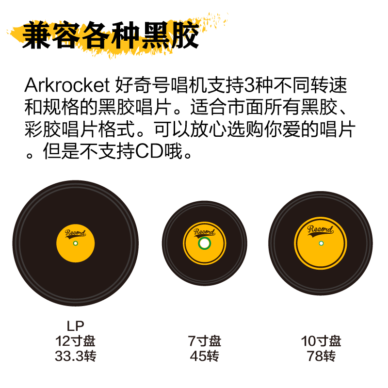 ARKROCKET Curiosity series retro Bluetooth vinyl record player suitcase audio gramophone vinyl record player American home black red