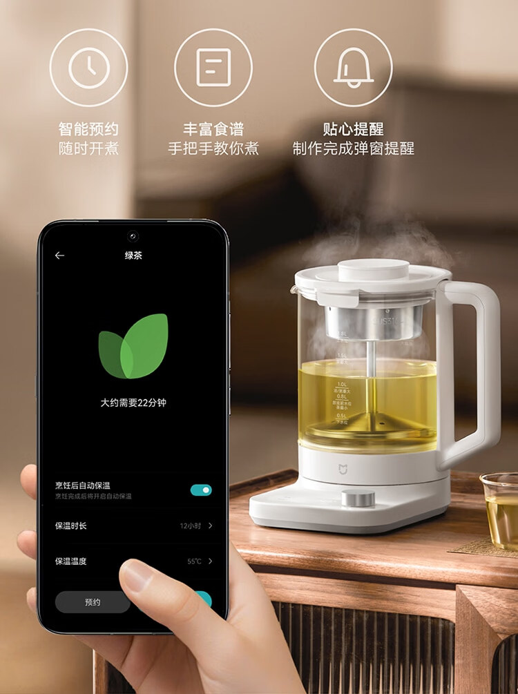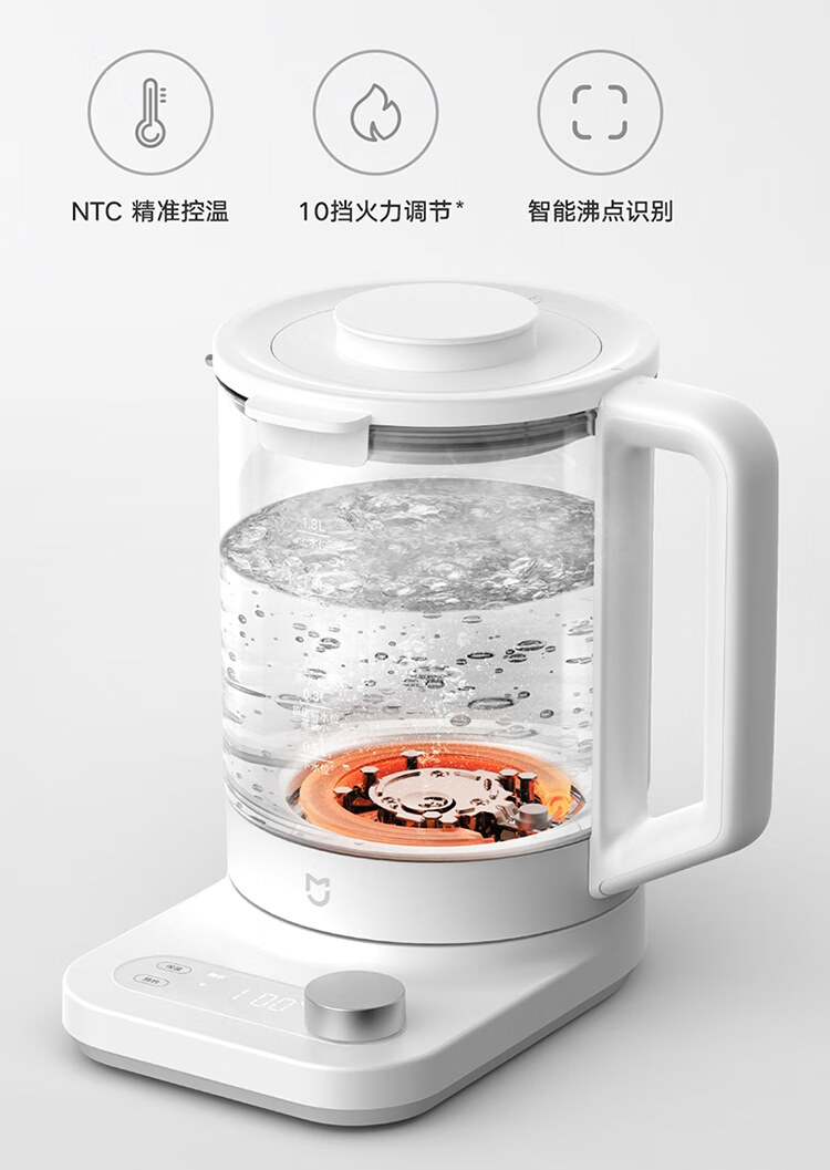Mijia Xiaomi Intelligent Health Kettle Electric Kettle High Heating Power Multi-level Firepower Adjustment Safety and Anti-dry Boil APP Interconnection Mijia Intelligent Multi-Function Health Kettle P1 1.8L