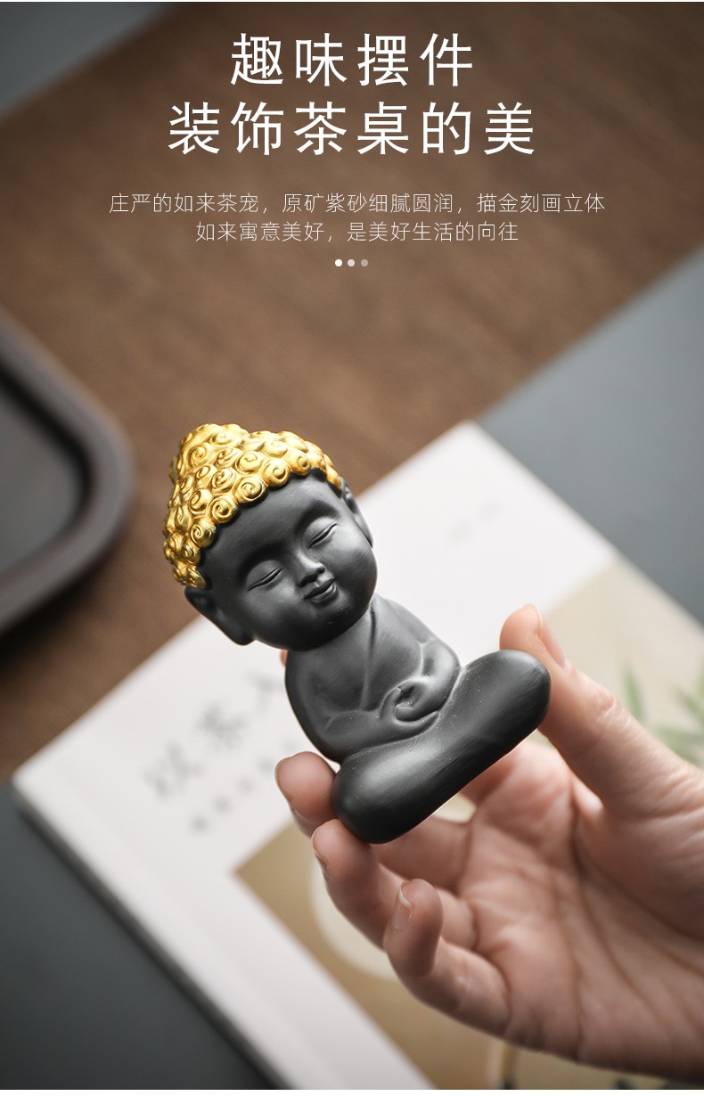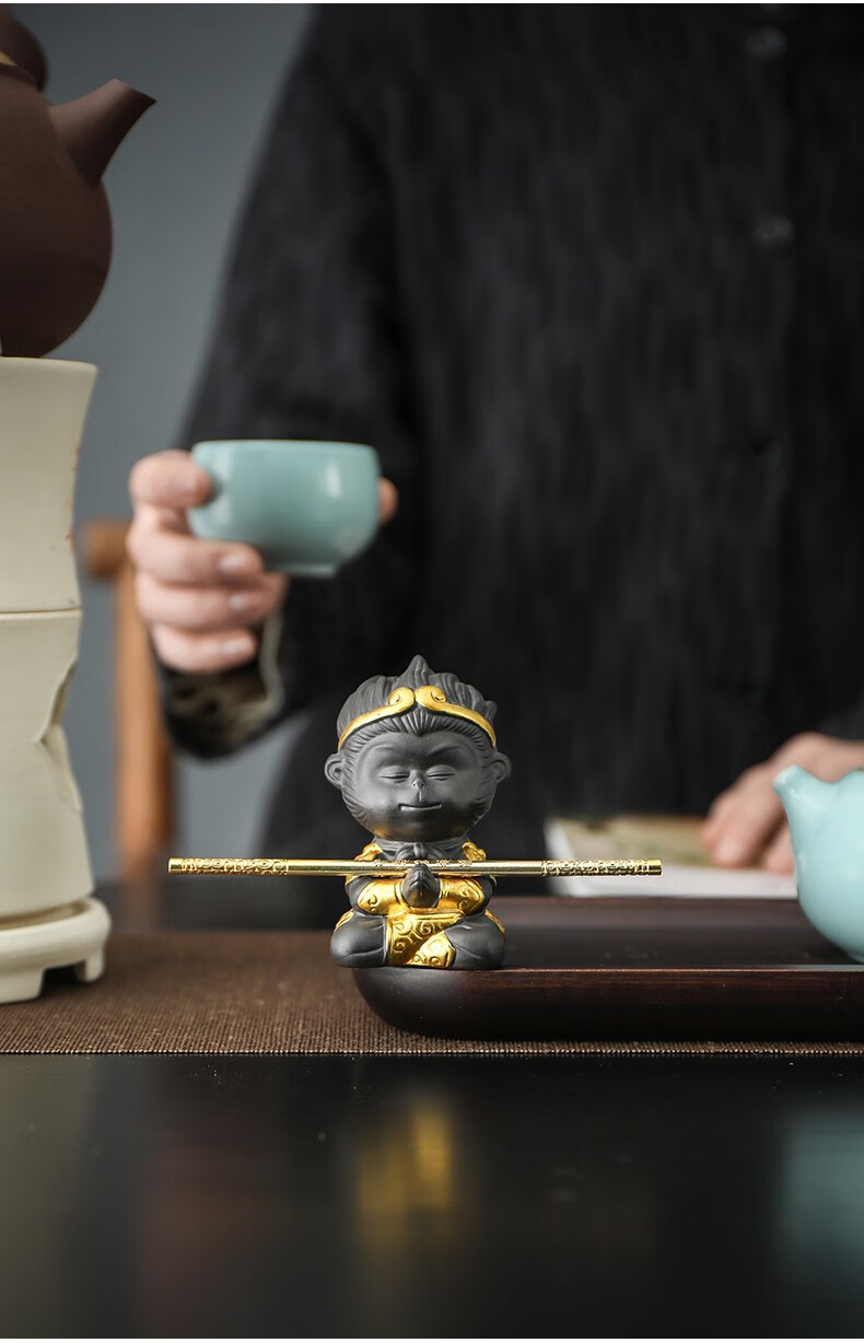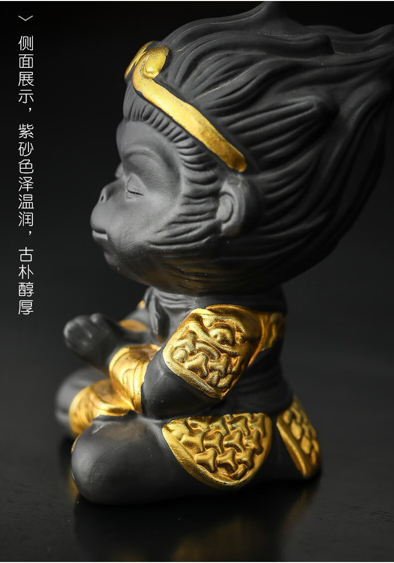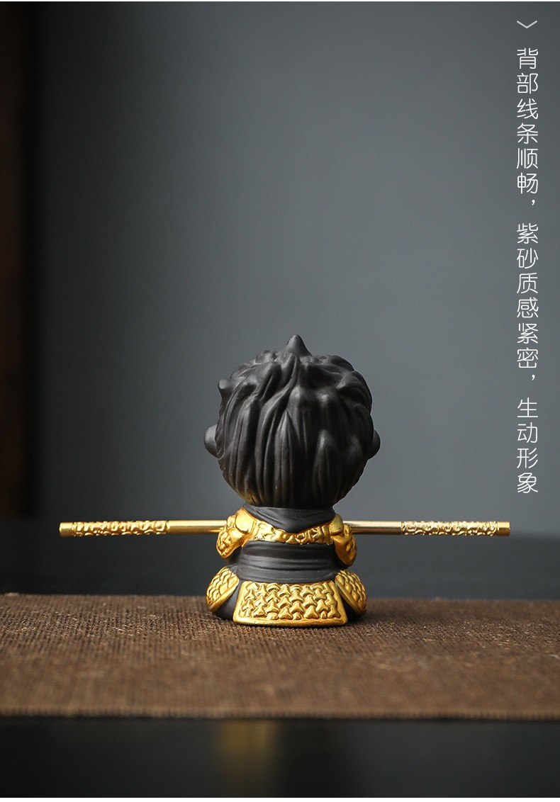 Yuxuan handmade purple sand tea pet with personality that can raise creative little monkey monkey tea play fish tank bonsai ornaments YYH---Purple clay little monkey painting gold belt stick